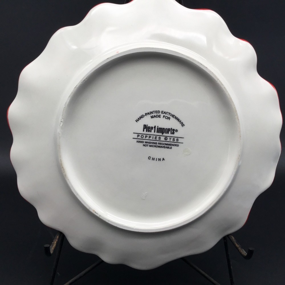 Poppies By Pier 1 Imports Figural Flower Dessert Pie Plate Red Orange 8" Replacement's Ltd Website Price $15.99 Each Plate. In Very Good Condition, See Photos. No Chips. No Cracks. No Crazing.