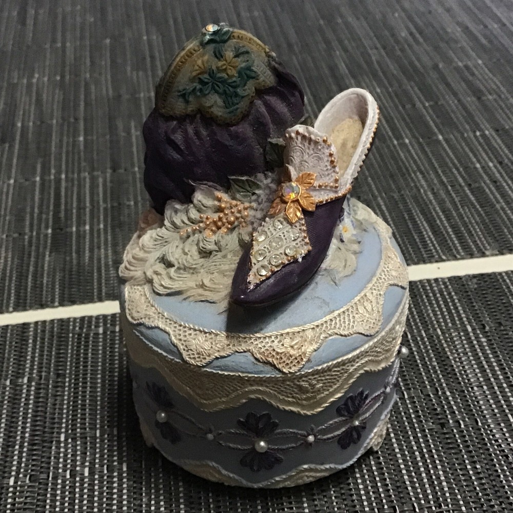 3.5 inches tall decorative miniature music box by popular imports Plays music Topped by shoe and handbag design...