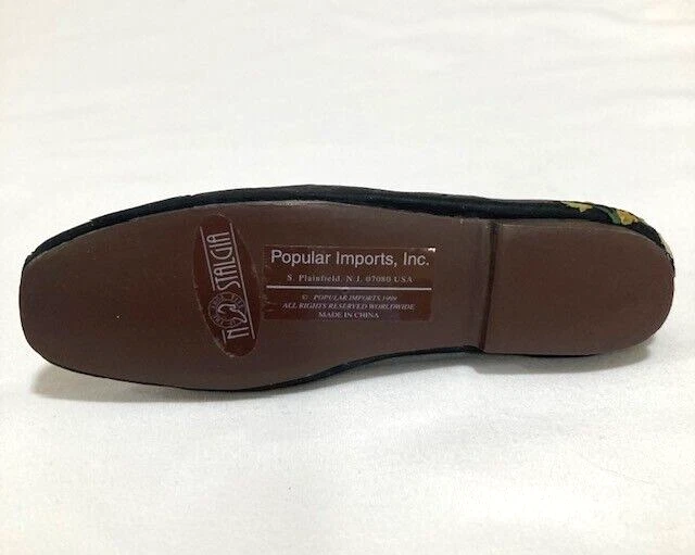 Popular Imports Miniature Black Shoe & Purse/Handbag with Pink Floral Design. The shoe is missing a pearl - see picture....
