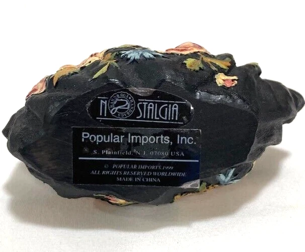 Popular Imports Miniature Black Shoe & Purse/Handbag with Pink Floral Design. The shoe is missing a pearl - see picture.