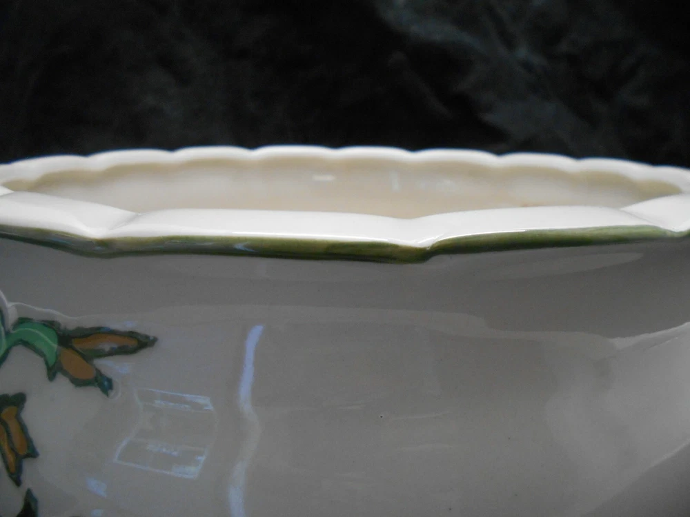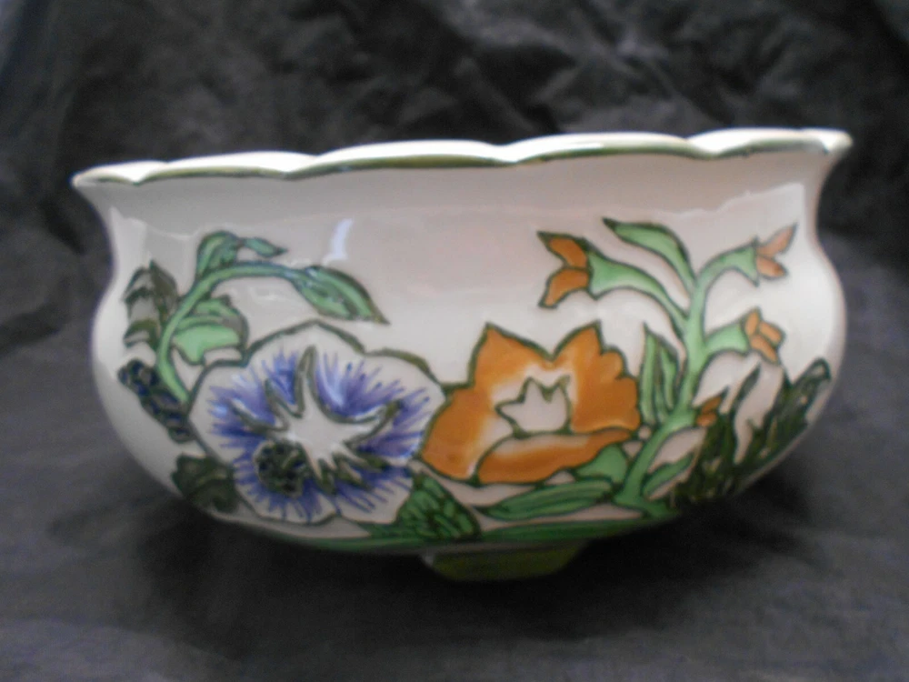 YOU ARE BIDDING ON Porcelain AAA Imports Raised Floral Designed Footed Planter W/ Scalloped Edges This AAA Imports planter is Pre-owned in good condition no flea bights, chips, or crazing. This is a p orcelain AAA Imports raised floral designed footed planter with scalloped edges. This planter is 10" in diameter 4.5" tall and 4" deep. Please see all photos and ask any questions BEFORE purchasi ng. Like this item, check out my other Home and garden in my E bay store. "FREE SHIPPING" Thank you for shopping in my store. Check back regularly as I list items daily. HAPPY BIDDING 3/25/19 MMQ warehouse