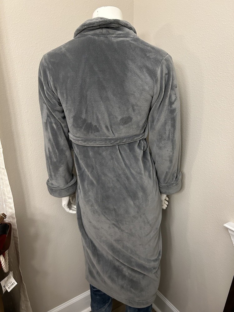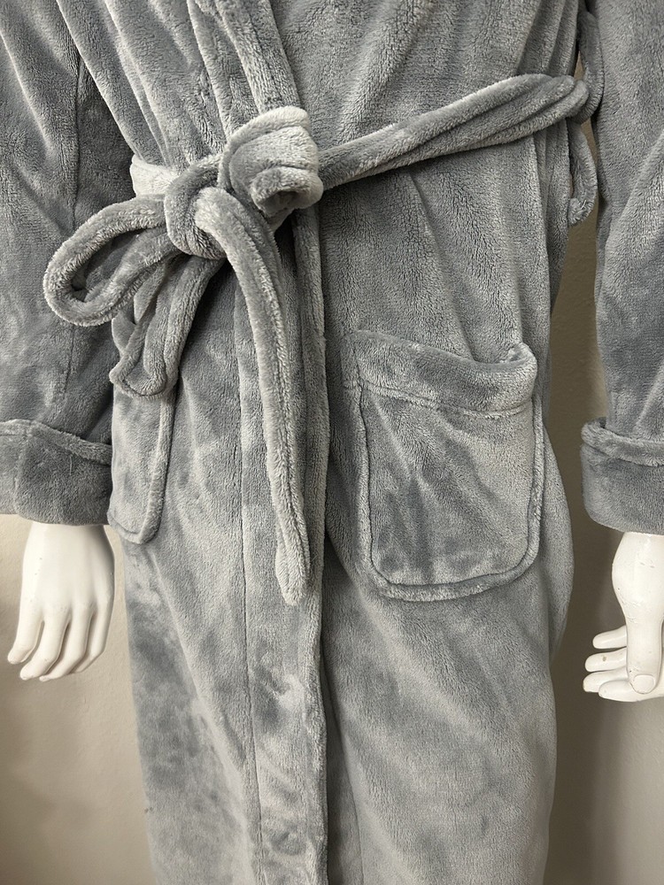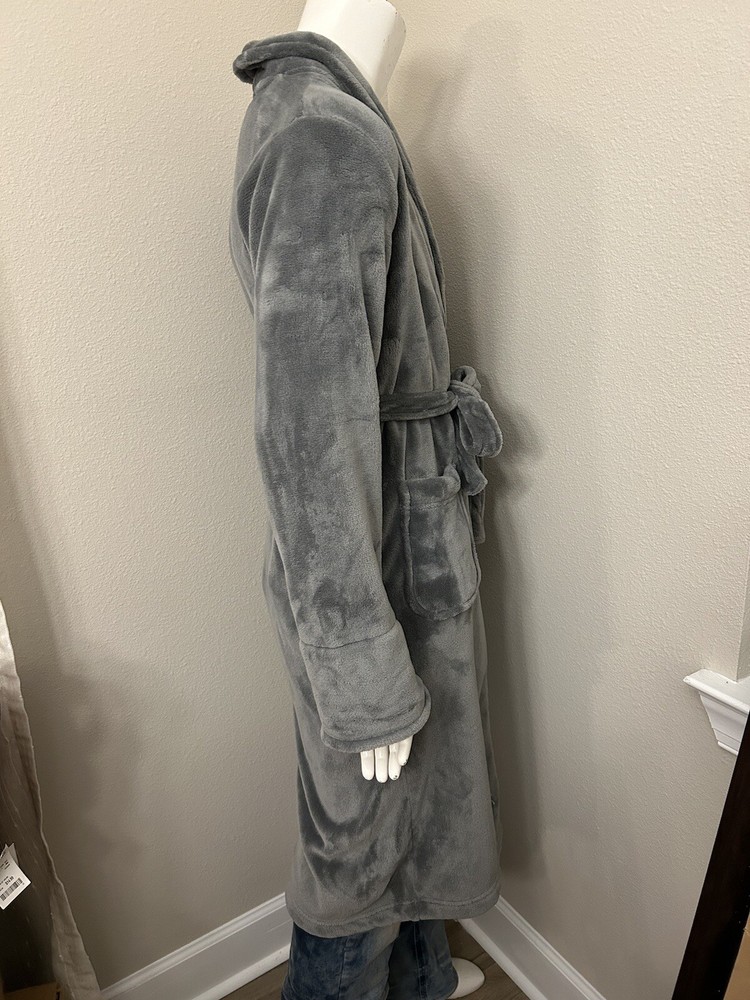 This Pottery Barn robe is perfect for staying cozy and comfortable at home. The soft and fuzzy material makes it an ideal lounge wear, while the belted feature adds a touch of style. The robe is machine washable, making it easy to care for. It comes in a beautiful shade of gray and features a tie closure and long sleeves, making it suitable for both men and women. The size is small and the pattern is solid, ensuring a comfortable fit. Whether you're looking for comfort or style, this Pottery Barn robe is the perfect addition to your wardrobe. Excellent used condition, very soft and cozy.