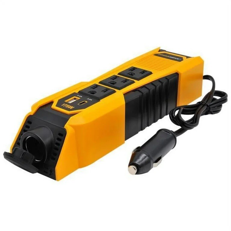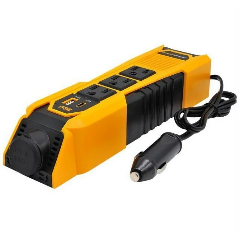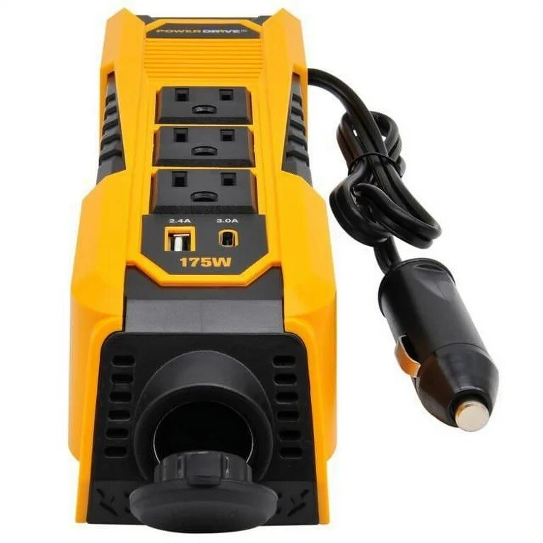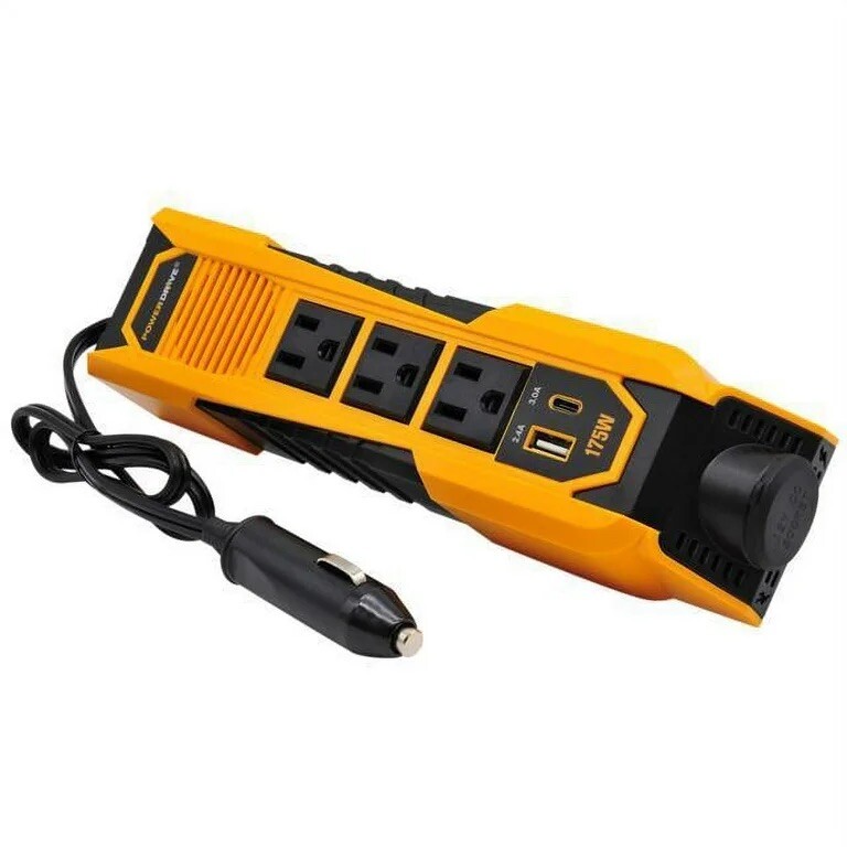 BRAND NEW in sealed clamshell but no outer box This mobile-friendly unit plugs into a 12-Volt port for easy portability. Convenient outlet options include three 3-prong AC outlets dual ports: one 2.4 AMP USB port and one USB-C(R) 3.0 AMP port. It also has one 12-Volt port for powering 12-Volt devices. Reliable safety features include overload shut-off triggers. The durable ABS PVC composite housing is tough and rigid to protect electronic components from abrasion and damage. Inverter's housing includes an illuminating glow to reinforce that power is active. Measures approximately 12in x 5in x 2. Power your laptop or other small electronic device while traveling in your RV or while camping. This power strip inverter easily converts DC power from your vehicle battery into AC power that these devices require. A great auto accessory to have on hand in case of a power outage on the grid. Ideal for hunters looking to power spotlights or other small devices using the power of their car or truck battery. Product Features: One (1) 12-Volt socket to fit directly into your vehicle auxiliary power outlet (cigarette lighter socket) Three (3) AC outlets convert 12V DC power from your vehicles battery into 110V AC power Dual USB Ports - 1 USB A 2.4 AMP and 1 USB C 3.0 AMP offering charging versatility to power different devices simultaneously 175 Watts continues power and 350 Watts surge power to keep your devices running while off the grid or over the road for use when traveling or camping and more Inverter housing has an illuminating glow to reinforce power is active Compact power inverter takes little space in your sleeper or vehicle can and dash 175W Continuous power: Powers AC devices up to 175 watts Dual port - Standard USB 2.4 AMP and USB-C(TM) 3.0 AMP port: Powers smartphones tablets and other devices Triple 3-prong AC outlets This mobile-friendly unit plugs into a 12-Volt port for easy portability. Convenient outlet options include three 3-prong AC outlets dual ports: one 2.4 AMP USB port and one USB-C(R) 3.0 AMP port. It also has one 12-Volt port for powering 12-Volt devices. Reliable safety features include overload shut-off triggers. The durable ABS PVC composite housing is tough and rigid to protect electronic components from abrasion and damage. Inverter's housing includes an illuminating glow to reinforce that power is active. Measures approximately 12in x 5in x 2. Power your laptop or other small electronic device while traveling in your RV or while camping. This power strip inverter easily converts DC power from your vehicle battery into AC power that these devices require. A great auto accessory to have on hand in case of a power outage on the grid. Ideal for hunters looking to power spotlights or other small devices using the power of their car or truck battery. Product Features: One (1) 12-Volt socket to fit directly into your vehicle auxiliary power outlet (cigarette lighter socket) Three (3) AC outlets convert 12V DC power from your vehicles battery into 110V AC power Dual USB Ports - 1 USB A 2.4 AMP and 1 USB C 3.0 AMP offering charging versatility to power different devices simultaneously 175 Watts continues power and 350 Watts surge power to keep your devices running while off the grid or over the road for use when traveling or camping and more Inverter housing has an illuminating glow to reinforce power is active Compact power inverter takes little space in your sleeper or vehicle can and dash 175W Continuous power: Powers AC devices up to 175 watts Dual port - Standard USB 2.4 AMP and USB-C(TM) 3.0 AMP port: Powers smartphones tablets and other devices Triple 3-prong AC outlets
