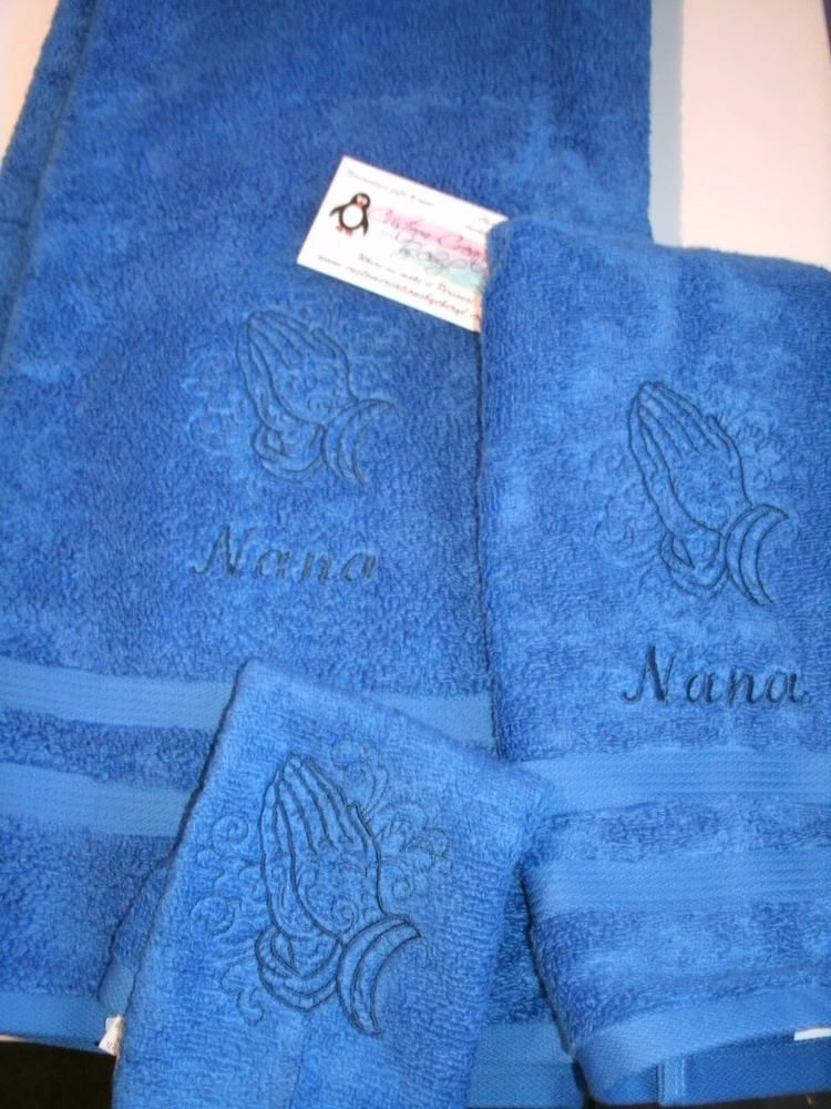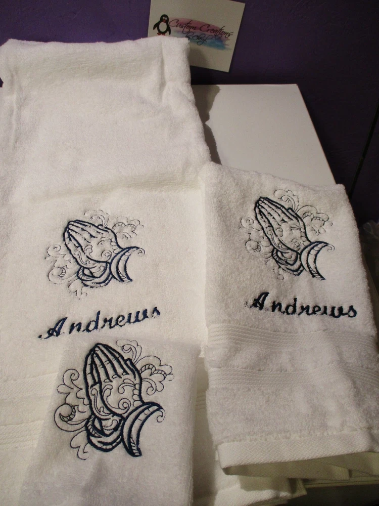 Absolutely love this personalized towel set! The praying hands design is elegant and meaningful, and the quality is fantastic. The option to choose any color combo makes it perfect for any bathroom decor. The embroidery is clean and durable, and the set feels super soft. Great as a gift or for personal use—highly recommend!