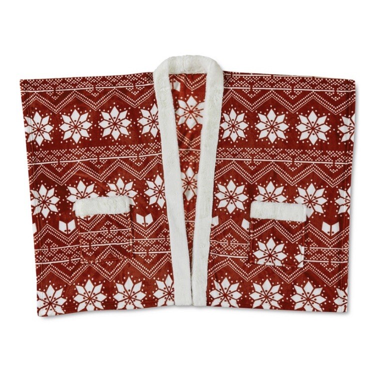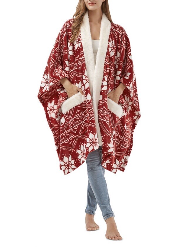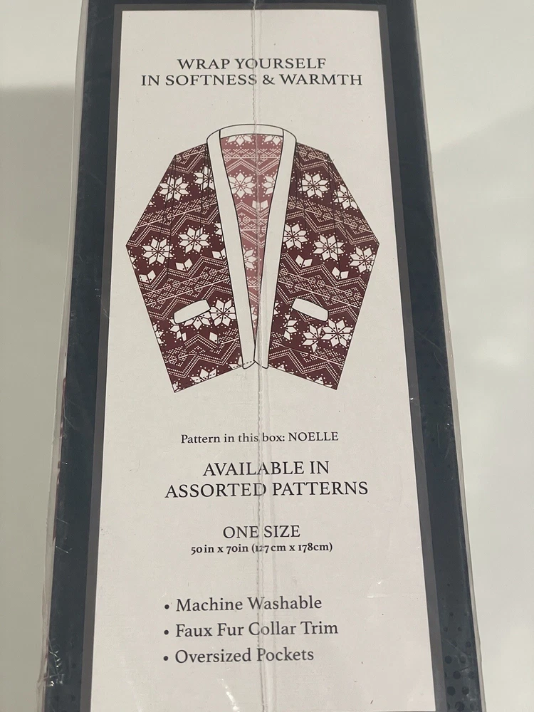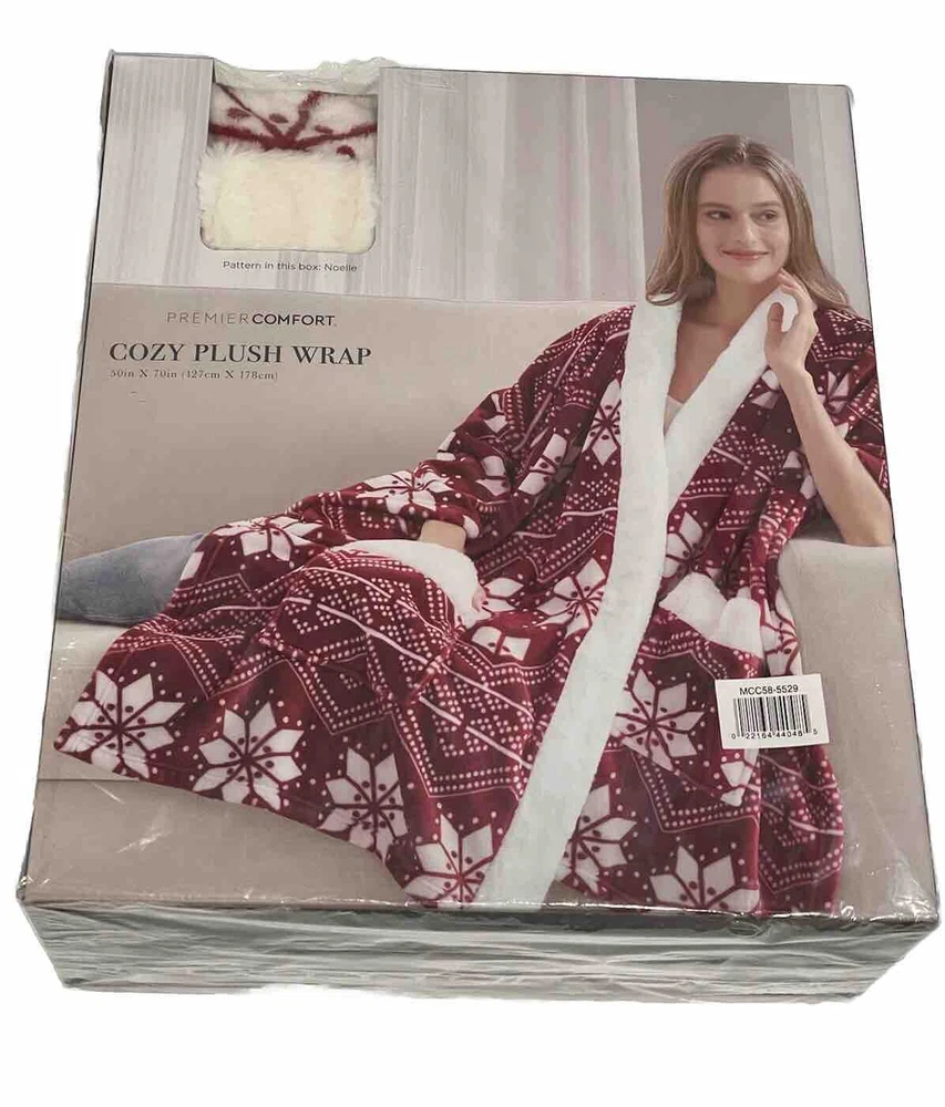 Snuggle in with the cozy feel of this Premier Comfort wrap, in ultra-soft plush with a fun print that makes warmth stylish. Product Features Approx. dimensions: 50" x 70" Allover print Oversized pockets with faux-fur trim Polyester Machine wash Imported
