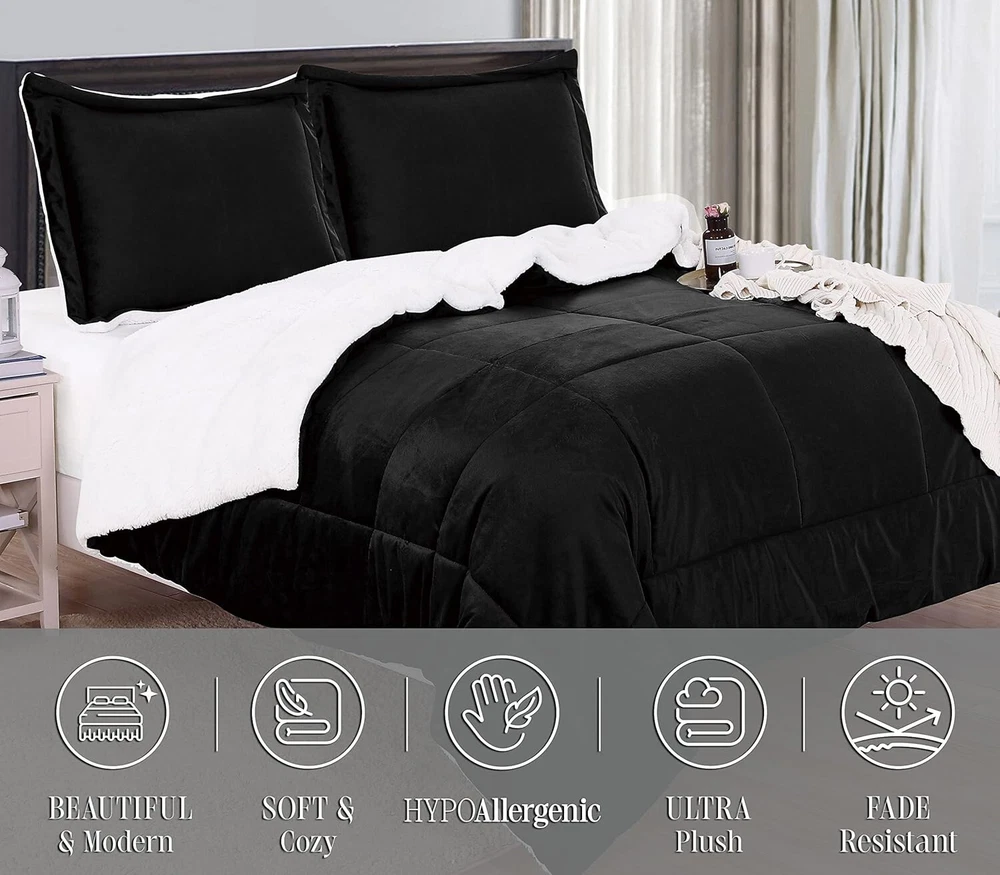 Premium Black Satin King Comforter with Pillow Shams - Cozy and Durable Bedding ‹ › ‹ › ‹ › ‹ › ‹ › ‹ › ‹ › ‹ › ‹ › ‹ › Premium Black Satin King Comforter with Pillow Shams Cozy and Durable Bedding Transform Your Sleep Sanctuary Indulge in luxury and comfort with our Premium Black Satin King Comforter Set. Perfectly designed for those who value both elegance and practicality, this exquisite bedding set is sure to elevate your bedroom experience. Features: Size & Contents: King Sherpa Comforter Set includes one comforter (104" x 90") and two pillow shams (20" x 36"). Luxury Stitching: Features a square-stitched design to prevent the filling from shifting, ensuring consistent warmth. Exceptional Style: Adds a layer of texture and elegance to any bedroom, perfect for all seasons. Durable Fabric: Made from 100% microsuede with soft sherpa backing; stain, shrink, and wrinkle resistant. Easy Care: Machine wash cold with like colors; tumble dry on low for longevity. Benefits: Ultra-soft, plush filling for the ultimate cozy feel. Reversible style; choose between solid satin or fluffy sherpa to match your mood. Breathable material, suitable for year-round use. Environmentally friendly production that you can feel good about. The Perfect Gift Idea Looking for an unforgettable gift? Pamper your loved ones with our beautiful comforter sets, perfect for any occasion, including holidays, birthdays, and housewarmings. Ideal for anyone who appreciates comfort and elegance. Elevate your sleep experience and transform your space into a cozy retreat today. Experience the comforting embrace of our Premium Black Satin King Comforter Set. With multiple colors available, find the perfect match for your décor and enjoy the luxury you deserve! Shipping Free & Fast Shipping - We offer free shipping to most of the USA with a normal delivery time of 3-7 days. However, due to the current situation, additional delivery time (up to 3 weeks) may be required for some items. Alternative Carriers - We may use alternative carriers (e.g. USPS, FedEx, UPS, etc.) to ensure your package arrives safely and on time. Due to the use of multiple carriers, we are unable to provide a tracking number automatically. Handling Time - Orders are processed and shipped within 1-2 business days of receiving cleared payment. Shipping Restrictions - Shipping to Alaska, Hawaii, Puerto Rico, Guam, and other US territories may incur shipping charges or delivery restrictions. Please contact us before ordering, or your order can be refunded/cancelled. State Restrictions - There may be restrictions based on your state of purchase. For example, certain items may not be shipped to California due to state regulations. Contact for Tracking Updates - If you require tracking updates or have any concerns about the delivery of your order, please feel free to contact us, and we will be happy to assist you. Return 30-Day Hassle-Free Returns - We want you to be completely satisfied with your purchase. If you are not, you can return the item within 30 days of receiving it for a full refund or exchange. Easy Return Process - To start a return, simply contact us and we will provide you with a prepaid return shipping label and detailed instructions. Restocking Fee - There are no restocking fees for returns. However, the buyer is responsible for return shipping costs if the return is not due to a seller's error. Refund Processing Time - Refunds will be processed within 5 business days of receiving the returned item in its original condition. Payment We accept all major credit cards, PayPal, and Apple Pay for your convenience. Your payment information is secure and encrypted to ensure a safe and seamless transaction. Please complete your payment within 3 days of purchase to avoid any delays in shipping. Feedback Your feedback is extremely important to us. We strive to provide the best products and customer service possible. If you are satisfied with your purchase, please take a moment to leave us a positive review. If you have any concerns or issues with your order, please contact us before leaving negative feedback. We are committed to resolving any problems and ensuring your satisfaction. Contact Us If you have any questions or concerns, please feel free to reach out to our customer support team. You can contact us through the eBay messaging system. We are available Monday to Friday, 9:00 am to 5:00 pm EST, and we will do our best to respond to your inquiry within 24 hours. Buy it now and enjoy a pleasant shopping experience! UPC: Not Set Model: Not Set Set Includes: Comforter,Pillow Sham Material: Microsuede,Microsuede Flannel Features: Breathable,Reversible,Stain Resistant,Heavy Weight,Shrink Resistant,Wrinkle Resistant,Ultra-soft,Cozy Character: Not Set Theme: Not Set Care Instructions: Machine Wash,Machine Wash Cold,Tumble Dry Low Department: Unisex Baby & Toddler,Kids,Teens,Adults Room: Bedroom,Dorm Labels & Certifications: Not Set Size: King Type: Comforter Set Brand: Unbranded Color: Black Fill Material: Fiber Pattern: Solid Item Width: Not Set Item Length: Not Set MPN: Not Set Number of Items in Set: 3 Style: Modern Character Family: Not Set Insulation: All Seasons Season: All Country/Region of Manufacture: Not Set Closure Type: No Closure Thread Count: 1500 Drop Length: Not Set GSM (Grams per Square Meter): 301 to 450 Product Line: Not Set Personalize: Not Set