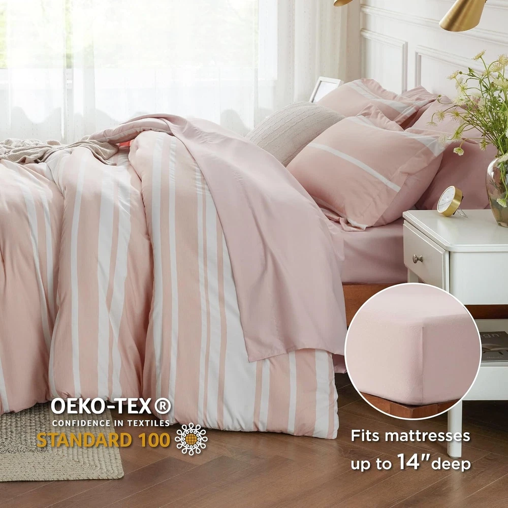 Premium OEKO-TEX Certified Full Comforter Set - Cozy, Reversible 7-Piece Bedding ‹ › ‹ › ‹ › ‹ › ‹ › ‹ › ‹ › ‹ › ‹ › ‹ › Premium OEKO-TEX Certified Full Comforter Set Cozy, Reversible 7-Piece Bedding Features: OEKO-TEX Certified: This full Bedding Set is Standard 100 by OEKO-TEX certified, ensuring it meets high safety standards and is free from harmful materials for your peace of mind. Easy Care: Effortlessly maintain the beauty of your bedding. Simply machine wash cold without chlorine-based bleach and tumble dry low to renew its freshness. High-Quality Fill: Experience cloud-like comfort with our all-season bedding set, filled with a fluffy 240 GSM fiber fill that is extra airy and luxurious. Elegant Design: The modern stripe pattern adds a minimalist appeal that complements a variety of home decor styles, bringing aesthetic charm and coziness to your bedroom. What You Get: Complete your bedding collection with this 7-piece set, which includes: 1 Comforter (82" x 86"), 2 Pillowcases (20" x 30"), 2 Pillow Shams (20" x 26"+2"), 1 Fitted Sheet (54" x 75" + 14"), 1 Flat Sheet (81" x 96"). Benefits: Confidence in quality validated by OEKO-TEX certification, ensuring no harmful substances. Convenient care that fits seamlessly into your busy lifestyle. Indulge in a restful night's sleep with the cozy, plush feel of high-quality fiber fill. Enhance your bedroom's aesthetic with sophisticated, timeless design. A comprehensive solution for your bedding needs, creating a beautifully coordinated space. Why choose our Premium Comforter Set? Your sanctuary deserves nothing less than the best. Elevate your sleeping experience with our Premium OEKO-TEX Certified Full Comforter Set, which not only prioritizes your comfort but also your safety. With its easy-care convenience, fluffy feels, and elegant design, this 7-piece set becomes the heart of your bedroom - a place where relaxation meets refinement. Embrace comfort and style in your home - order your Premium Comforter Set today! Shipping Free & Fast Shipping - We offer free shipping to most of the USA with a normal delivery time of 3-7 days. However, due to the current situation, additional delivery time (up to 3 weeks) may be required for some items. Alternative Carriers - We may use alternative carriers (e.g. USPS, FedEx, UPS, etc.) to ensure your package arrives safely and on time. Due to the use of multiple carriers, we are unable to provide a tracking number automatically. Handling Time - Orders are processed and shipped within 1-2 business days of receiving cleared payment. Shipping Restrictions - Shipping to Alaska, Hawaii, Puerto Rico, Guam, and other US territories may incur shipping charges or delivery restrictions. Please contact us before ordering, or your order can be refunded/cancelled. State Restrictions - There may be restrictions based on your state of purchase. For example, certain items may not be shipped to California due to state regulations. Contact for Tracking Updates - If you require tracking updates or have any concerns about the delivery of your order, please feel free to contact us, and we will be happy to assist you. Return 30-Day Hassle-Free Returns - We want you to be completely satisfied with your purchase. If you are not, you can return the item within 30 days of receiving it for a full refund or exchange. Easy Return Process - To start a return, simply contact us and we will provide you with a prepaid return shipping label and detailed instructions. Restocking Fee - There are no restocking fees for returns. However, the buyer is responsible for return shipping costs if the return is not due to a seller's error. Refund Processing Time - Refunds will be processed within 5 business days of receiving the returned item in its original condition. Payment We accept all major credit cards, PayPal, and Apple Pay for your convenience. Your payment information is secure and encrypted to ensure a safe and seamless transaction. Please complete your payment within 3 days of purchase to avoid any delays in shipping. Feedback Your feedback is extremely important to us. We strive to provide the best products and customer service possible. If you are satisfied with your purchase, please take a moment to leave us a positive review. If you have any concerns or issues with your order, please contact us before leaving negative feedback. We are committed to resolving any problems and ensuring your satisfaction. Contact Us If you have any questions or concerns, please feel free to reach out to our customer support team. You can contact us through the eBay messaging system. We are available Monday to Friday, 9:00 am to 5:00 pm EST, and we will do our best to respond to your inquiry within 24 hours. Buy it now and enjoy a pleasant shopping experience! UPC: Not Set Model: Not Set Set Includes: Comforter,Fitted Sheet,Flat Sheet,Pillowcase,Pillow Sham Material: Polyester Character: Not Set Features: Reversible,Easy Care Theme: Modern Care Instructions: Do Not Bleach,Machine Wash Cold,Tumble Dry Low Department: Adults Room: Bedroom Labels & Certifications: Not Set Size: Full Type: Comforter Set Brand: Unbranded Color: Light Pink Fill Material: Polyester Pattern: Classic Stripe Item Width: Not Set Item Length: Not Set MPN: Not Set Character Family: Not Set Number of Items in Set: 7 Insulation: All Seasons Style: Modern Season: All Country/Region of Manufacture: Not Set Closure Type: No Closure Thread Count: 200 or Less Drop Length: Not Set GSM (Grams per Square Meter): 240 Product Line: Not Set Personalize: Not Set