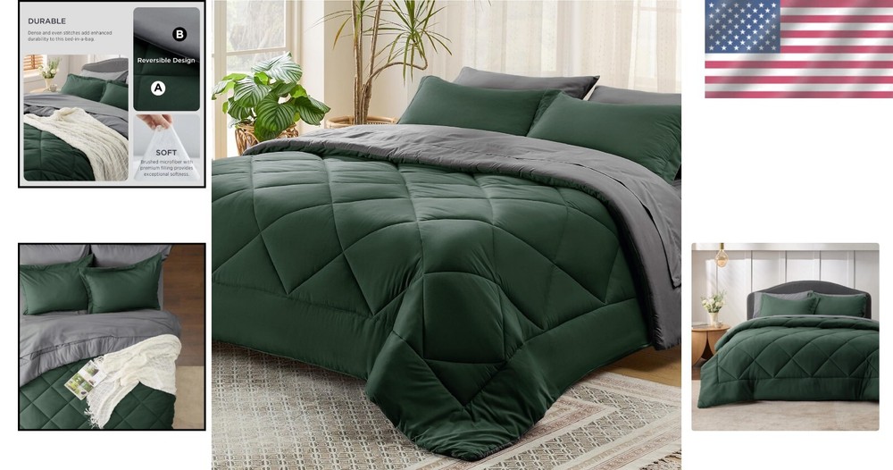 Premium Reversible King Comforter Set - Cozy Microfiber Bedding for All Seasons ‹ › ‹ › ‹ › ‹ › ‹ › ‹ › ‹ › ‹ › Premium Reversible King Comforter Set Cozy Microfiber Bedding for All Seasons 100% Polyester Inclusive and Convenient This luxurious king 7-piece bed-in-a-bag set is designed to effortlessly transform your bare mattress into a cozy sleep haven. Each set includes: 1 plush comforter 2 soft pillowcases 2 elegant pillow shams 1 fitted sheet 1 flat sheet Experience year-round comfort and warmth with a single bundle that covers all your bedding needs. Soft & Warm Indulge in the luxuriously soft embrace of premium microfiber filling, carefully quilted to offer extra softness, volume, and durability. This king comforter set provides the perfect level of warmth for every season. Reversible Design Add a touch of elegance to your bedroom with a reversible and dual-tone design. Effortlessly mix and match your bedding style with just a flip, making your space feel fresh and personalized at any time. Thoughtful Details This bedding set is designed with user-friendly features: Fitted sheet with pockets for mattresses up to 14" deep Envelope closure pillowcases to keep your pillows secure Diamond pattern quilting prevents shifting of filling Easy to Maintain The Premium Reversible King Comforter Set is crafted for durability and convenience. With dense stitching and machine washability, maintaining its pristine condition is a breeze. Simply machine wash in cold water on a gentle cycle for a restoration that keeps your bedding looking like new. Elevate Your Sleep Experience Transform your sleep sanctuary with this exquisite comforter set that embodies comfort, style, and convenience. Don't miss the opportunity to indulge in the ultimate bedding experience—order your Premium Reversible King Comforter Set today and embrace cozy, stylish nights! Shipping Free & Fast Shipping - We offer free shipping to most of the USA with a normal delivery time of 3-7 days. However, due to the current situation, additional delivery time (up to 3 weeks) may be required for some items. Alternative Carriers - We may use alternative carriers (e.g. USPS, FedEx, UPS, etc.) to ensure your package arrives safely and on time. Due to the use of multiple carriers, we are unable to provide a tracking number automatically. Handling Time - Orders are processed and shipped within 1-2 business days of receiving cleared payment. Shipping Restrictions - Shipping to Alaska, Hawaii, Puerto Rico, Guam, and other US territories may incur shipping charges or delivery restrictions. Please contact us before ordering, or your order can be refunded/cancelled. State Restrictions - There may be restrictions based on your state of purchase. For example, certain items may not be shipped to California due to state regulations. Contact for Tracking Updates - If you require tracking updates or have any concerns about the delivery of your order, please feel free to contact us, and we will be happy to assist you. Return 30-Day Hassle-Free Returns - We want you to be completely satisfied with your purchase. If you are not, you can return the item within 30 days of receiving it for a full refund or exchange. Easy Return Process - To start a return, simply contact us and we will provide you with a prepaid return shipping label and detailed instructions. Restocking Fee - There are no restocking fees for returns. However, the buyer is responsible for return shipping costs if the return is not due to a seller's error. Refund Processing Time - Refunds will be processed within 5 business days of receiving the returned item in its original condition. Payment We accept all major credit cards, PayPal, and Apple Pay for your convenience. Your payment information is secure and encrypted to ensure a safe and seamless transaction. Please complete your payment within 3 days of purchase to avoid any delays in shipping. Feedback Your feedback is extremely important to us. We strive to provide the best products and customer service possible. If you are satisfied with your purchase, please take a moment to leave us a positive review. If you have any concerns or issues with your order, please contact us before leaving negative feedback. We are committed to resolving any problems and ensuring your satisfaction. Contact Us If you have any questions or concerns, please feel free to reach out to our customer support team. You can contact us through the eBay messaging system. We are available Monday to Friday, 9:00 am to 5:00 pm EST, and we will do our best to respond to your inquiry within 24 hours. Buy it now and enjoy a pleasant shopping experience! UPC: Not Set Model: Not Set Set Includes: Comforter,Fitted Sheet,Flat Sheet,Pillowcase,Pillow Sham Material: Polyester,100% Polyester Features: Breathable,Lightweight,Not Quilted,Quilted,Reversible,Water Resistant Character: Not Set Theme: Seasonal Care Instructions: Do Not Bleach,Machine Wash Department: Adults Room: Bedroom Labels & Certifications: Not Set Size: King Type: Comforter Set Brand: Unbranded Color: Forest Green Fill Material: Polyester Pattern: Solid Item Width: Not Set Item Length: Not Set MPN: Not Set Number of Items in Set: 7 Style: Modern Character Family: Not Set Insulation: All Seasons Season: All Country/Region of Manufacture: Not Set Closure Type: No Closure Thread Count: 200 or Less Drop Length: Not Set GSM (Grams per Square Meter): Below 150 Product Line: Not Set Personalize: Not Set