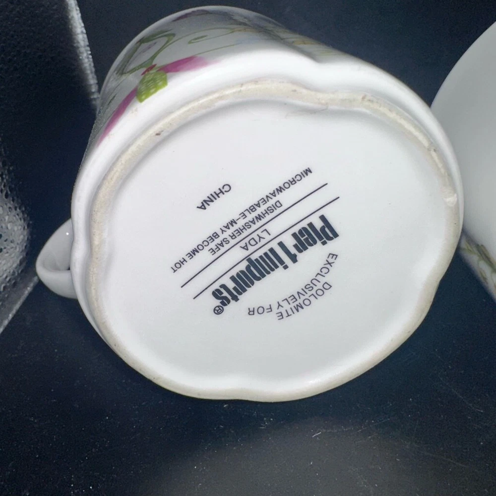 Preowned Pier 1 Imports LYDA Coffee Mugs Floral Design Set of 2. Small Chip On Bottom of One Cup. No other defects found. Smoke Free Home. #pier1imports #pier1 #pierone #lyda #coffeemugs