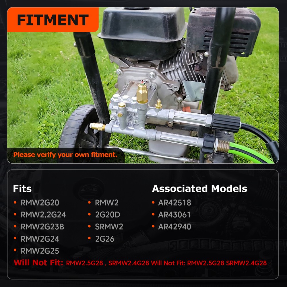 Store Categories Store Categories Other Pressure Washer Pump Head Assy For Troy Bilt RMW / SRMW Complete AR42518 AR43061 Product Description High-Efficiency Performance: Elevate your cleaning experience with our Pressure Washer Pump Head Assembly, delivering up to 2600 PSI pressure output and 2.2 GPM flow rate to effortlessly remove stubborn stains and dirt. It provides unmatched cleaning power for your home, vehicles, or patio Fitment: Designed to work with Annovi Reverberi Pressure Washer Pumps RMW2G20, RMW2.2G24, RMW2G23B, RMW2G24, RMW2G25, RMW2.2G20D, SRMW2.2G26 Compatibility Notice: Please be aware that this pump head is NOT compatible with SRMW 2.4 GPM, SRMW2.3G28, SRMW2.4G28, or SRMW2.5G28 models. Verify your pressure washer model before purchase to ensure a perfect fit Precision Cleaning Technology: Our pump head comes with precisely engineered nozzles and adjustable pressure settings, meaning you have perfect control whether you're cleaning sensitive surfaces or tackling heavy-duty dirt Package Includes: 1 X RMW / SRMW Pressure Washer Pump Head Note: Please check the pictures of this item and compare it with your part number carefully before you purchase!!! Due to the different display and different light, the picture may not reflect the actual color of the item. Payment Policy Shipping Policy Returns Policy Payment Policy 1.We can only accept payment by paypal. 2.We will ship to ebay confirmed address only. Please send a message to us for any inquires any time. 3.Please make your payment within th e next 24 hours so we can send the product to you ASAP. Shipping Policy 1.All items will ship within 24 hours (Monday - Friday) except holidays.Pls understand 2.If you want to choose expedited transportation way,please contact us,normal you need to pay for the extra shipping fee. 3.We are not responsible for carrier transit time. This information is provided by the carrier and excludes weekends and holidays. Note that transit times may vary, particularly during peak periods or in climate weather conditions, and that delivery times frames will need to be extended for any processing time frames in excess of 1-2 business days. 4.If you have any question,please cont a ct with us. Returns Policy 1.All return requests must be made within 30 (30) days of the delivery date with documentation related to said purchase as requested. 2.Returns or refunds are only available for products that are returned in the same condition they were sent, brand new and sealed. 3.Returns will NOT be accepted for opened or used items. 4.Please contact customer support for any questions or concerns Copyright © 2021 Dianxiaomi
