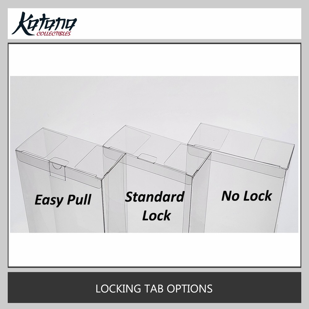 Premium Box Protector Product Highlights Perfect Fit : Designed to fit Standard Box - Top Opening Fit Box Size (L x H x D) :11.7323" x 10.6299" x 5.6299" (298 x 270 x 143 mm) Superior Protection : Guards against dust, grime, fingerprints, and UV damage Premium Material : Made from 0.5mm thick, high-grade PET with UV protection Crystal Clear : Removable protective film on both sides for pristine clarity Made in USA : Crafted to order for unmatched quality and customization options Key Features Standard Design : Simple design to accommodate most collectible Top Opening : Convenient access with opening flaps on the top and bottom of the box Customizable Options : Style: GFL Design (Glue-Free) or Glued Design Hanger: Full Size, Mini, or No Hanger Locking Tab: Standard, Easy Pull, or No Tab Easy Assembly : Ships flat with simple folding instructions available on our website Secure Shipping : Packaged in sturdy envelopes with thick cardboard inserts to prevent damage Why Choose Our Box Protectors? Quality : Made from the best materials on the market for optimal protection Flexibility : Custom designs available for unique collectibles Expertise : Specialized in collectible protection to preserve your investments Convenience : Each protector individually labeled for easy identification Important Note on Dimensions and Fit Please read carefully before purchasing: The dimensions for this protector were provided by customers and have NOT been confirmed to fit by previous customer. These measurements are provided as a reference only. The actual fit may vary significantly. For guaranteed fit, we recommend ordering a custom-sized protector by providing your own measurements. There is no extra charge for custom sizes. We strongly recommend measuring your item carefully before placing your order. Please select your options carefully . As these items are custom-made to order, we cannot accept returns or exchanges if you select incorrect options or change your mind. If you need a specific fit tolerance, please consider ordering a custom-sized protector by providing your own measurements. How to Order Select your preferred options from the dropdown menus above. Add to cart and proceed to checkout. For custom sizes, please contact us directly with your specific measurements. Disclaimer: Picture is for reference only. You will receive 1 clear protector. Toy/Movie/Game/Object in the picture is not included. Preserve your collection's value with our premium box protectors – the ultimate protection for your prized collectibles!