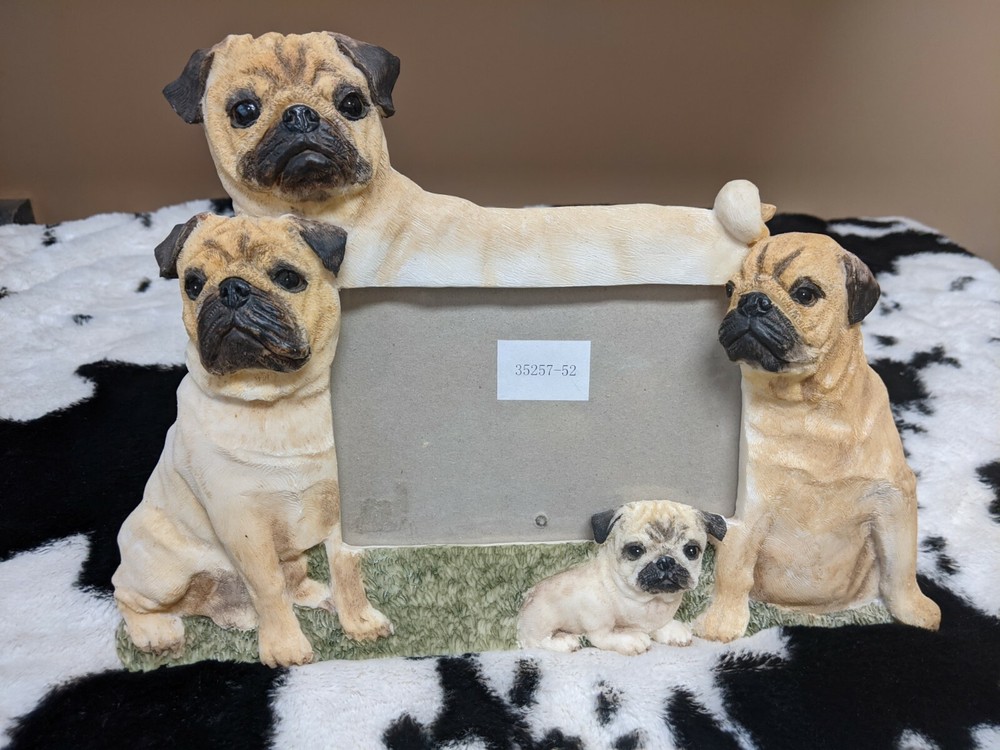 Pug Dog Family Photo Frame Holds 4" x 6" Picture Frame Canine E & S Import. Frame is in good used condition. See photos and ask any questions you may have....