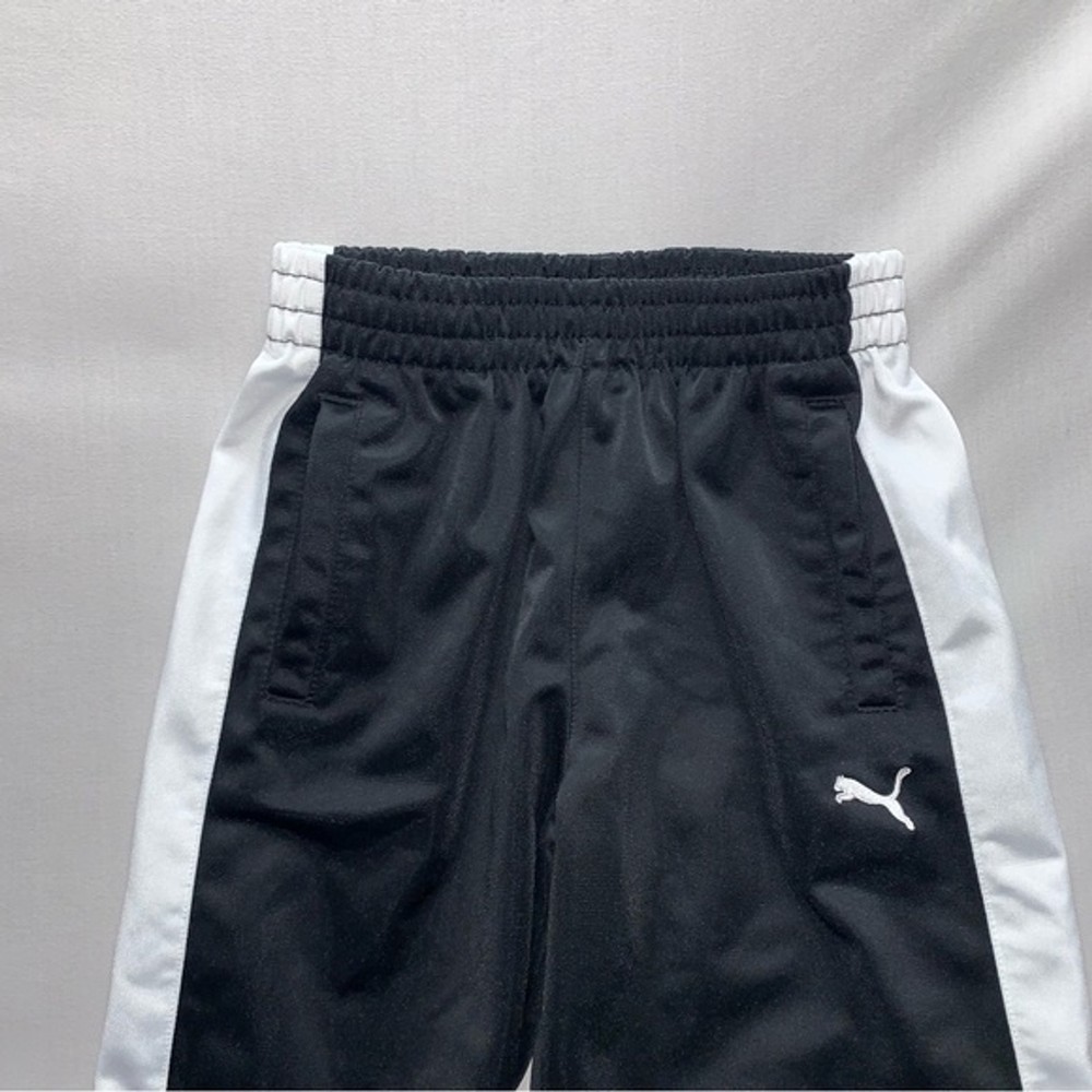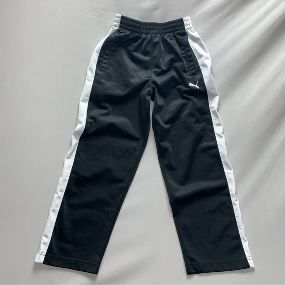 Puma Boy’s Small Black White Stripe Cozy Comfort Elastic Waist Pull On Track Pants Sweatpants Logo Basketball stay warm joggers sweatpants from Puma. The pants are a single layer with a white puma logo on one leg. They have an elastic waist and 2 pockets plus 1 pocket on the back. Size Small EUC - no known flaws 🛍 Bundle for additional discounts including shipping :) I offer same day shipping whenever possible! Everyday, basic, classic, comfortable, cozy, casual, sweats, workout wear, hanging out, hip, cool kid