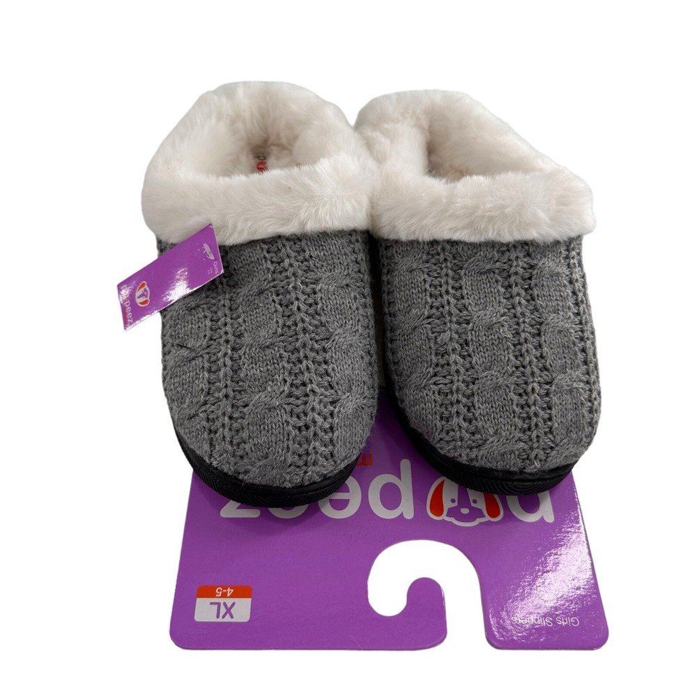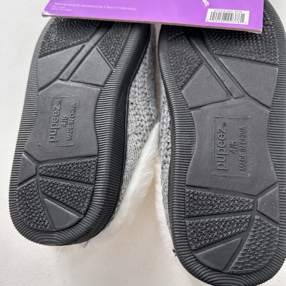 Step into ultimate comfort with the Pupeez Girls Slipper Cozy. These slip-on clogs feature a flat heel and standard shoe width for a perfect fit. The suede upper material and fleece fabric type provide warmth and coziness, making them perfect for casual occasions or just lounging at home. The gray color with quilted accents and logo theme add a touch of style to these slippers. Available in US shoe size 4.5 and UK shoe size 3, they are suitable for girls who love to walk and play. Get the Pupeez Slipper Cozy today and experience the ultimate comfort!
