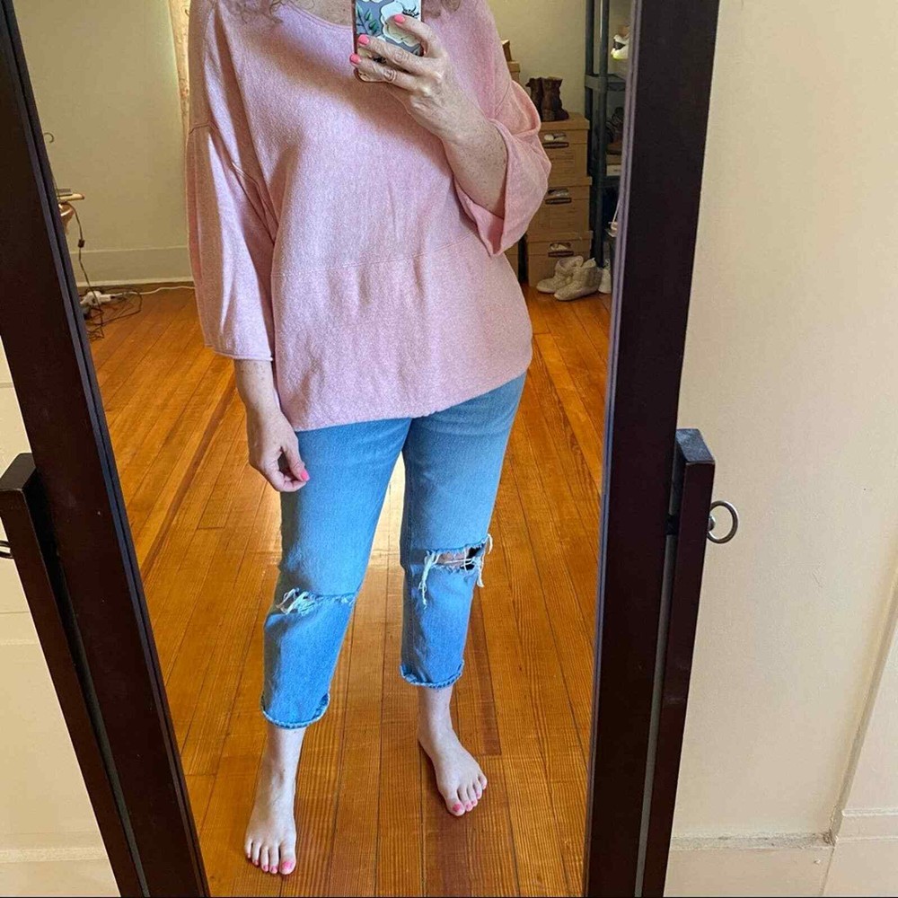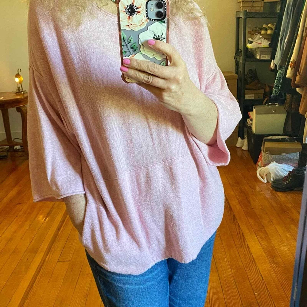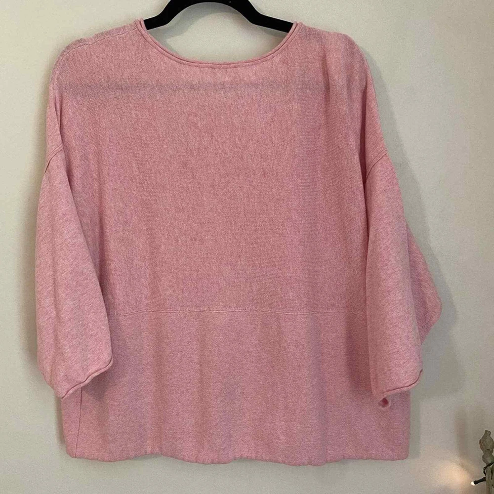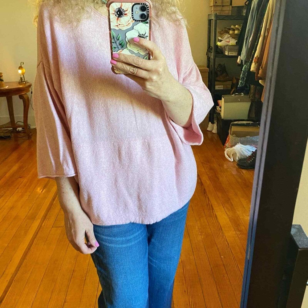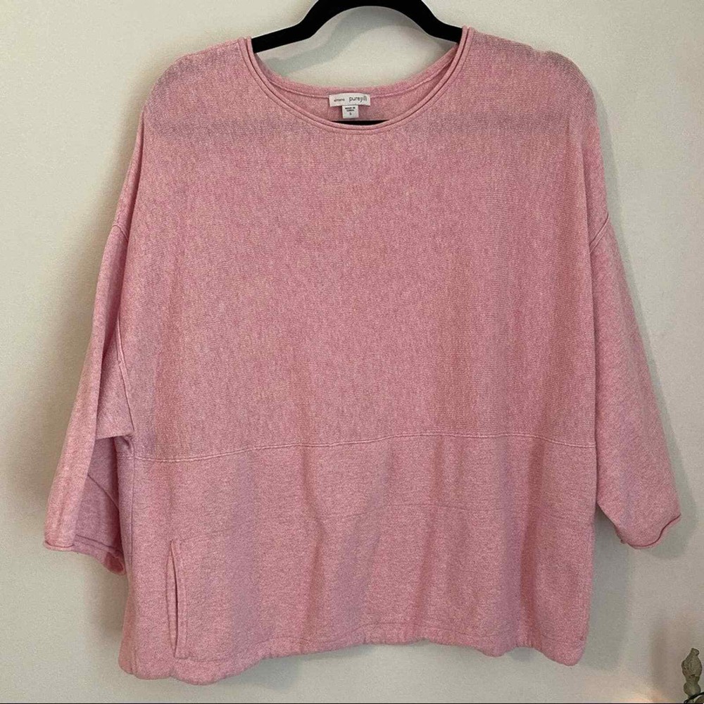PureJill J. Jill Cotton Cashmere Cozy Top with Front Kangaroo Pocket Size Small (oversized) approximate flat measurements: under arm to under arm 24 inches 24 1/2 inches long Boxy fit with full 3/4 sleeves; this top is super soft and way cozy. Great for lounging. You can definitely go from couch to errands in this cutie. Freshly laundered. The texture is a little slubby. 95% Cotton 5% cashmere