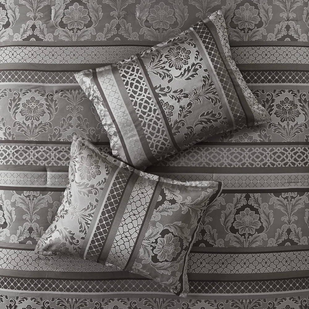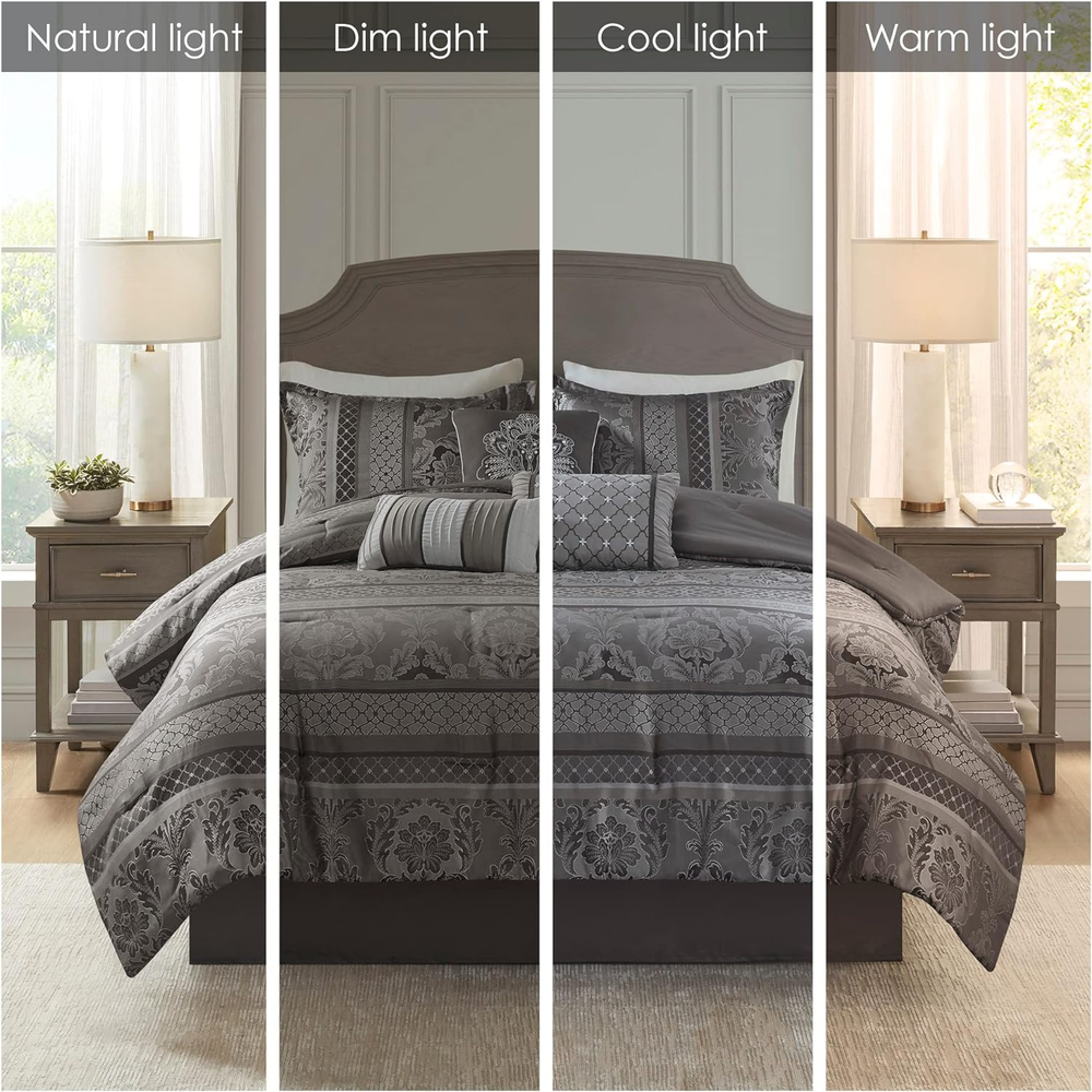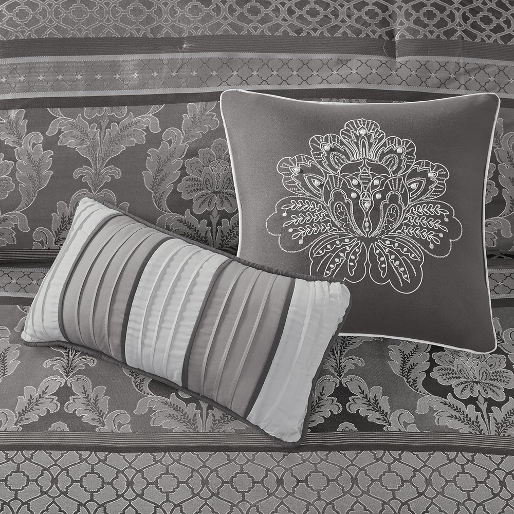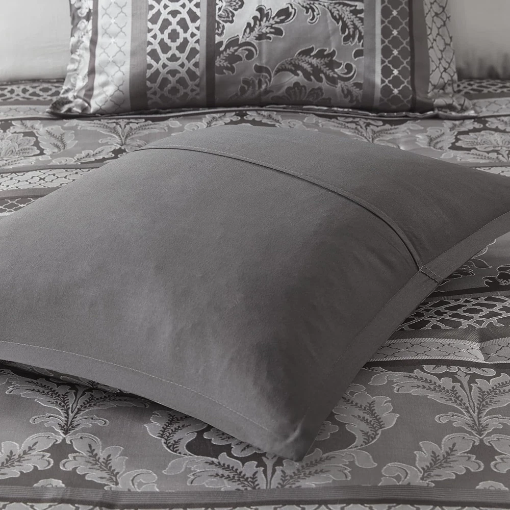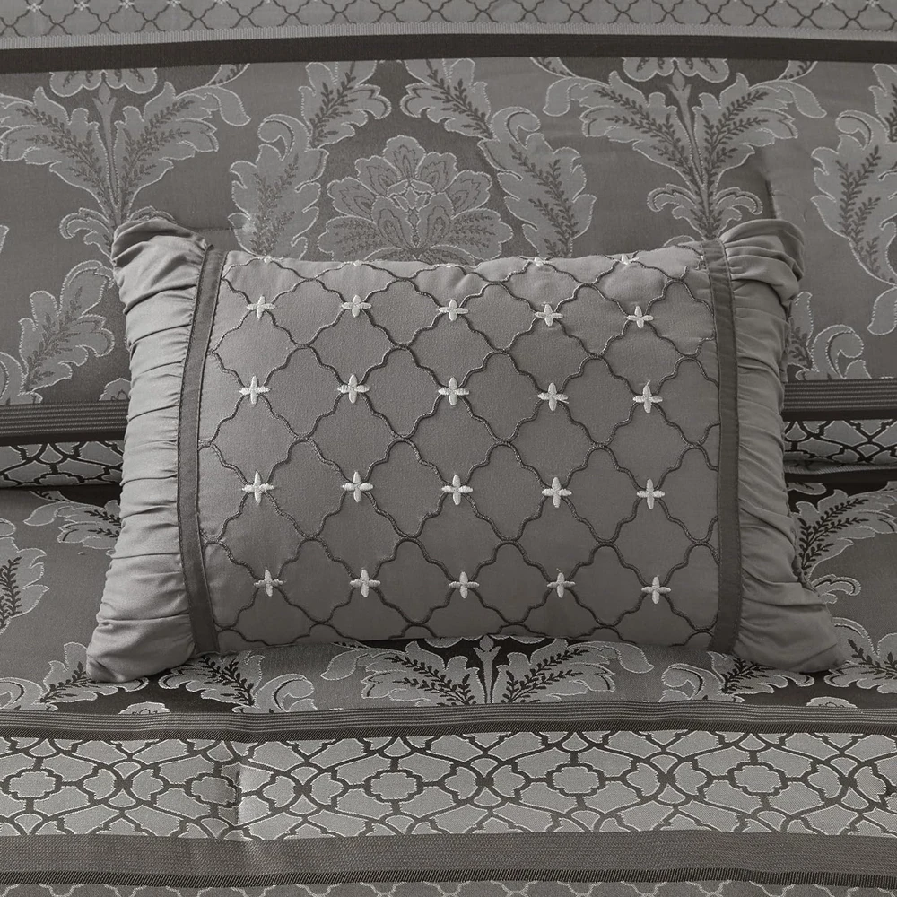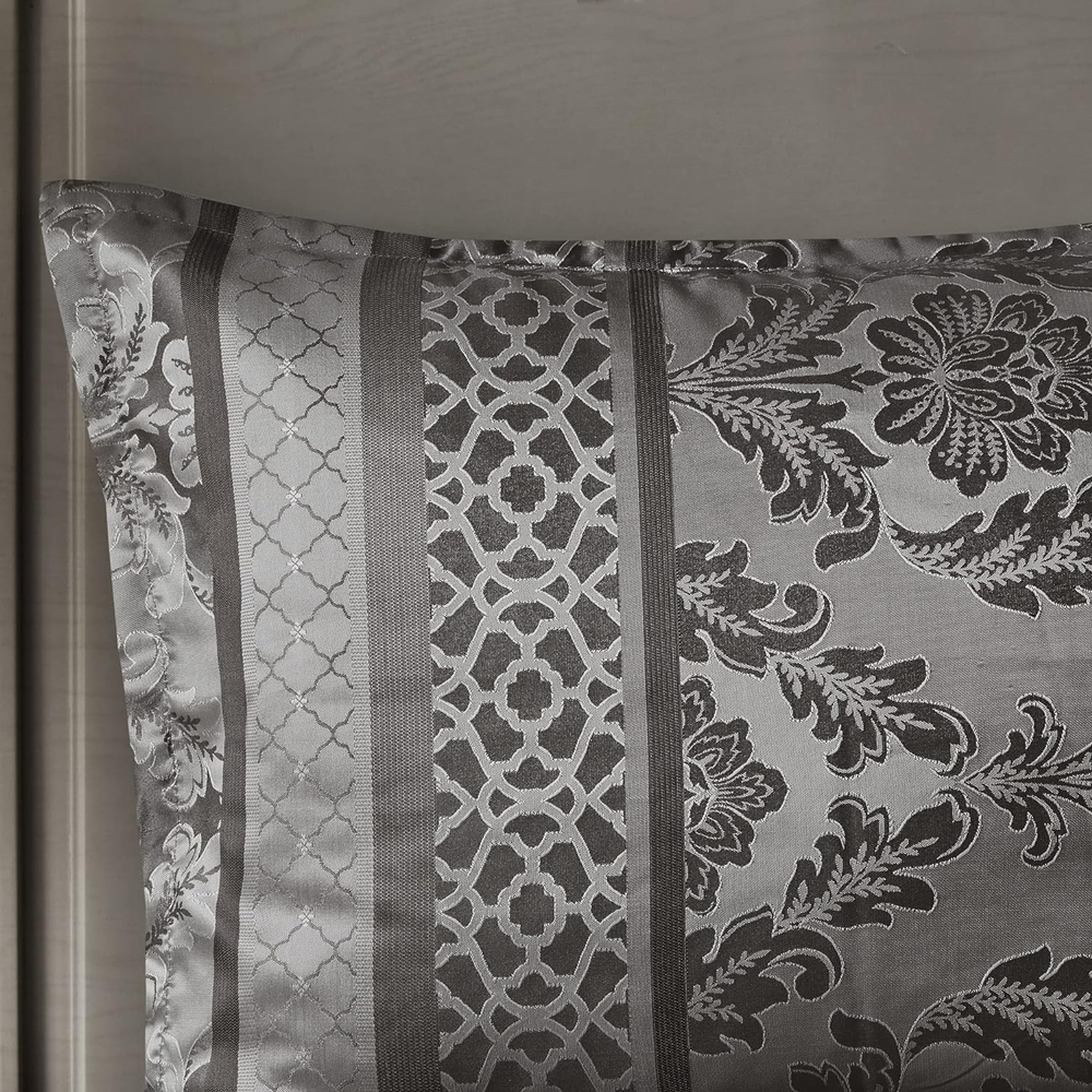 Add to Favorite View Feedback Contact Queen Cozy Comforter Set Luxurious Jaquard Traditional Damask Design Sham Pillow Description Item model number MP10-4882 Style Traditional Pattern Leaves Country of Origin China Theme Damask,Stripe Department unisex-adult Import Imported Number of Pieces 7 Specifications certified frustration-free Product Dimensions 90 x 90 x 1.5 inches Material Polyester Seasons All Included Components Pillow Sham, Comforter, Bed Skirt, Pillow Fabric Type Polyester Item Weight 11.89 pounds Color Bellagio Grey Global Trade Identification Number 00086569896872 Batteries required No Refill polyester Manufacturer Madison Park Brand Madison Park Product Care Instructions Machine Wash Polyester Imported Polyester jacquard woven stripe motif 15" drop bedskirt embroidered dec pillows Polyester jacquard, 8oz/sq yard polyester filling, microfiber bedskirt, embroidered decorative pillows ; 1 Comforter: 90"W x 90"L 2 Standard Shams: 20"W x 26"L + 1"D 1 Bedskirt: 60"W x 80"L + 15"D 3 Decorative Pillows: (1)16"W x 16"L, (1)12"W x 18"L, (1)10"W x 18"L Machine washable, Spot clean pillows ABOUT US We have a proven track record over many years. We have 1000s of satisfied customers all over the world. We dispatch orders within 1-3 days! We use multiple trusted carriers to insure your items arrive quickly! SHIPPING We ship to the Lower 48 States only (Does NOT include Hawaii or Alaska) We cannot ship to PO Boxes/APO's We cannot combine shipping. No Local Pickup. We ship internationally through the eBay Global Shipping Program. We ship the item to eBay's global shipping facility for free. eBay then takes control of the package and ships it around internationally. They will charge a shipping fee, that will be added to your total order price BEFORE you complete the order. All items will be shipped from our supplier within 1-3 business days. Most items are delivered within 3-5 business days. All items are in stock when they are listed. Inventory is tracked and updated regularly. However, if demand exceeds our supply, we will give the customer the following options: Full refund. Have the item back ordered and shipped when it becomes available. We will offer other items in similar style and quality. Your bid / purchase of the item implies you agree to this policy. If you have a question about a product not otherwise answered in the item description, please contact us via eBay messages first and allow us the opportunity to help you and be sure we have what you're looking for. RETURNS Your satisfaction is guaranteed! If for any reason you are unhappy with your item, just return it within 30 days for a full refund or and exchange for the same item. Please contact us prior to initiating a return so that we can issue you a refund authorization and a FREE Return Shipping Label! PAYMENT We accept PayPal. CONTACT US This page content is yet to come Please ad us to your favorite seller and visit again later Thank You CUSTOMER SATISFACTION We try our very best to make sure every customer is completely satisfied. If there's a problem, message us! We're happy to help you with any questions you have about, Queen Cozy Comforter Set Luxurious Jaquard Traditional Damask Design Sham Pillow.