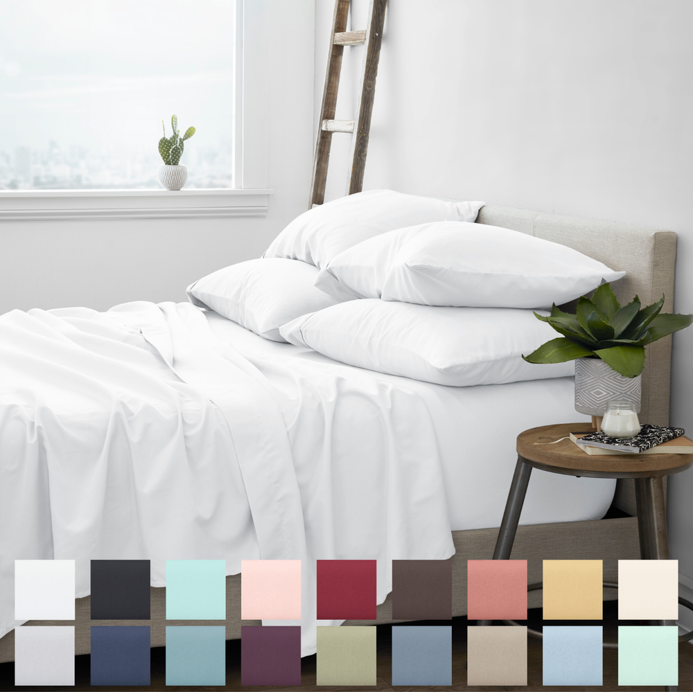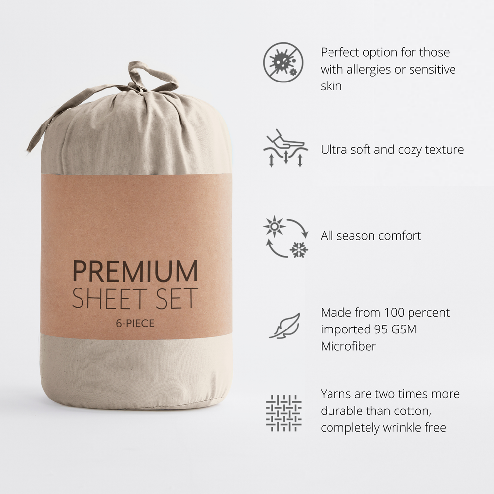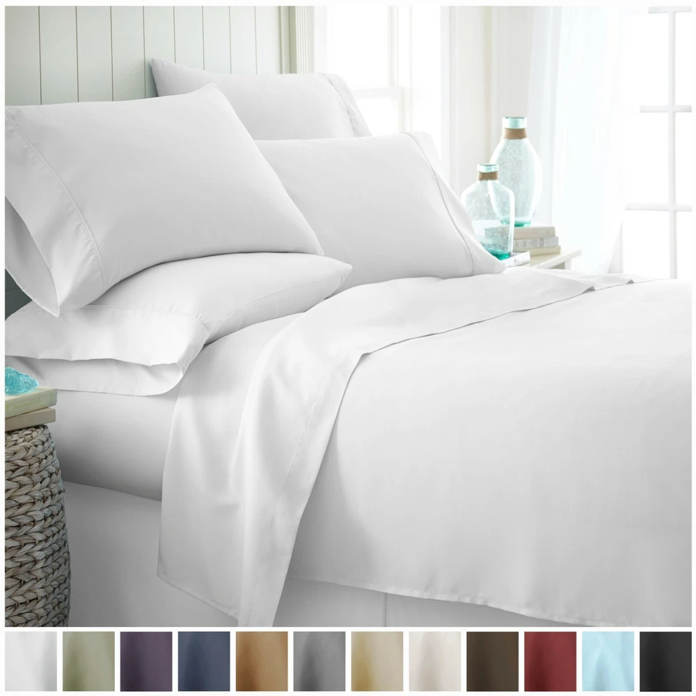 LUXURY AND COMFORT-You'll be amazed at how silky soft, and comfortable these luxurious bed sheets are! ienjoy Home luxury sheet sets are designer sheets at an unbelievable price. The perfect fit for any room in your house - bedroom, guest room, kids room, dorm room, RV, vacation home. Great gift idea for men and women, Moms and Dads, Valentine's - Mother's - Father's Day, Birthday, and Christmas. CLASSIC TAILORED LOOK - Set includes: One flat sheet, one fitted sheet (with deep pockets), and four pillowcases. Twin/TwinXL come with two pillowcases. HIGH QUALITY - Ultra soft microfiber fabric woven with the finest craftsmanship. Good hand feel and very cozy to sleep on. Fade, stain, shrink and wrinkle resistant. Machine wash in cold, and quick dries on tumble dry low. More durable than any cotton! TREMENDOUS SELECTION - Colors include Aqua, Black, Burgundy, Chocolate, Cream, Gold, Gray, Ivory, Light Gray, Navy, Purple, Sage, Taupe, and White. QUEEN SIZE BED SHEET SET INCLUDES: 1 Queen Fitted Sheet: 60" W x 80" L + 16"; 1 Queen Flat Sheet: 90" W x 102" L; 4 Standard Pillowcases: 20" W x 30"