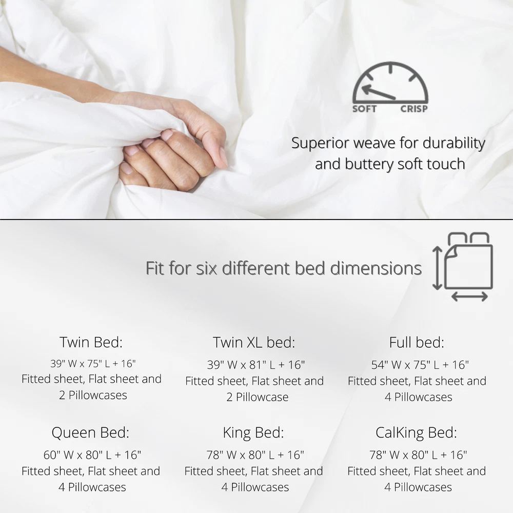 These sheets are incredibly soft and luxurious—like sleeping on a cloud! The deep pockets fit my mattress perfectly, and the crisp white design adds a classic elegance to my bedroom. Great value for such high-quality material, and they make the perfect gift for anyone who loves comfort. Highly recommend!