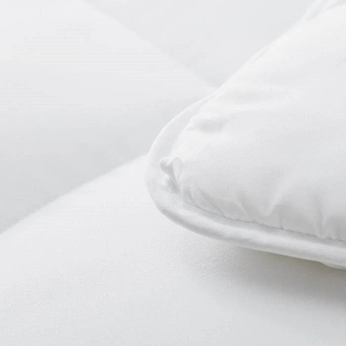 Perfect for curling up and staying warm this Queen Size All Seasons Plush White Polyester Down Alternative Comforter provides everything and more all year round! This piece features baffle box stitch construction for a classic look that doubles as a handy way to keep the filling from sliding and lends this piece a breathable touch. This mid weight 275 gsm comforter has 4 corner tabs to keep your duvet in place and since it's machine washable, a quick cycle is all it takes to have this piece looking its best. Queen Size - Down Alternative Comforter Machine Washable Hypoallergenic 100% Premium polyester fiber Dimensions: 92 inches L x 88 inches W x 2.5 inches H Weight: 5 lbs.