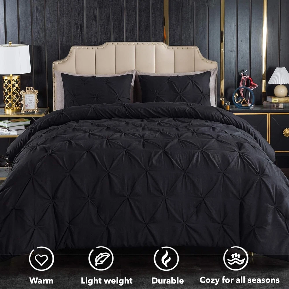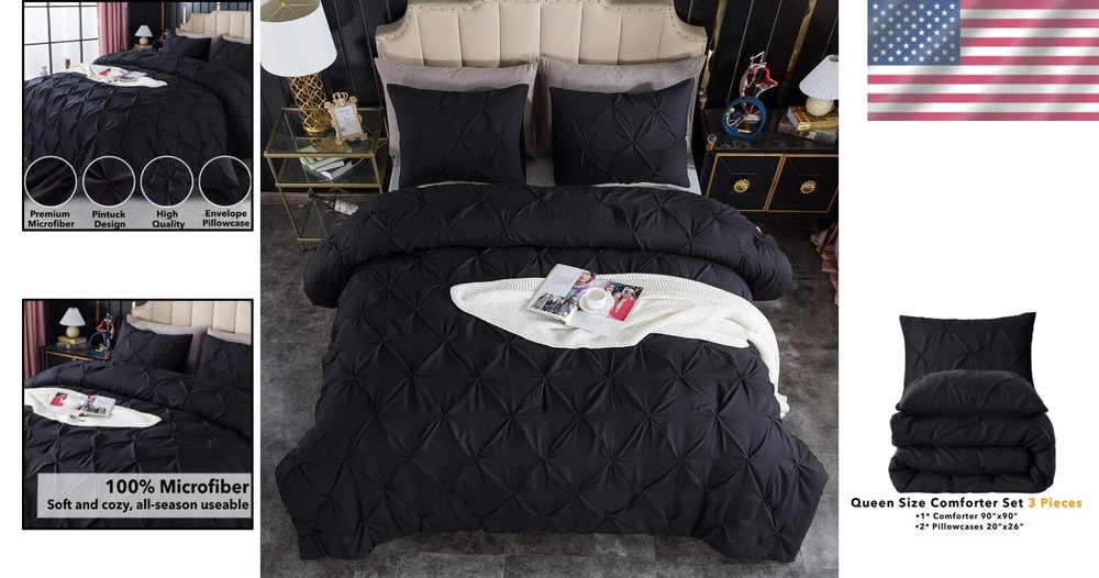 Queen Size Down Alternative Comforter Set - Soft Pinch Pleat Design, Black ‹ › ‹ › ‹ › ‹ › ‹ › ‹ › ‹ › ‹ › ‹ › Queen Size Down Alternative Comforter Set -Soft Pinch Pleat Design, Black Features: Modern and fashionable black pintuck comforter. Decorate your bed and create a lavish, elegant atmosphere in your room. Comforter dimensions: 90x90 inches; includes 2 pillowcases (20x26 inches). Made from high-quality microfiber fabric, known for its extreme softness and coziness. Filled with lightweight down alternative microfiber for optimal warmth and comfort. Handmade pinch pleats for an exquisite, luxurious look. Craftsmanship that ensures the comforter maintains its pristine condition over time. Suitable for all seasons, combining warmth with a lightweight design. Benefits: Transform your bedroom into a serene sanctuary with the elegant pinch pleat design. Perfect balance between style and functionality, making it a timeless addition to your home decor. Ideal gift for special occasions: Anniversaries, Christmas, Birthdays, or any holiday. Crafted to enhance your sleep experience, promoting restful and sound sleep. Quick to revitalize after vacuum packaging; simply shake and stretch for the full effect. Why choose our Queen Size Down Alternative Comforter Set? Indulge in the supreme comfort and luxurious elegance of our Queen Size Down Alternative Comforter Set. The rich black color and modern pinch pleat design bring sophistication to your bedroom, while the ultra-soft microfiber fabric envelops you in cozy warmth. Perfect for any season, this comforter set is more than just bedding; it's an enhancement to your lifestyle, offering both functional beauty and unmatched quality. Elevate your space or surprise a loved one with this exquisite comforter set—your ideal companion for restful nights and stylish mornings. Order yours today! Shipping Free & Fast Shipping - We offer free shipping to most of the USA with a normal delivery time of 3-7 days. However, due to the current situation, additional delivery time (up to 3 weeks) may be required for some items. Alternative Carriers - We may use alternative carriers (e.g. USPS, FedEx, UPS, etc.) to ensure your package arrives safely and on time. Due to the use of multiple carriers, we are unable to provide a tracking number automatically. Handling Time - Orders are processed and shipped within 1-2 business days of receiving cleared payment. Shipping Restrictions - Shipping to Alaska, Hawaii, Puerto Rico, Guam, and other US territories may incur shipping charges or delivery restrictions. Please contact us before ordering, or your order can be refunded/cancelled. State Restrictions - There may be restrictions based on your state of purchase. For example, certain items may not be shipped to California due to state regulations. Contact for Tracking Updates - If you require tracking updates or have any concerns about the delivery of your order, please feel free to contact us, and we will be happy to assist you. Return 30-Day Hassle-Free Returns - We want you to be completely satisfied with your purchase. If you are not, you can return the item within 30 days of receiving it for a full refund or exchange. Easy Return Process - To start a return, simply contact us and we will provide you with a prepaid return shipping label and detailed instructions. Restocking Fee - There are no restocking fees for returns. However, the buyer is responsible for return shipping costs if the return is not due to a seller's error. Refund Processing Time - Refunds will be processed within 5 business days of receiving the returned item in its original condition. Payment We accept all major credit cards, PayPal, and Apple Pay for your convenience. Your payment information is secure and encrypted to ensure a safe and seamless transaction. Please complete your payment within 3 days of purchase to avoid any delays in shipping. Feedback Your feedback is extremely important to us. We strive to provide the best products and customer service possible. If you are satisfied with your purchase, please take a moment to leave us a positive review. If you have any concerns or issues with your order, please contact us before leaving negative feedback. We are committed to resolving any problems and ensuring your satisfaction. Contact Us If you have any questions or concerns, please feel free to reach out to our customer support team. You can contact us through the eBay messaging system. We are available Monday to Friday, 9:00 am to 5:00 pm EST, and we will do our best to respond to your inquiry within 24 hours. Buy it now and enjoy a pleasant shopping experience! UPC: Not Set Model: Queen Comforter Set Set Includes: Comforter,Pillowcase Material: Microfiber Character: Queen Comforter Set Features: Down Alternative,Soft,Cozy Theme: Holidays Care Instructions: Machine Wash Department: Adults Room: Bedroom Labels & Certifications: Not Set Size: Queen Type: Comforter Set Brand: Unbranded Color: Black Fill Material: Microfiber Pattern: Geometric Item Width: Not Set Item Length: Not Set MPN: Not Set Character Family: Not Set Number of Items in Set: 3 Insulation: All Seasons Style: Contemporary Season: All Country/Region of Manufacture: Not Set Closure Type: No Closure Thread Count: 201-400 Drop Length: Not Set GSM (Grams per Square Meter): Below 150 Product Line: Not Set Personalize: Not Set