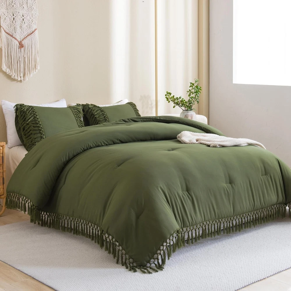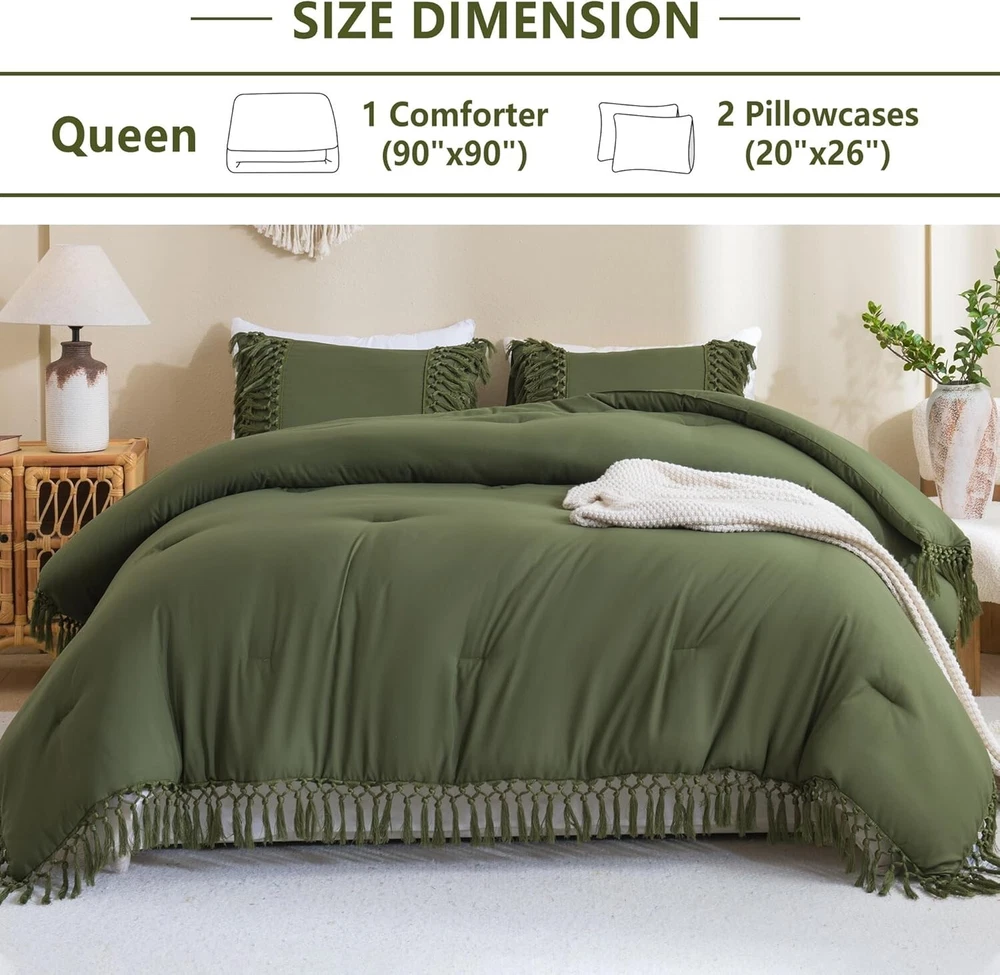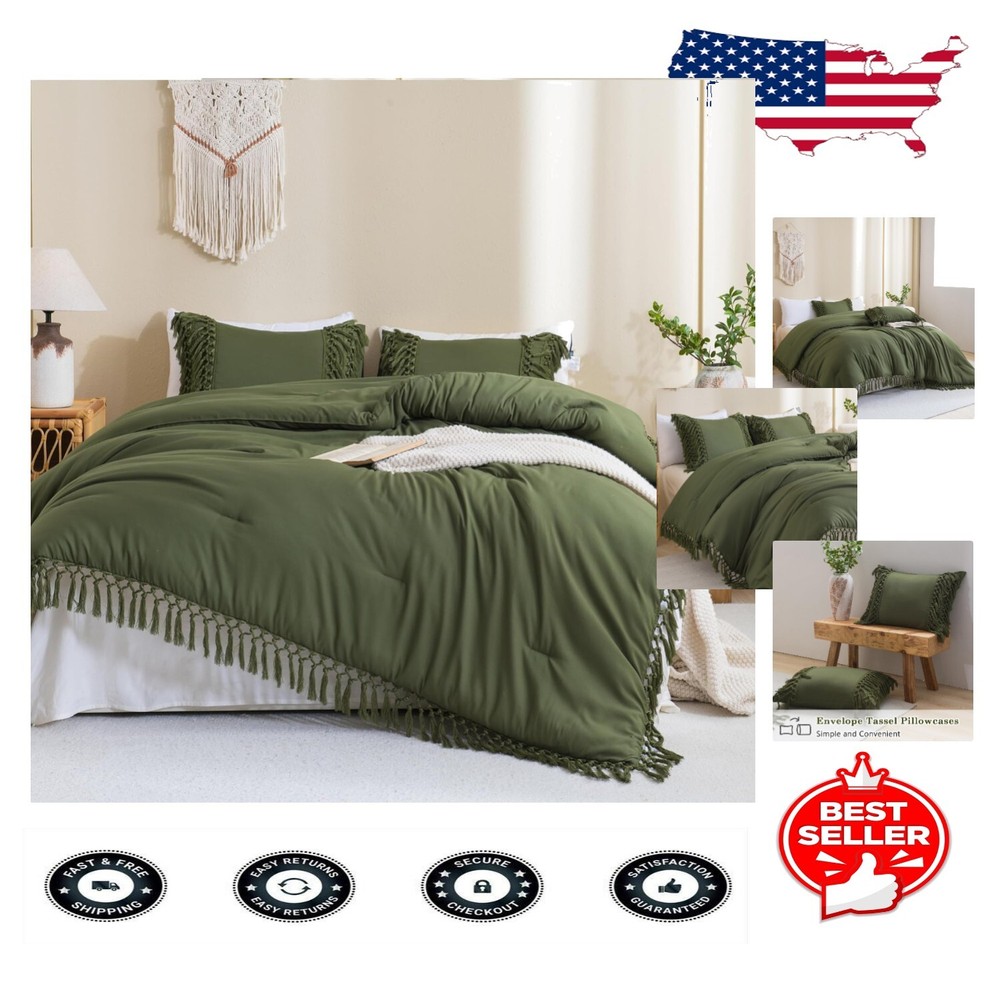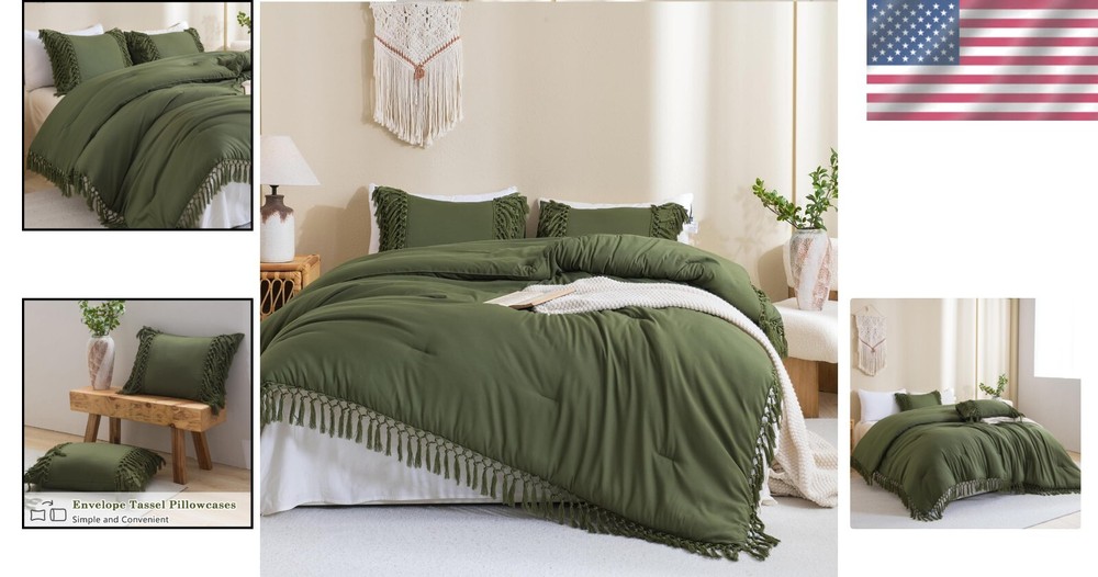 Queen Size Olive Green Tassel Comforter Set - Soft, Cozy, & Stylish Bedding ‹ › ‹ › ‹ › ‹ › ‹ › ‹ › ‹ › ‹ › ‹ › ‹ › ‹ › Queen Size Olive Green Tassel Comforter Set -Soft, Cozy, & Stylish Bedding Vibrant Boho Tassel: Embrace elegance with the tassel comforter set, showcasing: A stunning boho tassel design that radiates charm and sophistication. Handcrafted double tassels on two pillowcases, adding a unique flair to your bedroom decor. Solid colors that seamlessly integrate with any interior design, enhancing your living space. Ultra-Soft for All Season: Designed for comfort, our comforter set features: 100% premium microfiber that grants extraordinary softness and durability. A perfect balance of warmth for winter and coolness for summer, ensuring a restful night's sleep throughout the year. A wonderful gift for loved ones on special occasions, offering them the gift of cozy dreams. Cloud-like Comfort: Indulge in the serene embrace of this comforter set: Premium polyester microfiber filling that provides a fluffy, lightweight comfort without the downward pressure. Experience the sensation of sleeping on a cloud, with hidden stitching that ensures the filling stays perfectly in place. What's Included: 1 Comforter (90"x90") 2 Pillowcases (20"x26") Warm Tips: The comforter arrives vacuum-sealed. For best results, wash and tumble dry on low temperature, or expose to sunlight to refresh its fluffiness before use. Easy Care: Your bed comforter set is designed for convenience: Machine washable on a gentle cycle with cold water for easy maintenance. Air dry or tumble dry on low heat to retain its soft quality, avoiding bleach for long-lasting appeal. Experience Cozy Living: Create a serene sanctuary in your bedroom with the Queen Size Olive Green Tassel Comforter Set. Perfect for year-round use and designed to stay warm and cozy, it promises to be a comforting hug for your bed. Order yours today and redefine your sleep experience! Shipping Free & Fast Shipping - We offer free shipping to most of the USA with a normal delivery time of 3-7 days. However, due to the current situation, additional delivery time (up to 3 weeks) may be required for some items. Alternative Carriers - We may use alternative carriers (e.g. USPS, FedEx, UPS, etc.) to ensure your package arrives safely and on time. Due to the use of multiple carriers, we are unable to provide a tracking number automatically. Handling Time - Orders are processed and shipped within 1-2 business days of receiving cleared payment. Shipping Restrictions - Shipping to Alaska, Hawaii, Puerto Rico, Guam, and other US territories may incur shipping charges or delivery restrictions. Please contact us before ordering, or your order can be refunded/cancelled. State Restrictions - There may be restrictions based on your state of purchase. For example, certain items may not be shipped to California due to state regulations. Contact for Tracking Updates - If you require tracking updates or have any concerns about the delivery of your order, please feel free to contact us, and we will be happy to assist you. Return 30-Day Hassle-Free Returns - We want you to be completely satisfied with your purchase. If you are not, you can return the item within 30 days of receiving it for a full refund or exchange. Easy Return Process - To start a return, simply contact us and we will provide you with a prepaid return shipping label and detailed instructions. Restocking Fee - There are no restocking fees for returns. However, the buyer is responsible for return shipping costs if the return is not due to a seller's error. Refund Processing Time - Refunds will be processed within 5 business days of receiving the returned item in its original condition. Payment We accept all major credit cards, PayPal, and Apple Pay for your convenience. Your payment information is secure and encrypted to ensure a safe and seamless transaction. Please complete your payment within 3 days of purchase to avoid any delays in shipping. Feedback Your feedback is extremely important to us. We strive to provide the best products and customer service possible. If you are satisfied with your purchase, please take a moment to leave us a positive review. If you have any concerns or issues with your order, please contact us before leaving negative feedback. We are committed to resolving any problems and ensuring your satisfaction. Contact Us If you have any questions or concerns, please feel free to reach out to our customer support team. You can contact us through the eBay messaging system. We are available Monday to Friday, 9:00 am to 5:00 pm EST, and we will do our best to respond to your inquiry within 24 hours. Buy it now and enjoy a pleasant shopping experience! UPC: Not Set Model: Not Set Set Includes: Comforter,Pillowcase Material: Microfiber,Polyester Features: Breathable,Lightweight,Easy Care Character: Not Set Theme: Cloud Care Instructions: Machine Wash,Tumble Dry on Low Heat Department: Unisex Baby & Toddler,Kids,Teens,Adults Room: Bedroom Labels & Certifications: Not Set Size: Queen Type: Comforter Set Brand: Unbranded Color: Olive Green Fill Material: Polyester Pattern: Solid Item Width: Not Set Item Length: Not Set MPN: Not Set Number of Items in Set: 3 Style: Bohemian Character Family: Not Set Insulation: All Seasons Season: All Country/Region of Manufacture: Not Set Closure Type: No Closure Thread Count: 200 or Less Drop Length: Not Set GSM (Grams per Square Meter): Below 150 Product Line: Not Set Personalize: Not Set