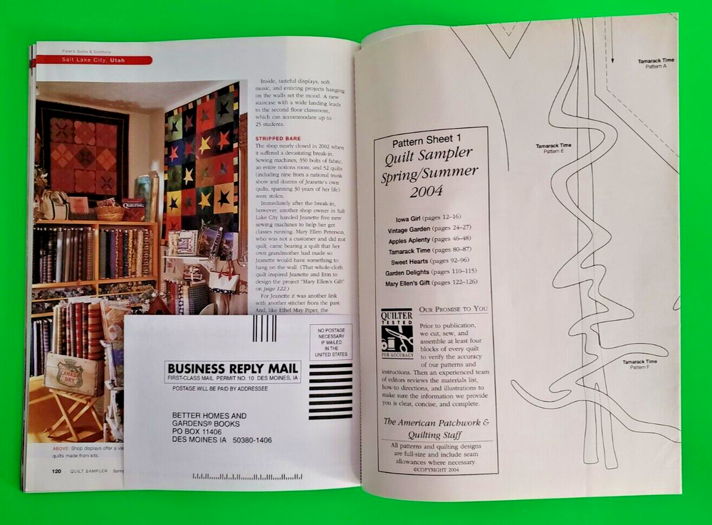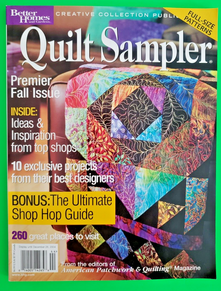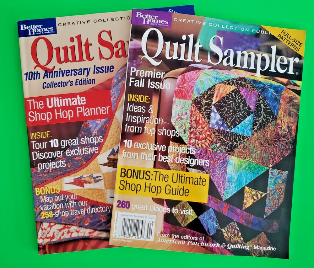 Quilt Sampler Magazine 2004 Lot of 2 Better Homes & Gardens Spring/Summer Fall/Winter Both magazines are in read condition, with minimal wear on covers and edges. Minimal page and cover creasing. Bindings and pages intact. Included patterns still intact and uncut. Please see photos for exact condition. Message if interested in multiple magazine bundles. Lower cost shipping and purchase price available. Additional photos available. Questions are welcome. 30 Day Money Back Returns - Buyer Paid Return Shipping. Combined Shipping Available - Message to Combine Offers before Purchase. Buy It Now can be combined at Check Out by placing all items into Cart. Thanks for looking!
