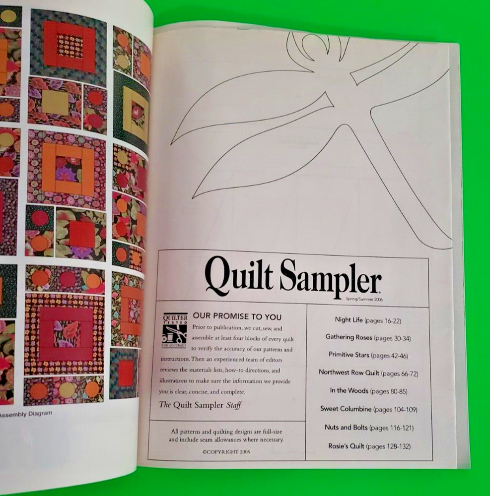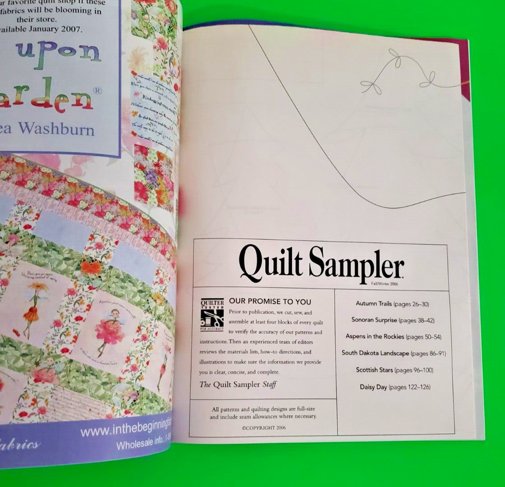 Quilt Sampler Magazine 2006 Lot of 2 Better Homes & Gardens Spring/Summer Fall/Winter Both magazines are in read condition, with minimal wear on covers and edges. Minimal page and cover creasing. Bindings and pages intact. Included patterns still intact and uncut. Please see photos for exact condition. Message if interested in multiple magazine bundles. Lower cost shipping and purchase price available. Additional photos available. Questions are welcome. 30 Day Money Back Returns - Buyer Paid Return Shipping. Combined Shipping Available - Message to Combine Offers before Purchase. Buy It Now can be combined at Check Out by placing all items into Cart. Thanks for looking!