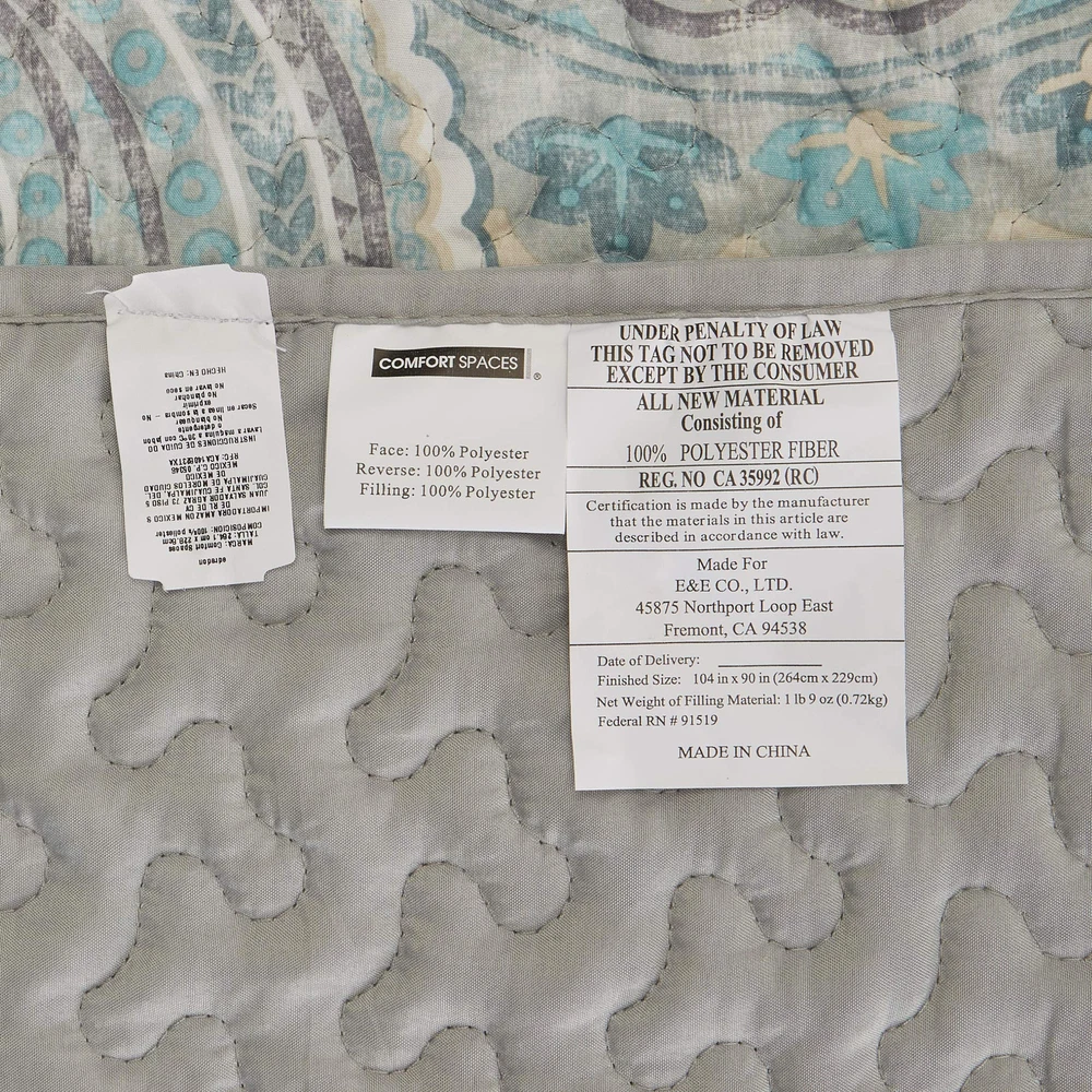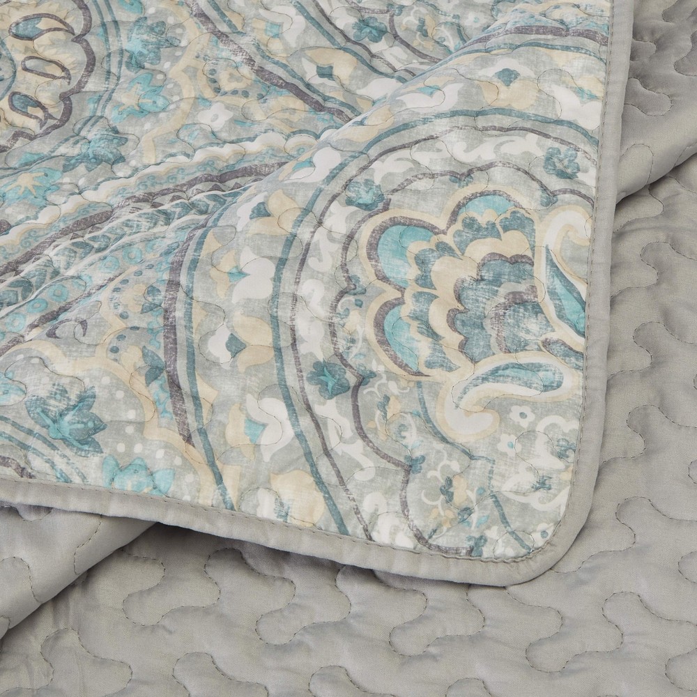 KASHMIR MINI QUILT SET - Add an elegant touch to your bedroom with the Kashmir Mini Quilt Set. The beautiful quilted coverlet features a large paisley print in a soft blue hue with a solid blue reversefor an exquisite look. Matching shams mirror the pattern of the quiltpulling the entire ensemble together. Machine washable for easy carethis ultra-soft microfiber mini quilt set brings style and grace to your space. SERVICE - If you don't absolutely love this productreturn it within 30 days for a full . We'll work with you to resolve any issue and ensure that you're satisfied with your experience. Add an elegant touch to your bedroom with the Kashmir Mini Quilt Set. The beautiful quilted coverlet features a large paisley print in a soft color combination for an elegant design Naturally lightweight fabric perfect for summer use or layer it on for cold weather. Set includes: 1 Coverlet: 104"W x 90"L, 2 King Shams: 20"W x 36"L + 0.5"D Care instructions: machine washable. Material-Polyester