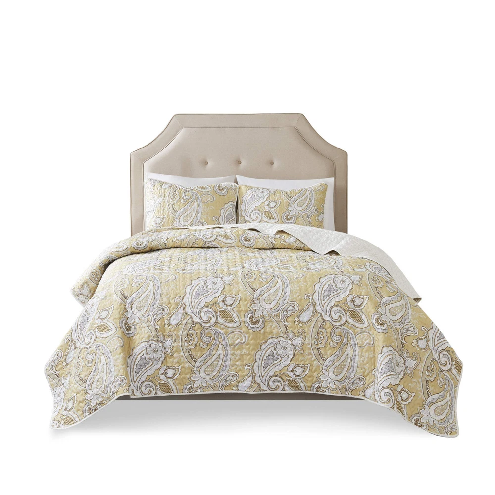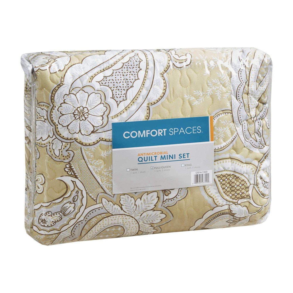 The Sienna Reversible Quilt/Coverlet Set offers an elegant look to match your bedroom décor. Paisley pattern in taupe adorns the face of the quilt and a solid beige reverse complements the top of the bed to copmlete the look. Ultra-soft shams reiterate the designs of the quilt to complete the chic ensemble.SERVICE - If you don't absolutely love this product, return it within 30 days for a full . We'll work with you to resolve any issue and ensure that you're satisfied with your experience. The Sienna Reversible Quilt/Coverlet Set offers an elegant look to match your bedroom décor. Paisley pattern in taupe adorns the face of the quilt and a solid beige reverse complements the top of the bed Ultra-soft shams reiterate the designs of the quilt to complete the chic ensemble. Set includes: 1 Qulit: 104"W x 90"L, 2 King Shams: 20"W x 36"L + 0.5"D Care instructions: Machine Wash