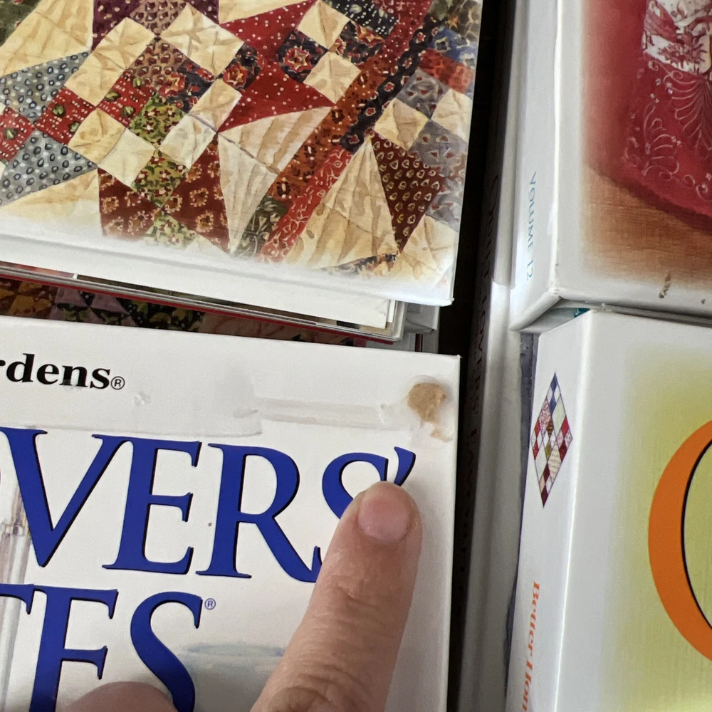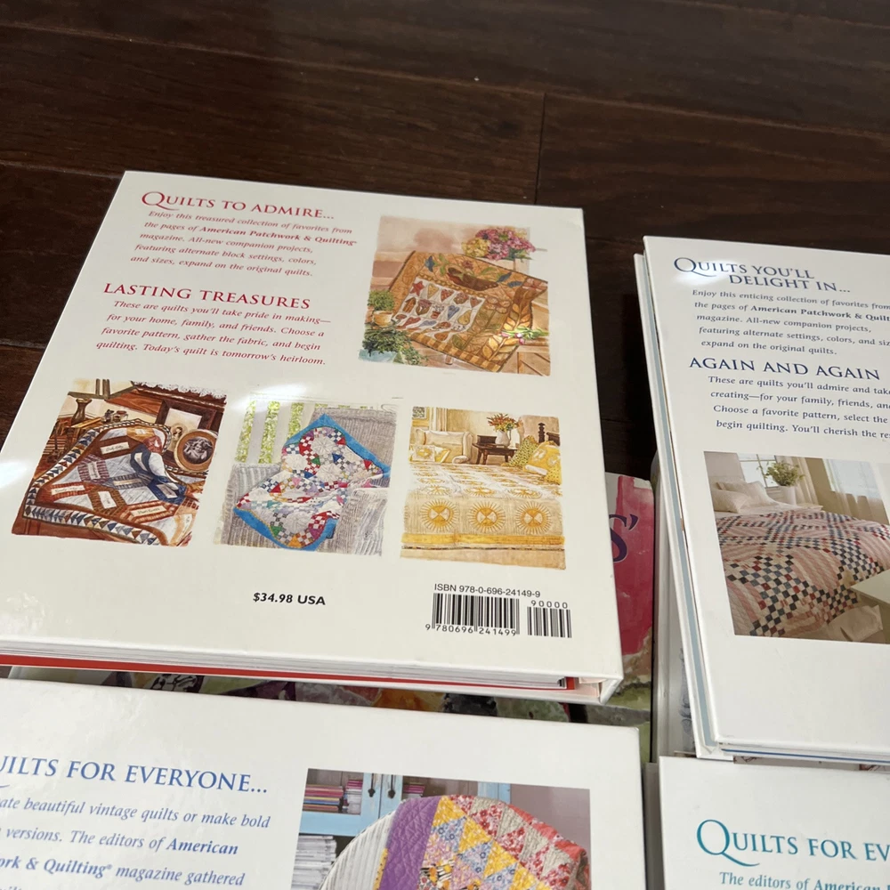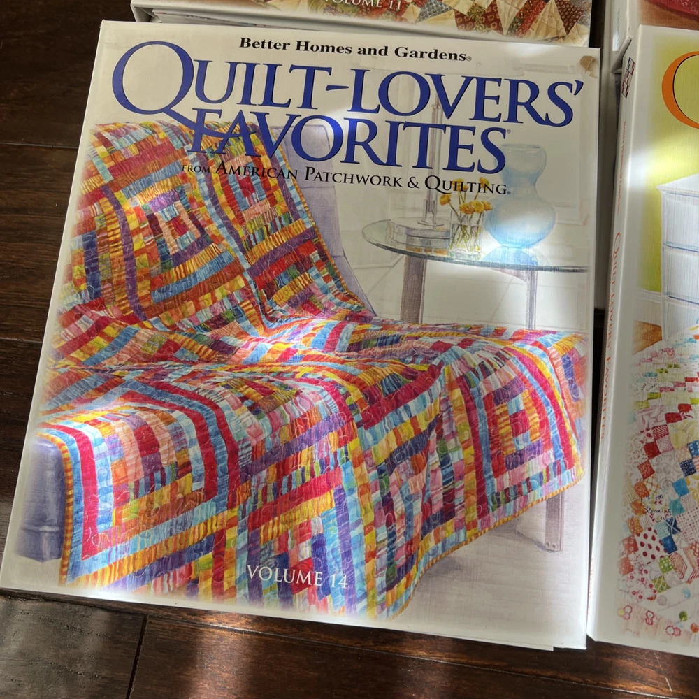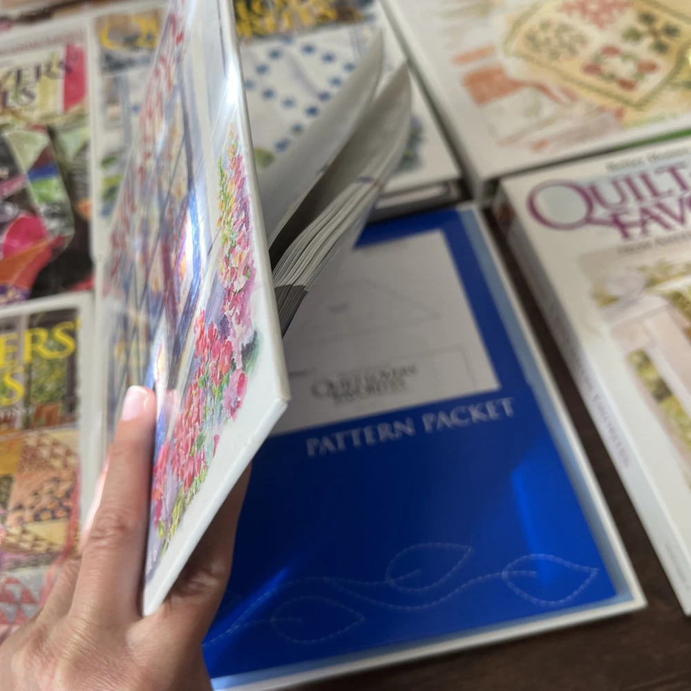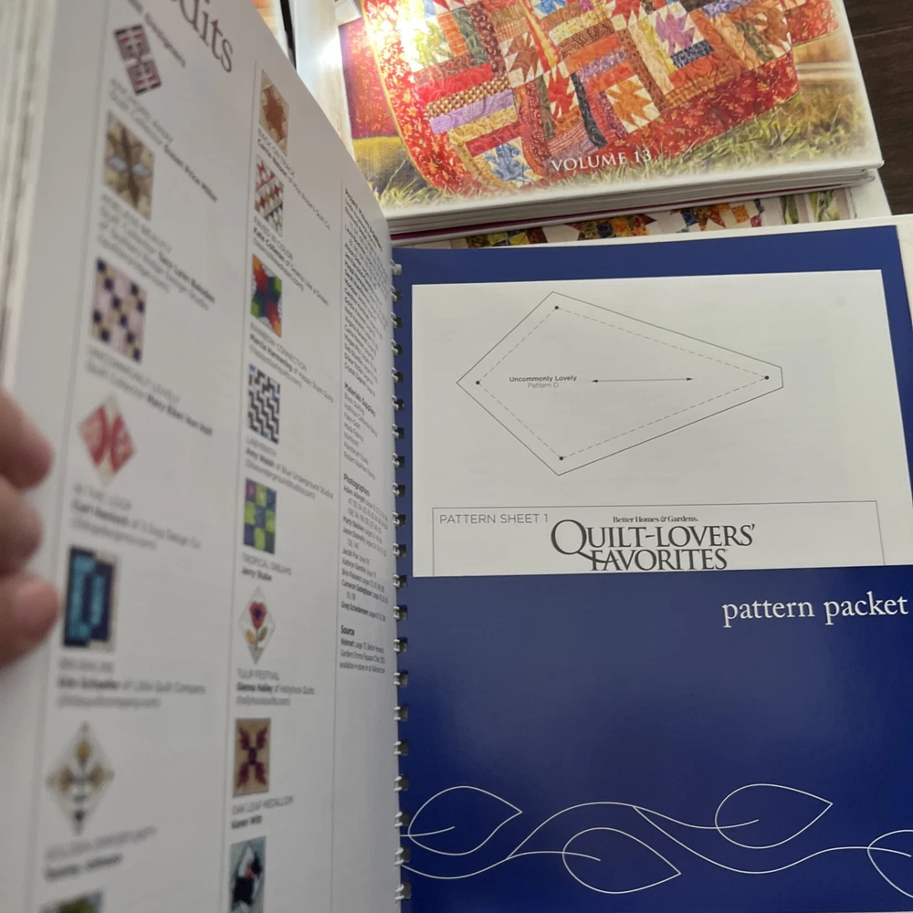 In very good to like new used condition. All with patterns and some with extra inserts like quilt journals. Volumes 1, 2, 4-14, 17, 18.