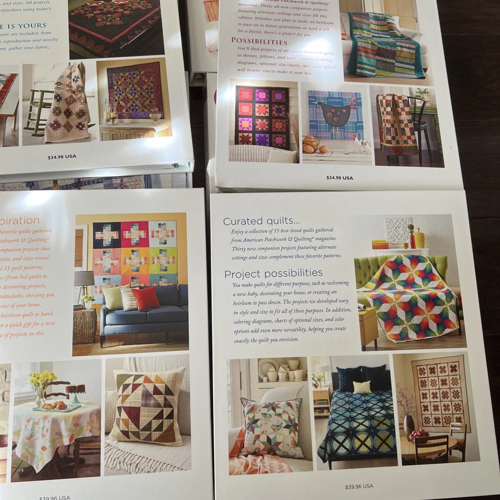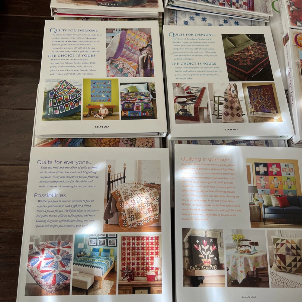 In very good to like new used condition. All with patterns and some with extra inserts like quilt journals. Volumes 1, 2, 4-14, 17, 18....