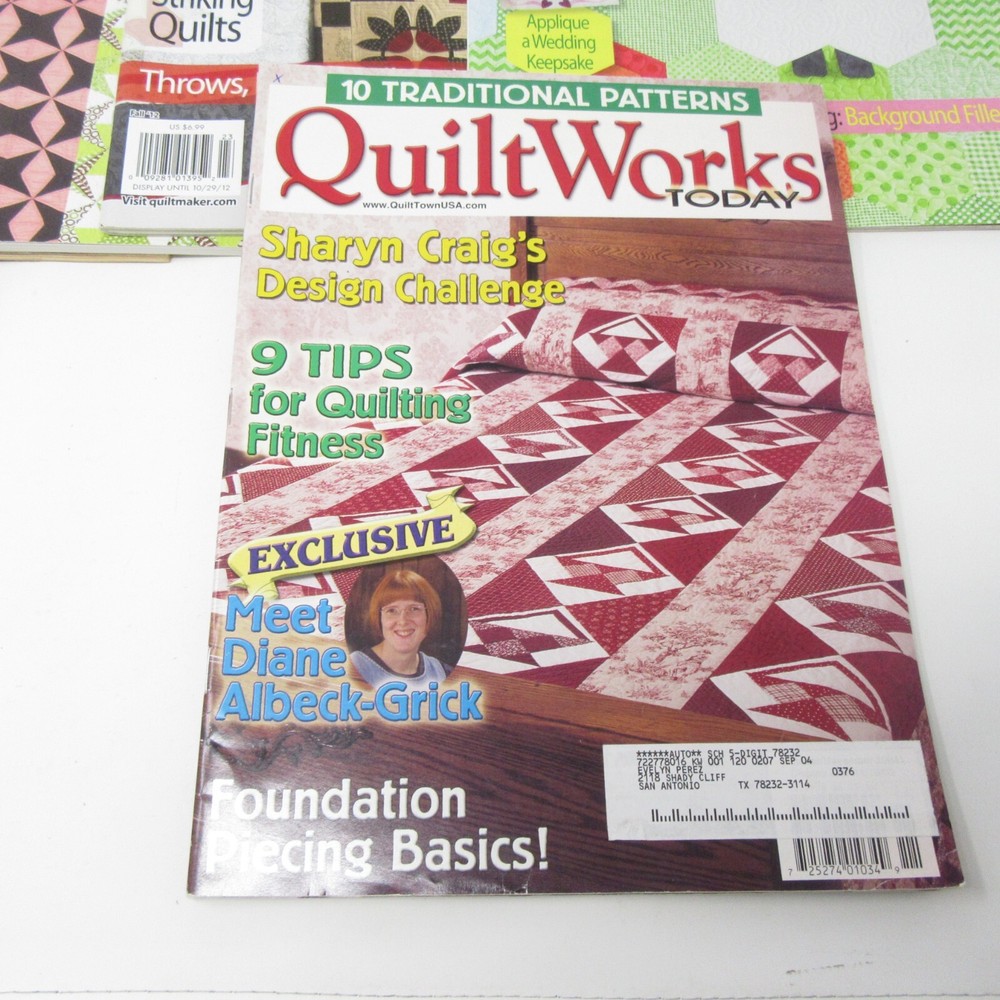 Lot of 9 Quilting magazines. Various titles and various dates. Titles include Fons & Porter's, McCall's, Better Homes & Gardens,, QuiltWorks Today, Quilts & Country Crafts, and QuiltMaker. Magazines may have address labels on the covers and/or minor pen marks. See pictures to evaluate condition.