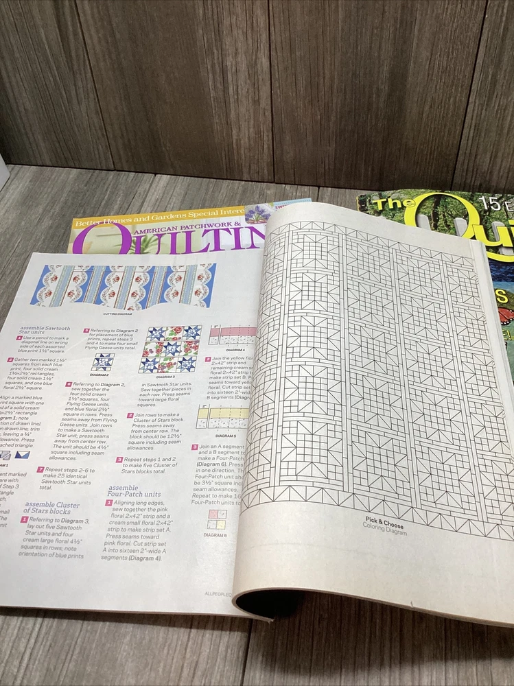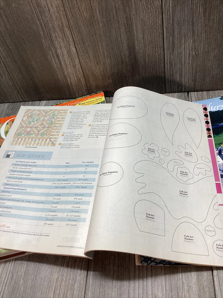 This lot includes a collection of monthly quilting magazines from various publishers, including Better Homes, Quilters Newsletter, and The Quilter. Each issue is filled with beautifully illustrated patterns and informative articles on various quilting topics. The magazines are written in English and were published at different times throughout the year. Whether you're an avid quilter or just starting out, these magazines are a great resource to inspire your next project and improve your skills. Each issue is packed with helpful tips and step-by-step instructions to guide you through each pattern. This lot also includes a subscription option for those who want to continue receiving these informative quilting magazines. Various Publications/Years/Issues/Months/, All the magazines have at least 1 pattern pull out except the Quilters Newsletter Magazine does not have a pull out pattern, no writing or torn pages, some pages may have a fold in some pages or creasing, smoke free home, ships Priority mail and paid orders ship within 24Hrs M-F