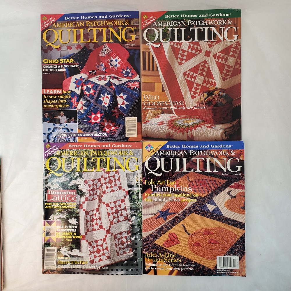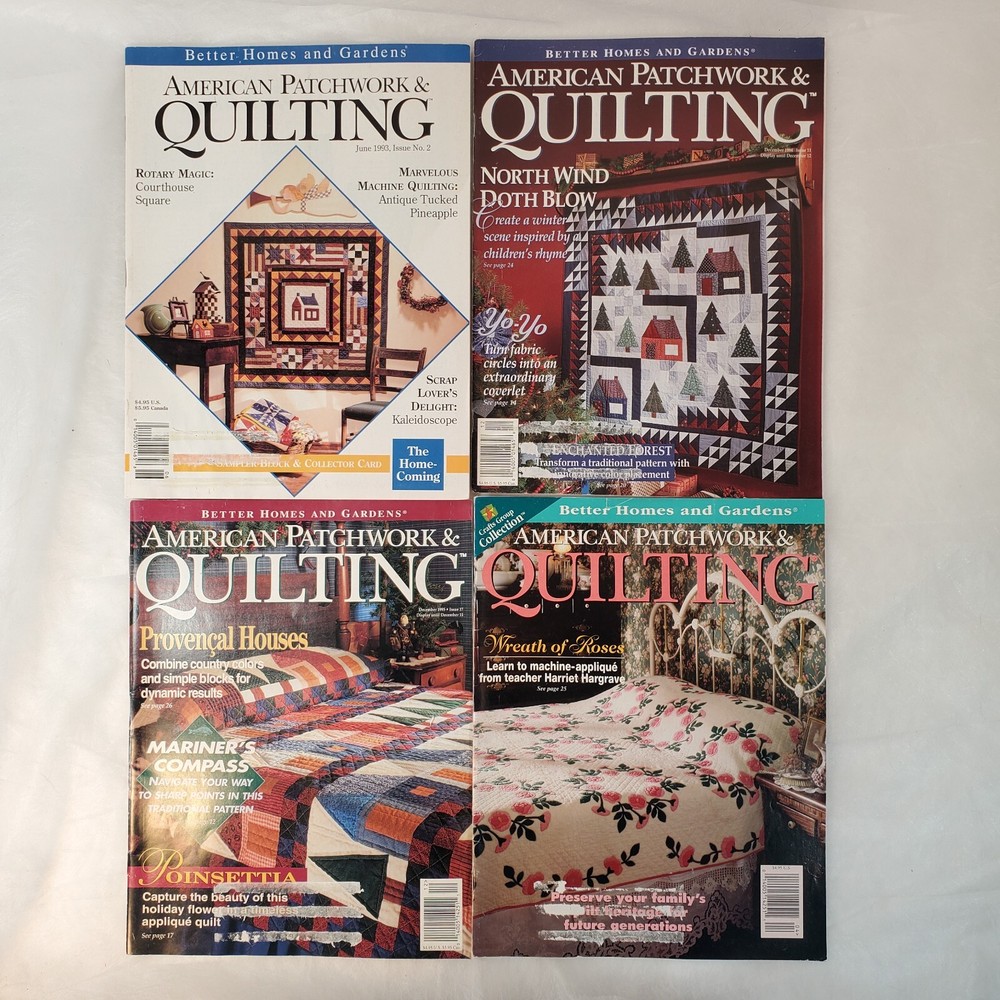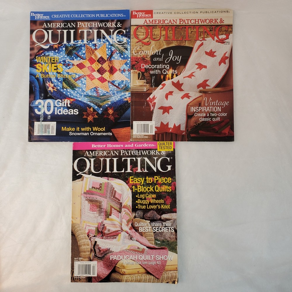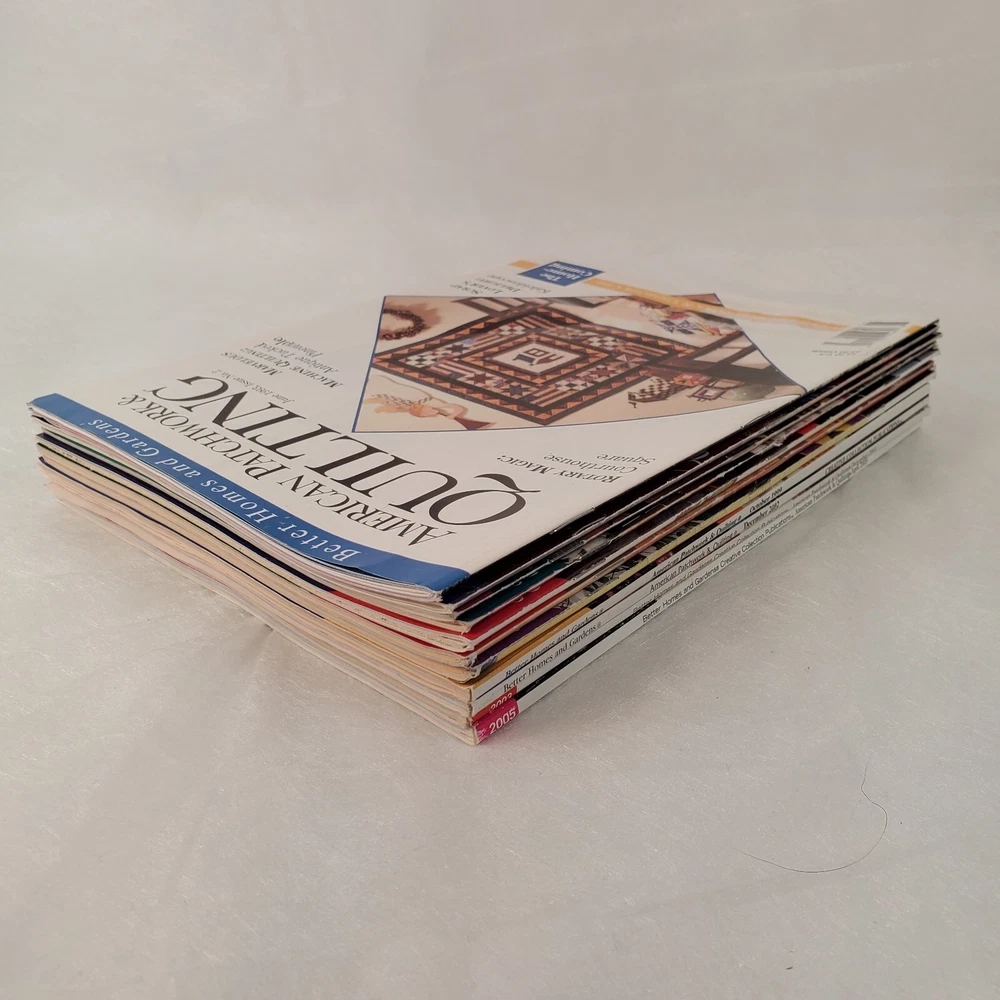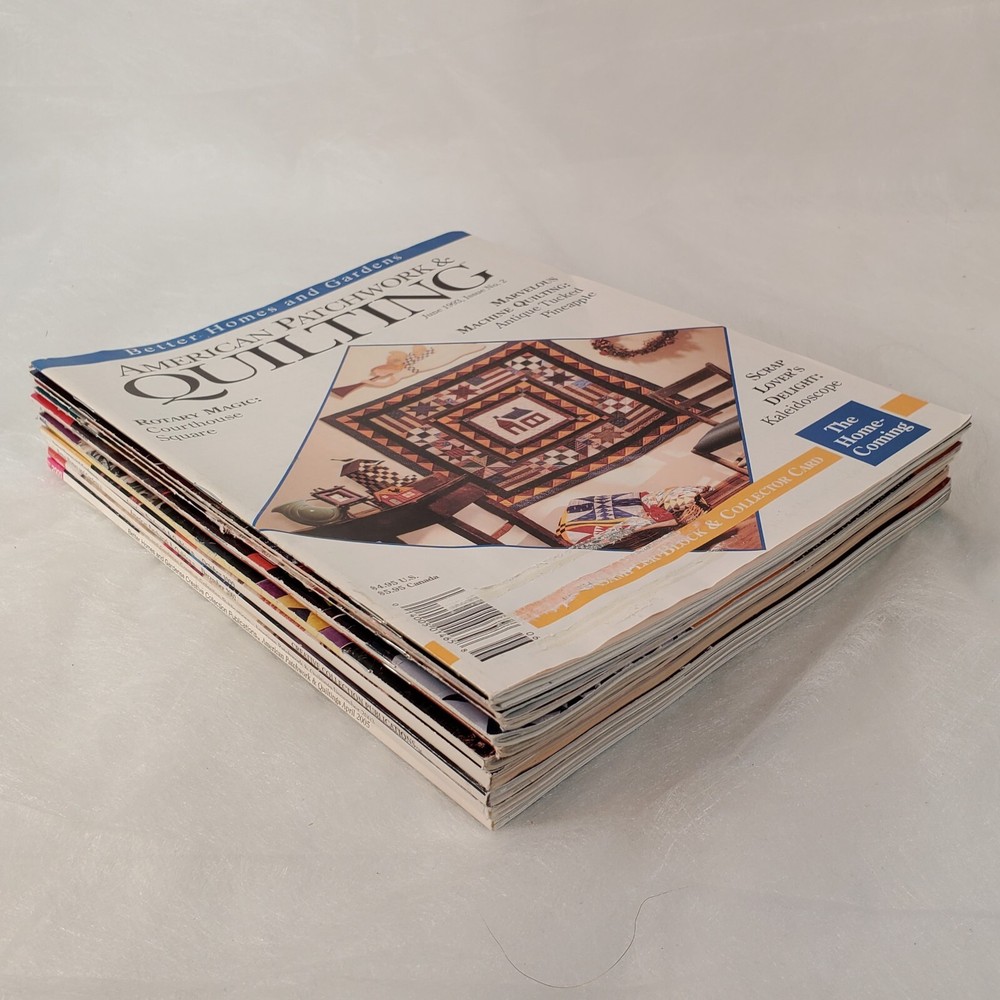 American Patchwork & Quilting Magazines. Lot of 11. Publisher: Better Homes and Gardens. Dates: Range from 1993-2005 Contents: Quilting topics, lessons, illustrations, quilt patterns and more. Some tears and marks. The labels of the previous owner's name and address have been removed so there are some imperfections at those locations.