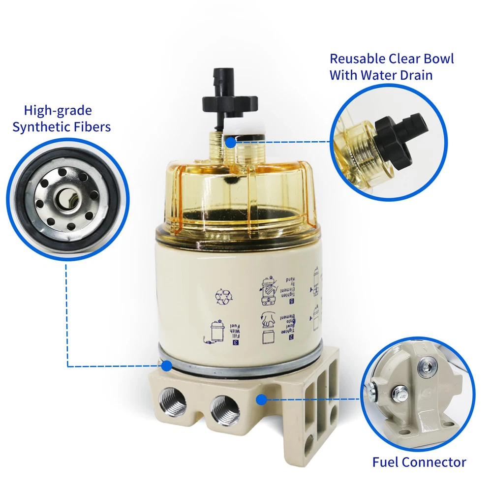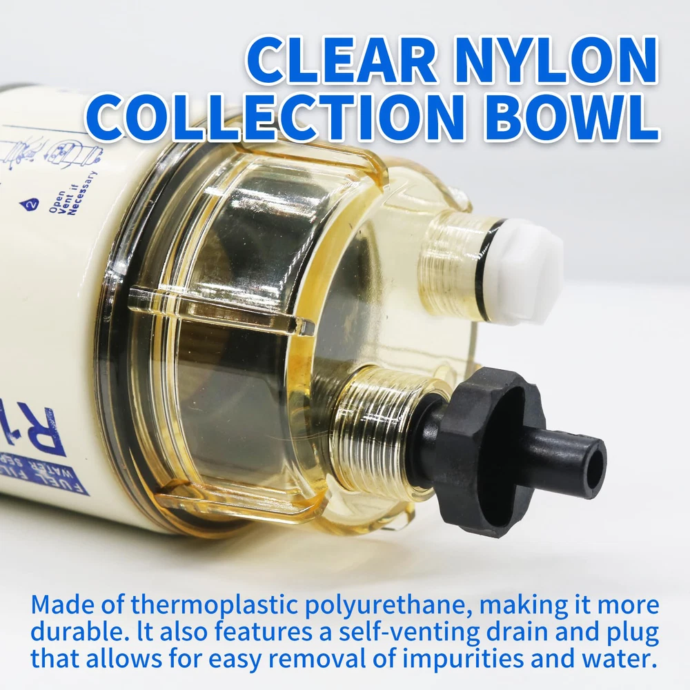 🚤[Replace Part Number]- Replaces R12T, S3240, 18-7947, 187947, 17670-ZW1-030GH, 99105-20006, 9-37812, 17670ZW1030GH, 9910520006, 937812, 120RRAC01, 120RRAC02, 120R-RAC01, 120R-RAC02. Please confirm your model number before purchasing. 🚤[Versatile Applications]- This fuel filter water separator kit is perfect for a variety of universal fuel applications. It is mostly used on outboard marine engines, but can be used in any application that requires high-quality filtration such as tractors, skid steers loaders, movers. 🚤[Improve Performance]- The fuel filter features original Italy 3 layers filter paper made of synthetic fiber that filters out impurities in the fuel and protects the fuel pump nozzles, cylinder liners, and piston rings. This greatly reduces wear and tear and fuel consumption. Regular replacement of these filters is necessary to maintain desirable performance and efficient fuel economy. 🚤[Easy Installation]- It is a plug-and-play, direct fit replacement. Please always pre-fill clean fuel on the dirty side of the filter without opening the fuel cap. Do not reuse the old filter, as it can cause great damage to the engine. After installing the new filter, prime and start the engine, wait a few minutes, and then check for leaks.