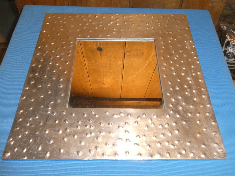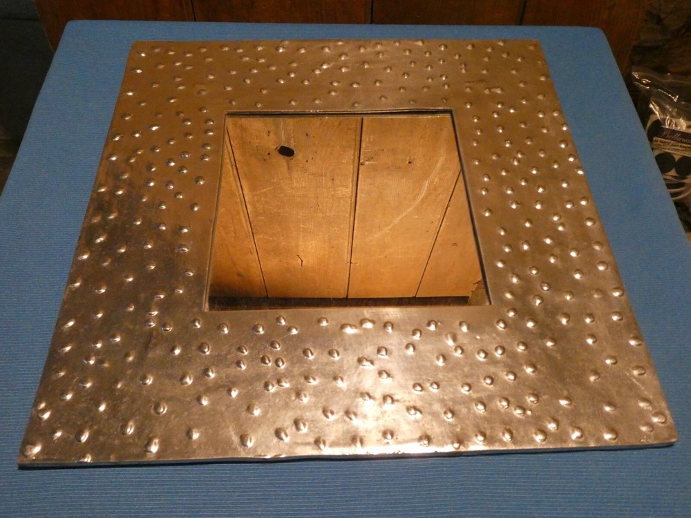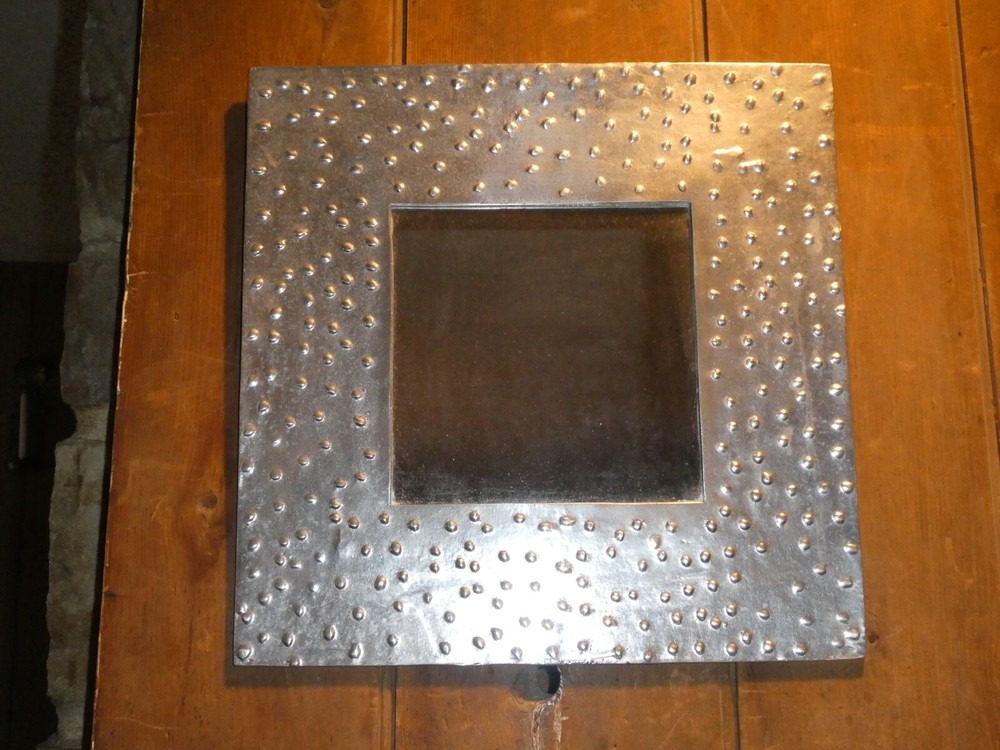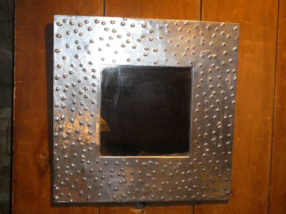 RARE STRAY DOG DESIGN IMPORTS HEAVY CAST ALUMINUM FRAME WALL MIRROR ABSTRACT MODERNISTIC. thick solid frame measures 17 1/2'' x 17 1/4'' and the mirror area measures 8 3/4'' square. this is an awesome looking piece and will look outstanding on that right spot on the wall,