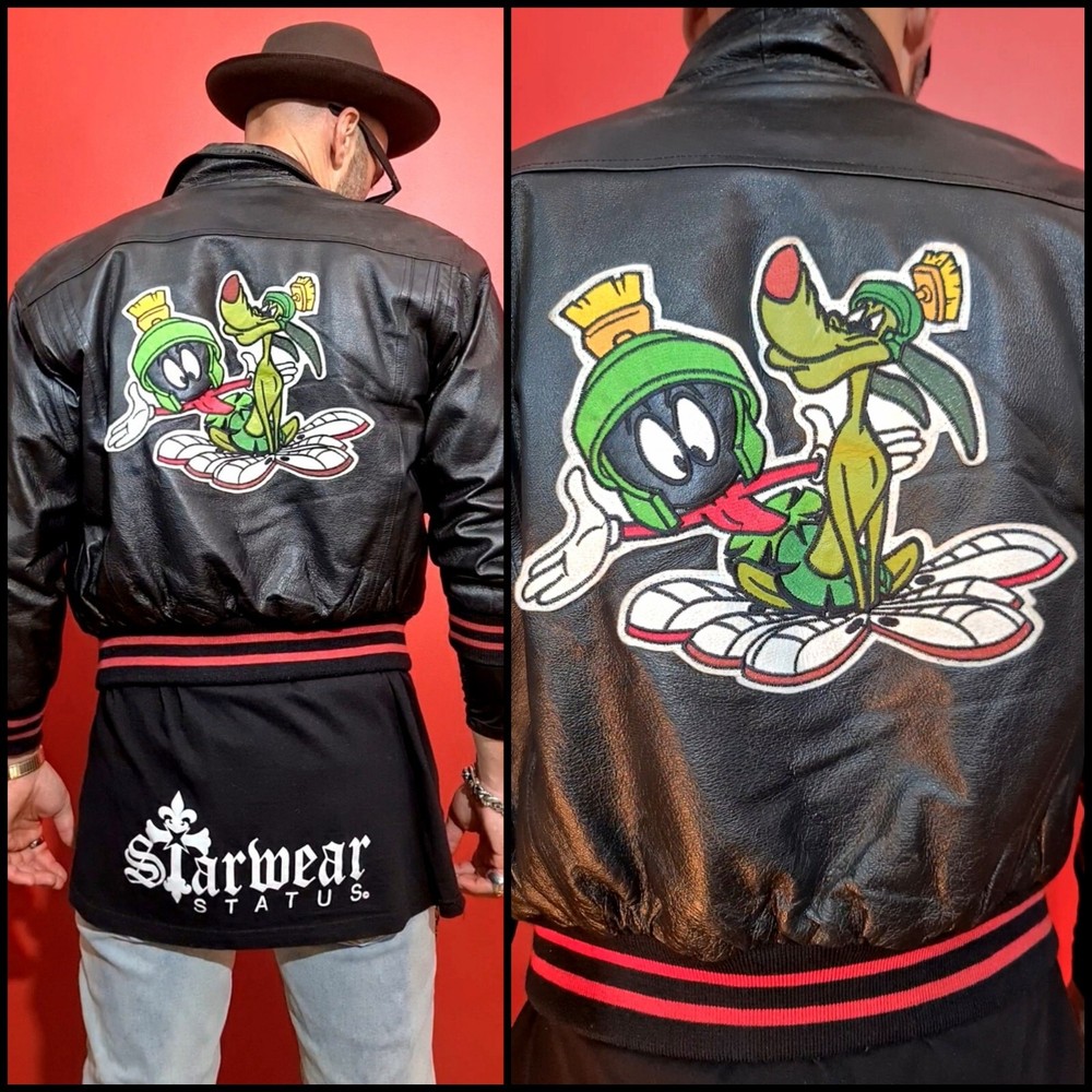 ☆ CONGRATULATIONS YOU FOUND US! • Our Pieces Are Loved Exclusively By Celebrities & High Fashion Enthusiasts Around The Globe! This Is Another Piece Fit For The True Collector Or STAR Performer (Get Ready To Turn Heads!) ☆ The Starwear Status Treasure Chest Has Creaked Open Once Again, With The RAREST OF THE RARE From Our Starwear Status Collections You Never Know What You Might Find! Keep checking back before the Vault Closes once again.. *INCREDIBLE & ONE OF A KIND!!* '. - THIS IS AN ORIGINAL VINTAGE 90'S PIECE! 1990'S MARVIN THE MARTIAN " LEATHER VARSITY JACKET SIZE "SMALL" (FITS WOMEN'S MEDIUM/LARGE COMFORTABLY) - Accompanied By Starwear Status 'COA' - Certificate Of Authenticity! Condition: VERY WELL Looked After! (Impressive For a Jacket 30+Yrs Old!!) MINT! ▪︎ FIT'S WOMEN'S MED/LRG - Capturing that stylish oversized look perfectly!) Backed by Elastic Cuffs & Waistband Flexibility for a Tailored Fit in the right places! ▪︎ AN INVESTMENT STATEMENT PIECE - COMPLETE WITH CERTIFICATE OF AUTHENTICITY. ▪︎ THIS COLLECTIBLE JACKET WILL CONTINUE TO RISE IN VALUE UNLIKE REGULAR DESIGNER BRAND FASHION. IT'S A STEAL AT THIS PRICE! Details Breakdown: Men's Size: Small (Fits Adult's Unisex Sizing) - Elastic Cuffs and Waistband Flexibility for a tailored fit! Brand: Looney Tunes. (This is an Exclusive Vintage Designer Piece!) Material: 100% Genuine Leather. Condition: VERY WELL Looked After! MINT! (Impressive For a Jacket 30+Yrs Old!!) Era: 1990's. Closure & Pockets: Zip-Up & Snap Button Closure. w/ x2 Exterior Pockets + x1 Interior Pocket. Accompanied By Starwear Status 'COA' (Certificate Of Authenticity!) – Our Certificate of Authenticity is presented with an embossed Starwear Status Certified Metallic Sticker which preserves the Authenticity of these truly unique vintage designer collectibles and celebrity owned entertainment pieces. Reputation : Our Pieces Are Loved Exclusively By Celebrities & High Fashion Enthusiasts Around The Globe! This Is Another Piece Fit For The True Collector Or STAR Performer (Get Ready To Turn Heads!) Starwear Status Is An Exclusive Enterprise Designed To Fuel High-Fashion Enthusiasts & Celebrities In Search For The INCREDIBLE! From Our Array Of Celebrity Wardrobe Pieces, To Our Exclusive Vintage Designer Range We Cater For – Red Carpet VIP Events, Music Videos, Next Level Fashion Shoots & Anything That Will Suit Your Fashion Lifestyle Needs. POSTAGE: (PREMIUM “ DHL EXPRESS ” INTERNATIONAL POSTAGE!) FULL ONLINE TRACKING PROVIDED SO YOU KNOW WHERE YOUR PACKAGE IS AS IT TRAVELS TO YOU! (3-5 DAY DELIVERED!) PLEASE FEEL FREE TO CONTACT WITH ANY QUESTIONS OR QUERIES. BROUGHT TO YOU BY STARWEAR STATUS (STARWEARSTATUS.COM) "EXCLUSIVE FASHION AND CELEBRITY WARDROBE SPECIALISTS."
