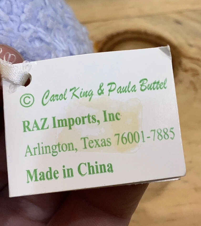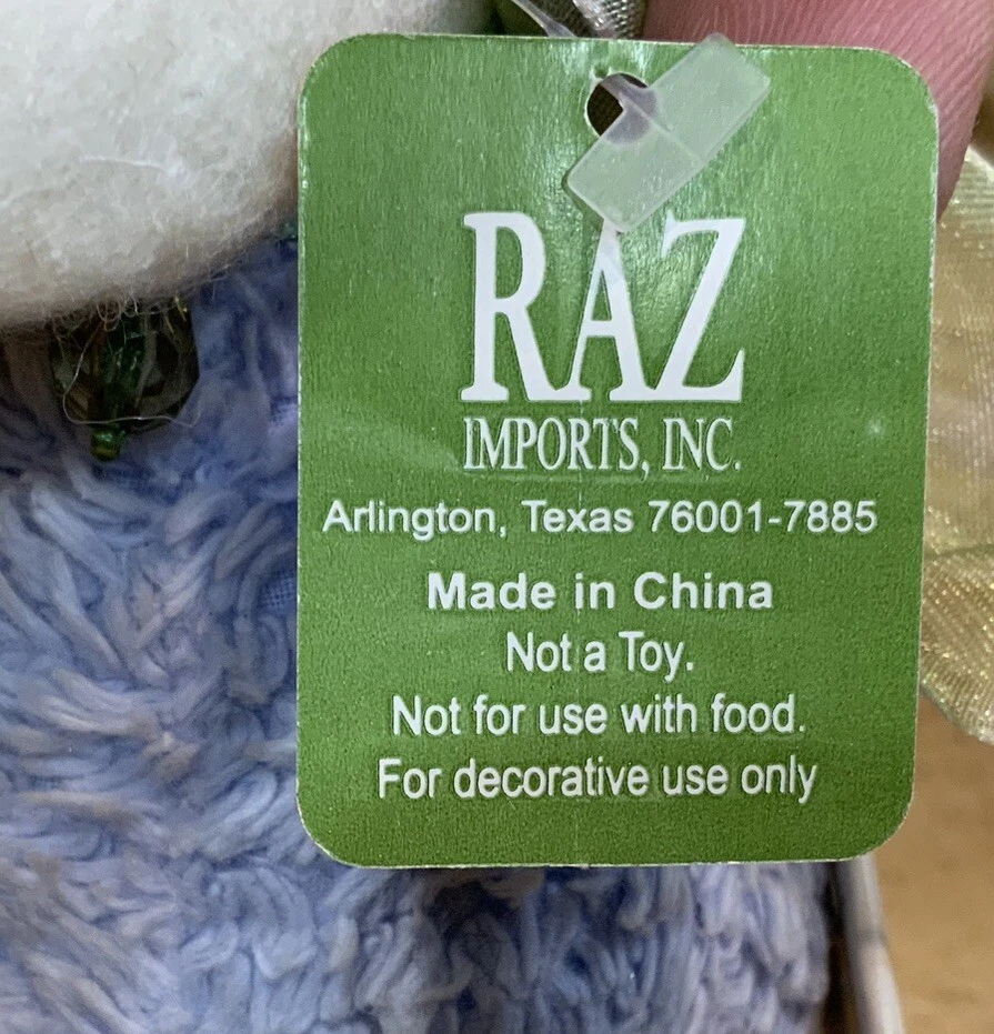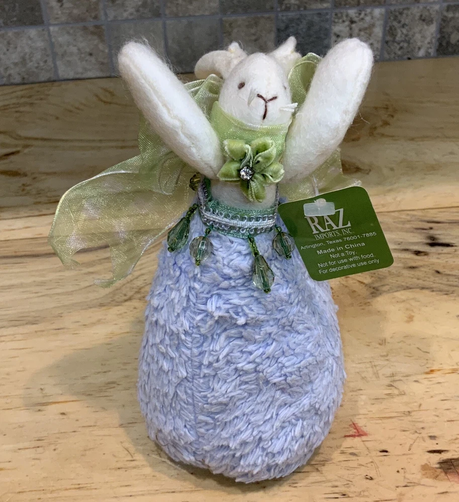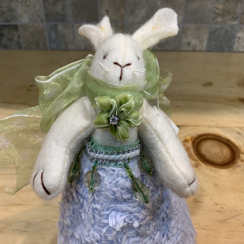 Add charm and elegance to your springtime decor with this RAZ Imports Easter bunny by designers Carol King & Paula Buttel. This plush figurine features a soft lavender base, delicate beaded embellishments, and a whimsical handcrafted style. Details: • Brand: RAZ Imports • Designers: Carol King & Paula Buttel • Material: Mixed media – plush body with beaded accents & rhinestone • Color: Lavender body, white bunny, green ribbon collar • Size: Approx. 6.5” tall • Style: Cottagecore, vintage-inspired Easter/spring decor • Original hang tag attached • Ideal for Easter centerpieces, shelf decor, or seasonal gifting Condition: Excellent condition with original tag. Clean and free of damage.