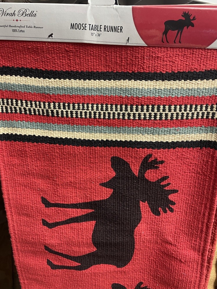 REGAL COMFORT Moose Red TABLE RUNNER. 1 00 % cotton Moose Red 1 5” x 36” m achine Wash Tumble Dry Condition is New with tags. Shipped with USPS Priority Mail....