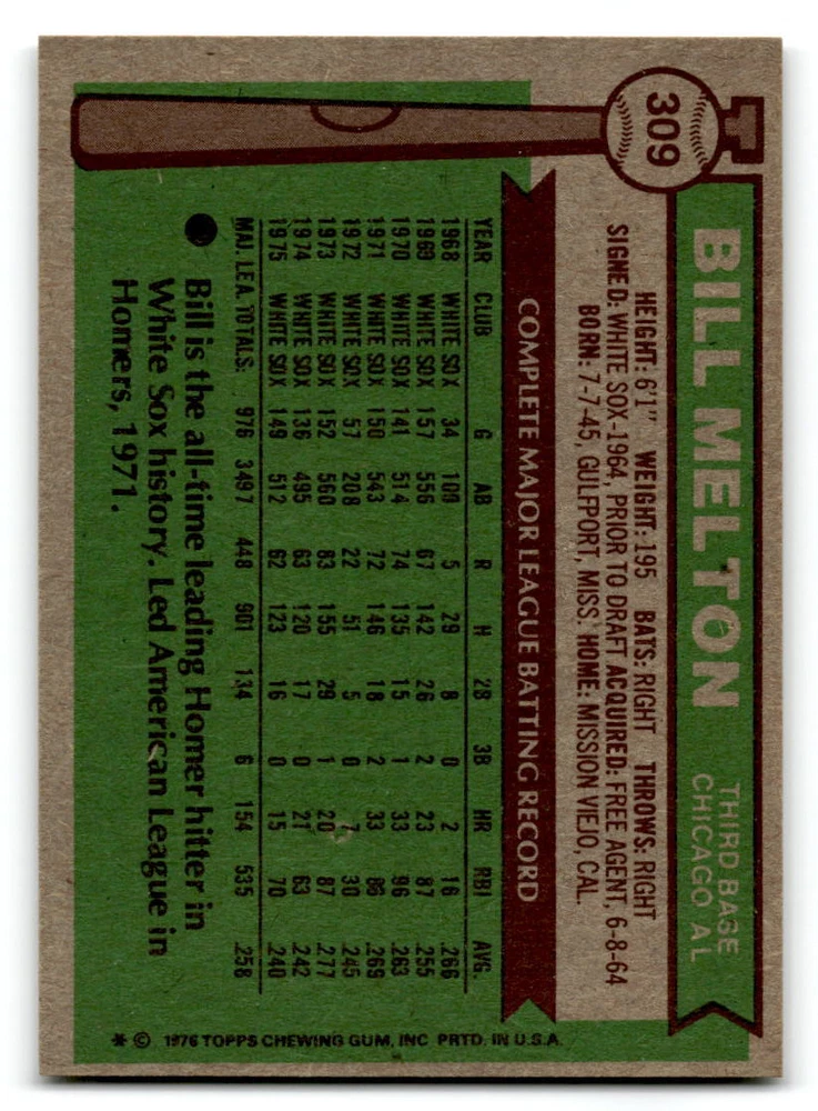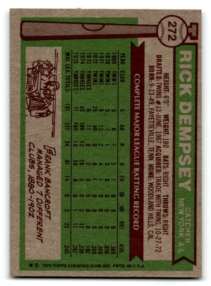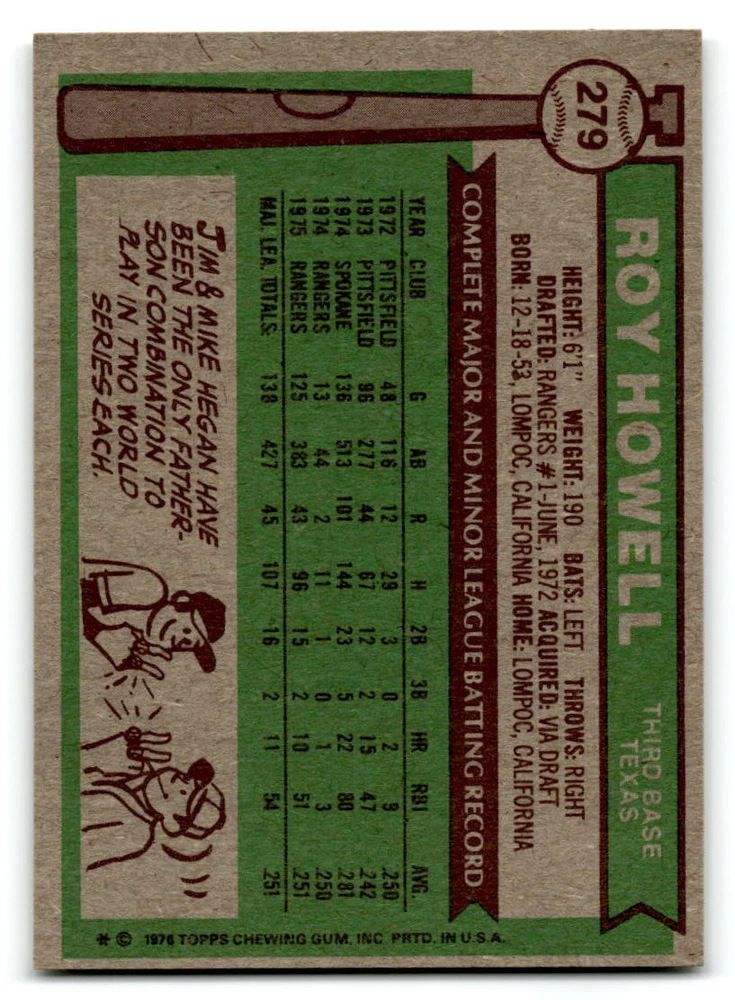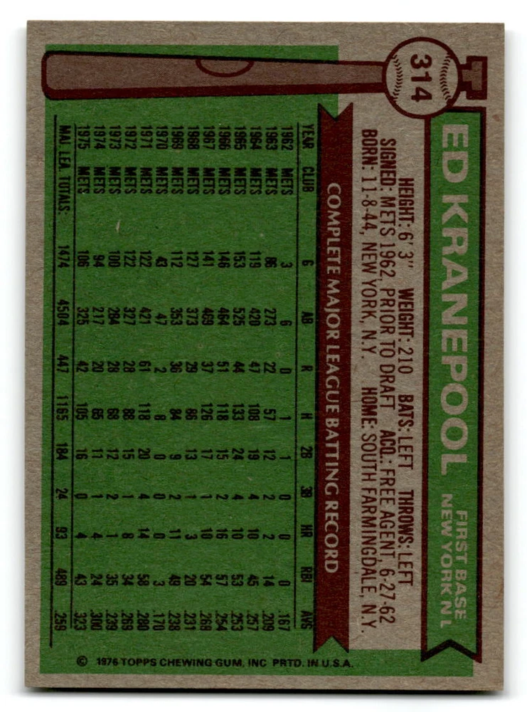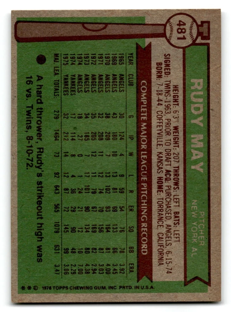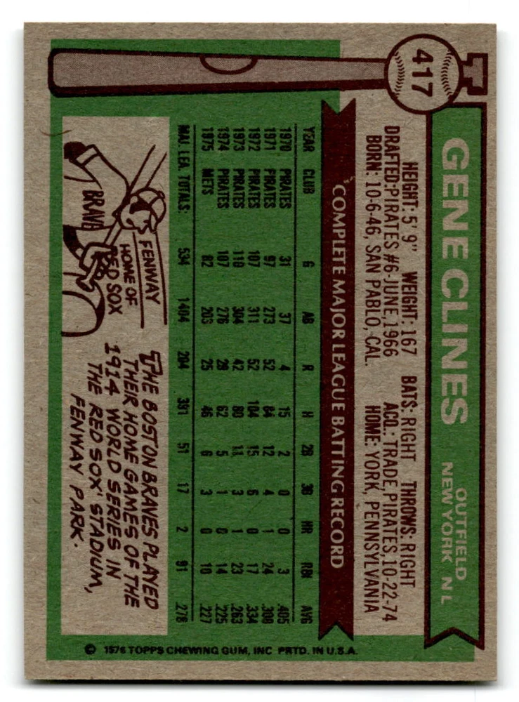 Hello, This listing is for single cards from the 1976 Topps Baseball Set. The cards are in EX/MT to NM unless there is a grade next to the name. I also have noted if the card has wax on the card (front of the card, none of the cards have wax stains on the back). I have generically graded all wax cards as a VG. If there is a card in VG with no notes saying there is wax, then there is damage to the card. The card in the picture is the card you will receive! There are lots of pictures with lines on the cards, that is from my scanner. There are no lines on any of the cards!! Grading: NM = 7 EX/MT = 6 EX = 5 VG/EX = 4 VG = 3 G = 2 Shipping: 1st card costs $1.00 using eBay Standard Envelope and .50cents for each additional card. If you buy 7 cards or more, the shipping cost is $4 for Ground Advantage (just check the boxes for Ground Advantage in the check out and no matter how many cards you are buying the cost will be $4 max! When buying 7 cards, they will be shipped in a padded envelope or box. (Ground Advantage or Priority Mail for larger orders) The last thing I am trying to do is make a profit off of Shipping. When using eBay Standard Envelope, I will put up to 2 cards in 1 top loader to ship. Unfortunately that is the max I can put in a top loader because of the thickness of these cards. I can fit 3 top loaders in one started letter sized envelope. If you have any questions about shipping please don't hesitate to ask.