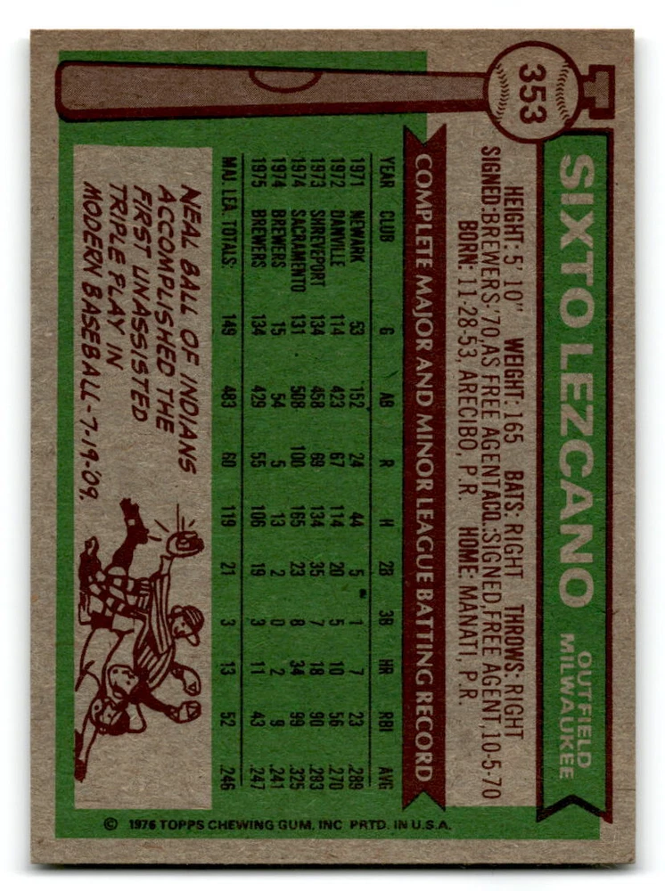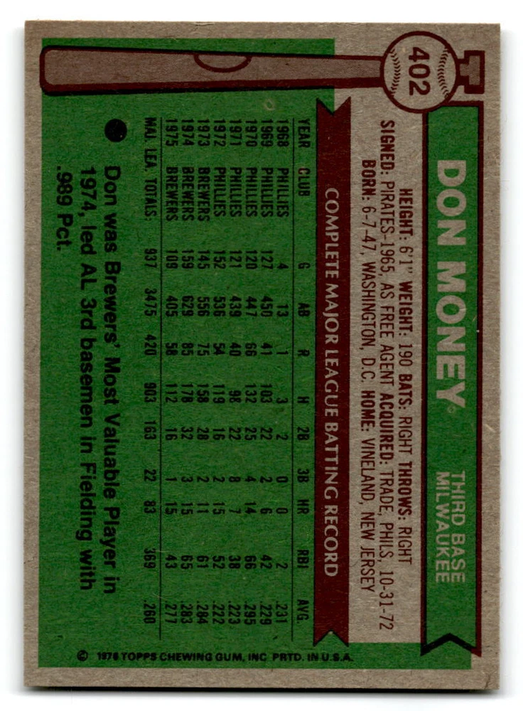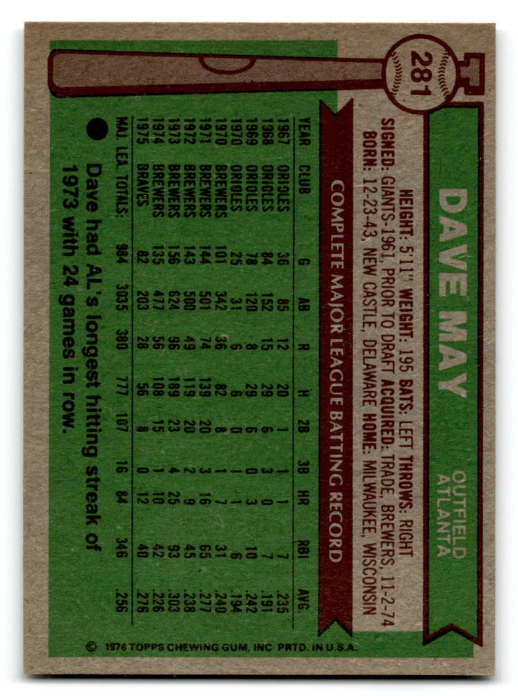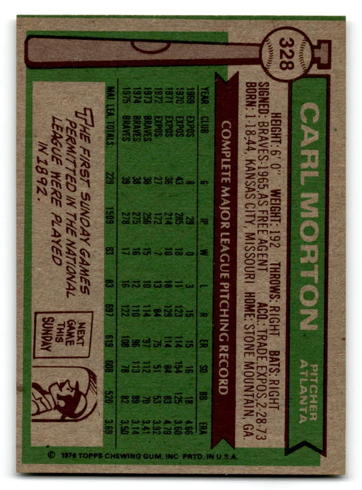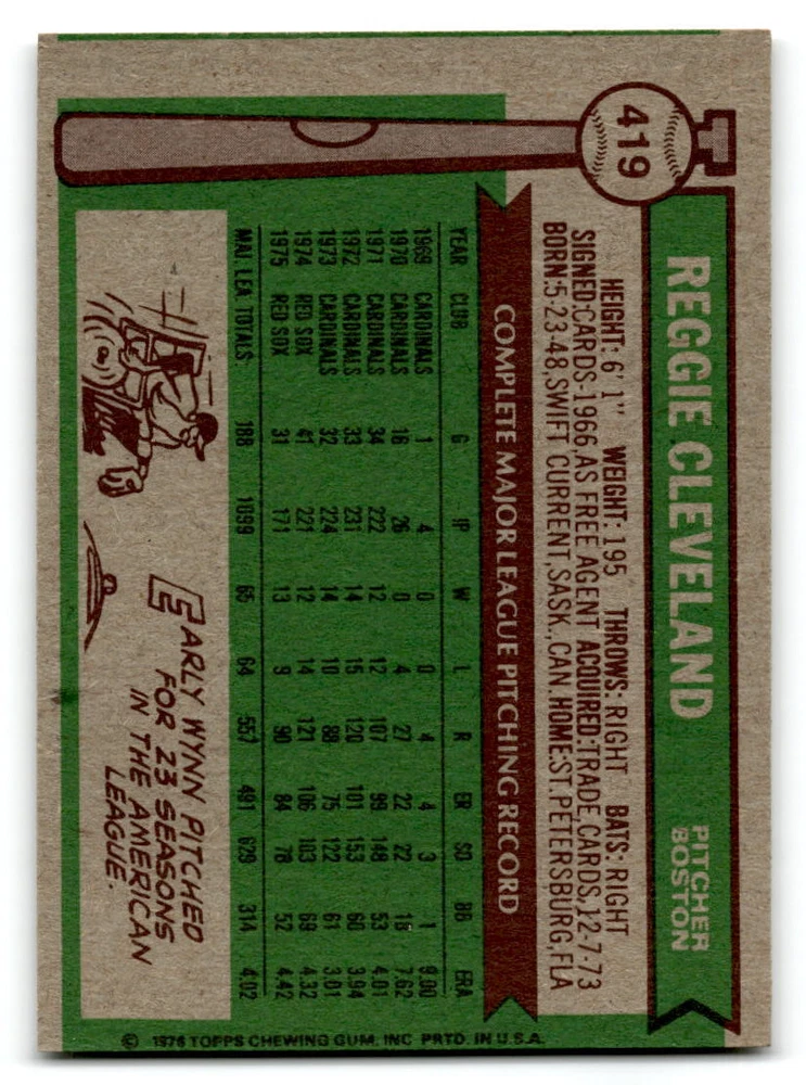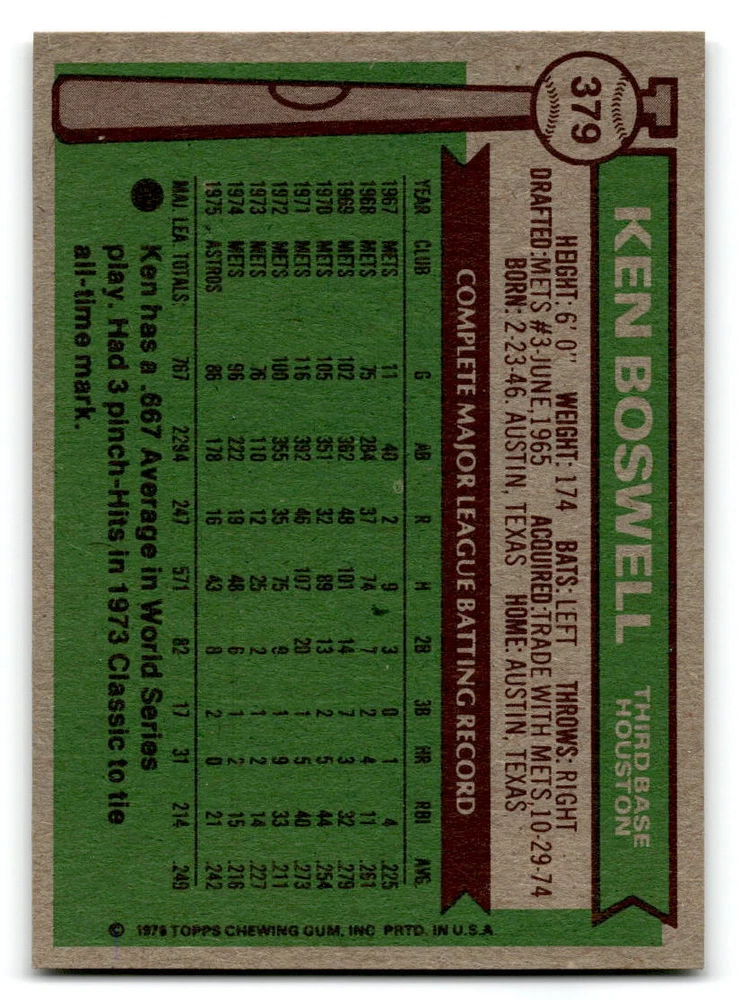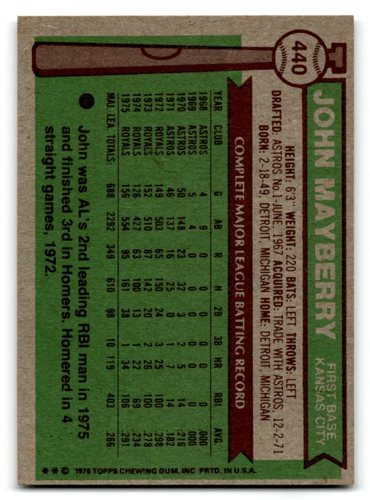 Hello, This listing is for single cards from the 1976 Topps Baseball Set. The cards are in EX/MT to NM unless there is a grade next to the name. I also have noted if the card has wax on the card (front of the card, none of the cards have wax stains on the back). I have generically graded all wax cards as a VG. If there is a card in VG with no notes saying there is wax, then there is damage to the card. The card in the picture is the card you will receive! There are lots of pictures with lines on the cards, that is from my scanner. There are no lines on any of the cards!! Grading: NM = 7 EX/MT = 6 EX = 5 VG/EX = 4 VG = 3 G = 2 Shipping: 1st card costs $1.00 using eBay Standard Envelope and .50cents for each additional card. If you buy 7 cards or more, the shipping cost is $4 for Ground Advantage (just check the boxes for Ground Advantage in the check out and no matter how many cards you are buying the cost will be $4 max! When buying 7 cards, they will be shipped in a padded envelope or box. (Ground Advantage or Priority Mail for larger orders) The last thing I am trying to do is make a profit off of Shipping. When using eBay Standard Envelope, I will put up to 2 cards in 1 top loader to ship. Unfortunately that is the max I can put in a top loader because of the thickness of these cards. I can fit 3 top loaders in one started letter sized envelope. If you have any questions about shipping please don't hesitate to ask.