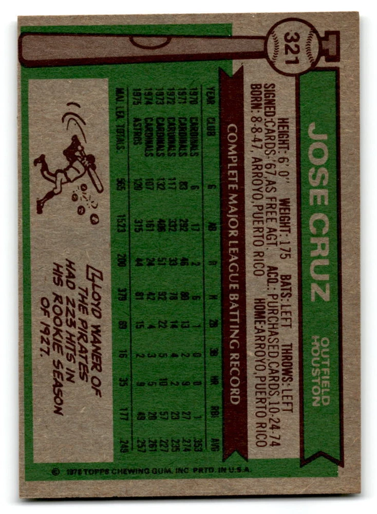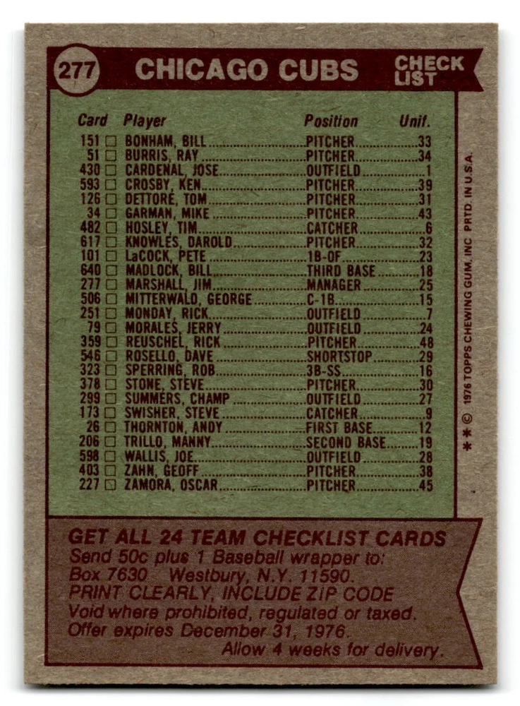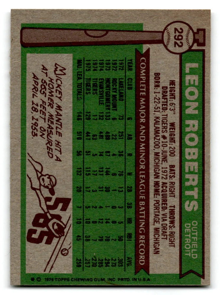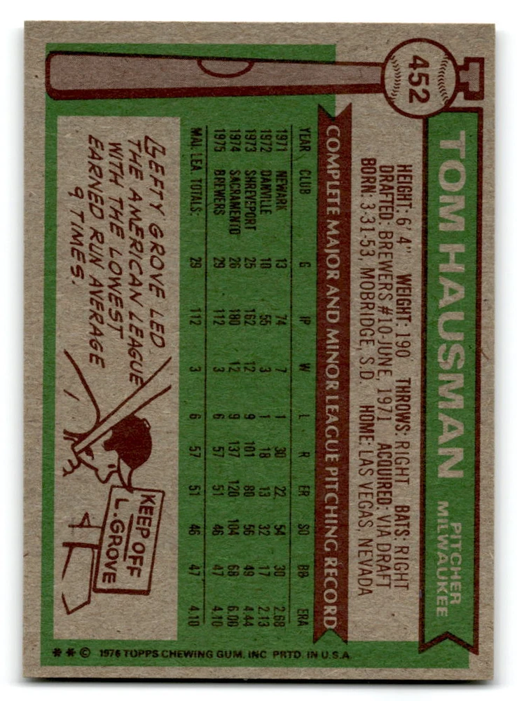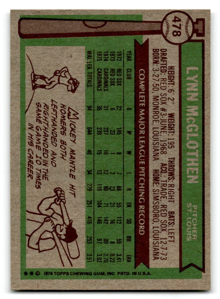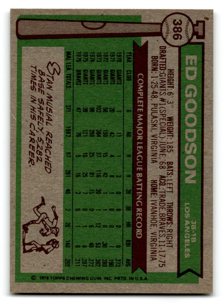 Hello, This listing is for single cards from the 1976 Topps Baseball Set. The cards are in EX/MT to NM unless there is a grade next to the name. I also have noted if the card has wax on the card (front of the card, none of the cards have wax stains on the back). I have generically graded all wax cards as a VG. If there is a card in VG with no notes saying there is wax, then there is damage to the card. The card in the picture is the card you will receive! There are lots of pictures with lines on the cards, that is from my scanner. There are no lines on any of the cards!! Grading: NM = 7 EX/MT = 6 EX = 5 VG/EX = 4 VG = 3 G = 2 Shipping: 1st card costs $1.00 using eBay Standard Envelope and .50cents for each additional card. If you buy 7 cards or more, the shipping cost is $4 for Ground Advantage (just check the boxes for Ground Advantage in the check out and no matter how many cards you are buying the cost will be $4 max! When buying 7 cards, they will be shipped in a padded envelope or box. (Ground Advantage or Priority Mail for larger orders) The last thing I am trying to do is make a profit off of Shipping. When using eBay Standard Envelope, I will put up to 2 cards in 1 top loader to ship. Unfortunately that is the max I can put in a top loader because of the thickness of these cards. I can fit 3 top loaders in one started letter sized envelope. If you have any questions about shipping please don't hesitate to ask.