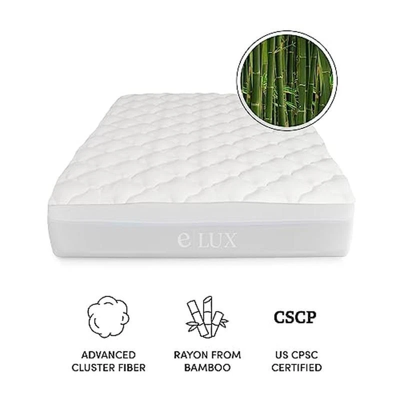 You may also like Ergonomic Office Chair High Back Lumbar Support Adjustable Swivel Rolling 300lbs 88.8 USD 93.47 USD Free shipping 5% off Powerful Hammer Drill 1/2" Keyless Chuck Variable Speed Pistol Grip Equipment US 78.36 USD 82.48 USD Free shipping 5% off Extra Wide Slot Toaster Removable Crumb Tray 6 Browning Control Modern Design US 73.13 USD 76.98 USD Free shipping 5% off Velvet Dining Chairs Set of 2 Ergonomic Metal Legs Comfortable Kitchen Lounge US 121.2 USD 127.58 USD Free shipping 5% off Flocked Pencil Christmas Tree Pre-Lit Holiday Decoration 6ft Warm White Lights 104.48 USD 109.98 USD Free shipping 5% off Theater Style Popcorn Maker 16 Cups Easy Cleanup Quick Serving W/ Scoop Spoon US 135.79 USD 142.94 USD Free shipping 5% off High Speed Automatic Electric Hand Dryer 1800W Infrared Touchless Drying Durable 62.7 USD 66.0 USD Free shipping 5% off 7.5ft Prelit Artificial Christmas Tree 350 Warm White Lights Foldable Stand New 125.38 USD 131.98 USD Free shipping 5% off 6.5ft Prelit Artificial Christmas Tree Hinged Flocked Design 250 Warm Lights New 73.13 USD 76.98 USD Free shipping 5% off Dual Chamber Compost Tumbler 45 Gal Efficient Outdoor Bin Easy Assemble Yard Hot 125.36 USD 131.96 USD Free shipping 5% off Mid Century Dining Chairs Set of 2 Suede Material Ergonomic Design Metal Legs US 110.64 USD 116.46 USD Free shipping 5% off Long Toaster 2-Slice W/ Warming Rack Lift & Look Function Bagel Frozen Settings 63.83 USD 67.19 USD Free shipping 5% off About this item Cotton MAKES OLD MATTRESSES FEEL LIKE NEW - Queen Mattress Pad Topper (60" x 80") made from the highest quality, luxurious, materials to help you to transform an old mattress and enhance a new one. This state-of-the-art, highly refined rayon from bamboo mattress pad is perfect to revitalize your sleep and will fit mattresses up to 18" deep. Rayon from bamboo fabric is renowned for allowing excellent airflow creating a cool sleeping environment. COMFORTABLE, LUXURIOUS AND BREATHABLE - This rayon from bamboo mattress pad is the perfect choice if you're considering a comfortable, soft, breathable and high quality mattress pad or cover that will last the test of time. These mattress pads have a cooling effect - with an extra plush rayon from bamboo cover filled with a quality down alternative cluster fiber. The top cover is made from a blend of 60% Polyester and 40% Rayon. Imported. SOFT, SMOOTH AND COZY FOR A PERFECT NIGHT'S SLEEP - Each pad is filled with the newest technology fiber fill that has the feel of authentic goose and duck down without the feathers or poking. We don't skimp on quality and you can feel it on your skin - so smooth and cozy. Get the rest you deserve after a hard day's work and transform your bed. Suitable for any type of mattress including innerspring, latex or memory foam. VETERAN OWNED - We are proud to call ourselves a Veteran-Owned and Operated Business with over 90% of employees at our Southern Indiana headquarters. Support hardworking American men and women and completely change the way you sleep with this newest technology rayon from bamboo mattress pad. 100% SATISFACTION GUARANTEE AND PRODUCT CERTIFIED - Unlike others, all our products are certified OEKO-TEX and CPSC Test 6 FRC Part 1632. 5 flammability tested. We have sold over 1 million mattress pads and customer satisfaction is our top priority with each transaction. This pillow top rayon from bamboo mattress pad is like a cloud with unbeatable comfort and gentle support, and we stand behind it with a 30 day money back guarantee if you are not 100% satisfied. Brand:ExceptionalSheets Color:White Size:Queen Fabric Type:Cotton Special Feature:Cooling, Pillow Top, Breathable You may also like Lightweight Waterproof Mattress Protector Breathable Bed Cover Comfort Indoor US 62.68 USD 65.98 USD Free shipping 5% off