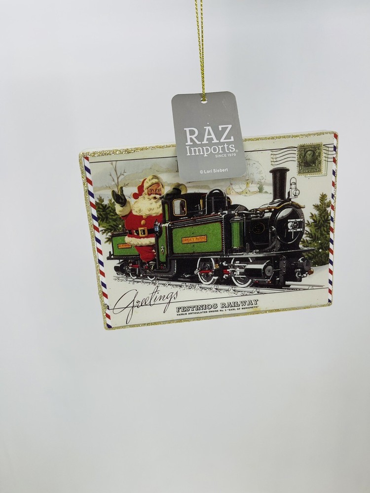 Add some holiday cheer to your tree with this beautifully designed bauble from RAZ Imports. Featuring Santa and a train, this multicolored glass ornament will make your Christmas even more special. The 2022 Destination Christmas collection brings an artist-designed bauble to your home, making it the perfect addition to your ornament set. This medium-sized bauble is shaped like a rectangle and comes with a hanging feature, making it easy to display on your tree. Celebrate the season with this one-of-a-kind bauble that will surely catch the eye of your loved ones. The RAZ Imports brand is well-known for its high-quality ornaments, and this bauble is no exception. Manufactured in China with great attention to detail, this Santa and train-themed bauble is sure to be cherished for years to come. Don't miss out on this beautiful addition to your Christmas collection.