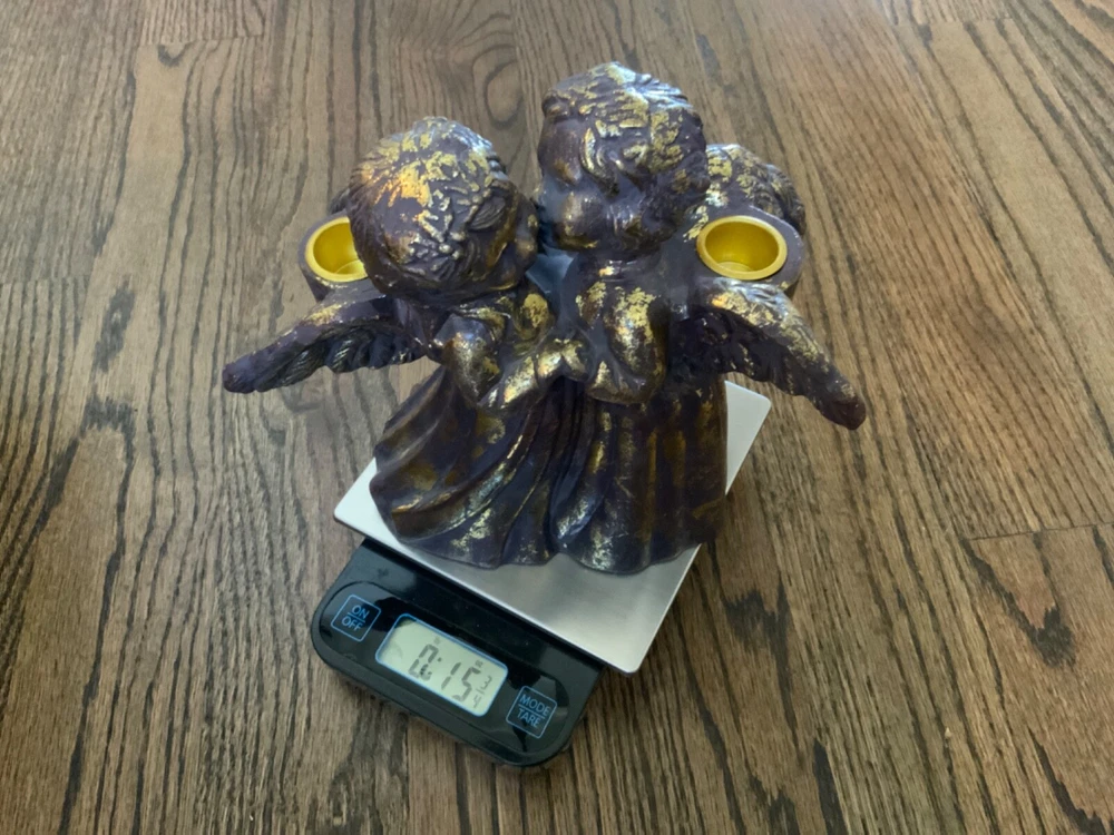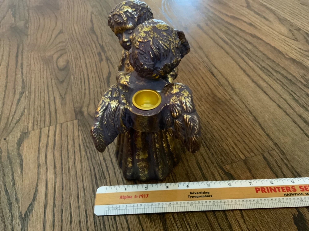 Absolutely love this gorgeous angel candle holder! The intricate 3D detailing and beautiful gold gilt finish add an elegant rustic charm to my home decor. Perfect size at 8" and looks even better in person. The free shipping was a nice bonus—great value! Highly recommend.