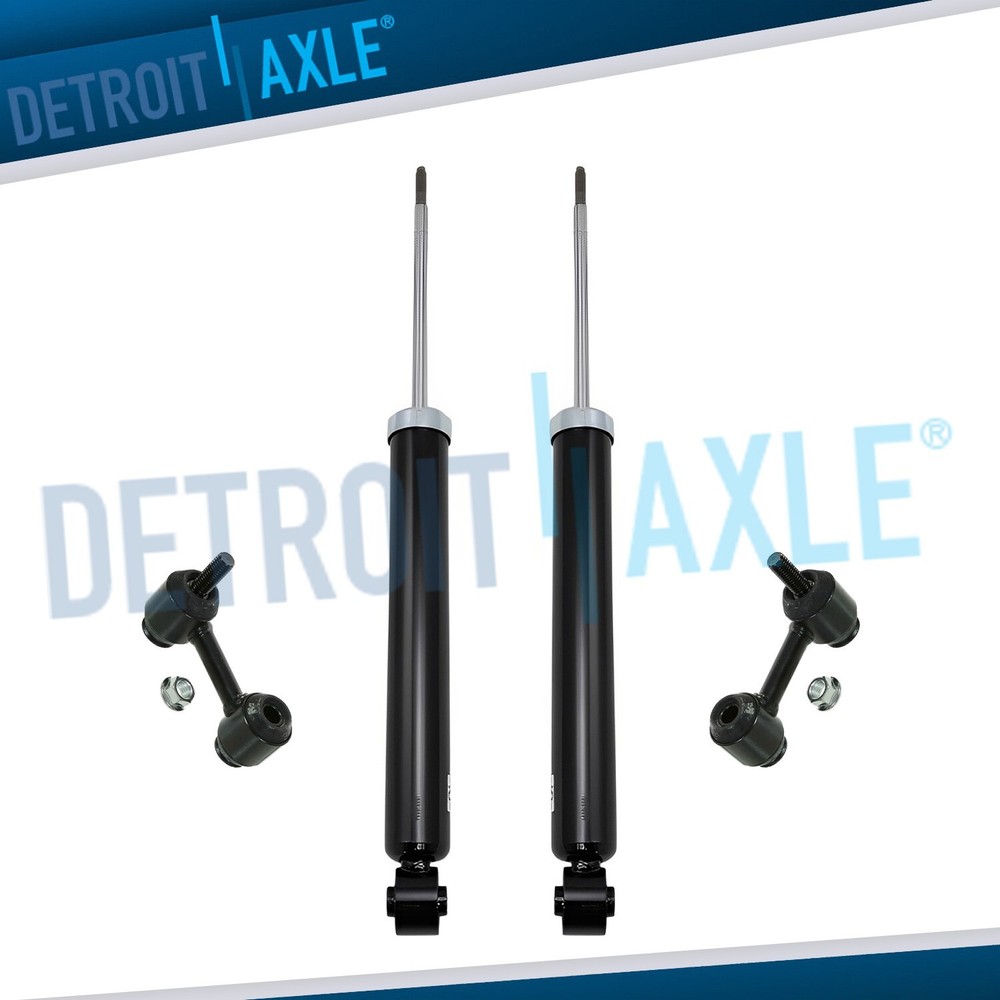 Warranty Details Click here for Warranty Details Questions? Call us! Monday-Friday 8am - 6pm ET Saturday 8am - 4pm ET Rear Shock Absorbers Assembly + Sway Bar End Links Kit Kit Includes: 2x Rear Shock Absorbers Assembly - Driver & Passenger Side - 4349136 2x Rear Sway Bar End Links - Driver & Passenger Side - K750521 FITS MAKE MODEL YEAR RANGE SPECIFIC DETAILS BUICK LACROSSE 2010 - 2013 without RPO Code F45 (Real Time Damping Chassis); with 4 Link Suspension BUICK LACROSSE 2014 - 2016 FWD; without RPO Code F45 (Real Time Damping Chassis); with 4 Link Suspension BUICK REGAL 2011 - 2016 without RPO Code F45 (Real Time Damping Chassis); with 4 Link Suspension BUICK REGAL 2017 FWD; without RPO Code F45 (Real Time Damping Chassis); with 4 Link Suspension CHEVROLET IMPALA 2014 - 2019 All Models CHEVROLET MALIBU 2013 - 2015 All Models CHEVROLET MALIBU LIMITED 2016 All Models Not what you were looking for? Search our Store Page to find the right part! Brand Information Detroit Axle, offers parts and accessories for the perfect combination of quality and value. Detroit Axle offers cost-conscious customers a full range of parts to a broad range of applications Provides extensive coverage of bearings for a broad range of automotive and heavy-duty 4x4 wheel applications. Manufactured in ISO 9000 / ISO 9001 / ISO 9002 certified facilities gives the fit, performance Reliability and durability of OE. Detroit Axle offers an extensive lineup of Wheel Bearings, CV Axles, Power & Manual Steering Rack & Pinions, Gear Boxes, Ready Struts, Drive Shafts, Prop Shafts and much more. Manufacturer Information Detroit Axle offers an extensive coverage of bearings for a large range of automotive and heavy-duty wheel end applications. Our Products are manufactured in ISO 9000 / 9001 / 9002 certified facilities. Detroit Axle products deliver the look, feel, fit and performance of OE. Manufactured with Internal bearing seals that are specifically designed to combat all types of road conditions to keep debris out and keep the bearing turning. With an OE design, simple installation and long life as a guarantee. Payment Visa, and MasterCard are the accepted forms of payment. Please use the eBay checkout system when paying for your order. Immediate payment is required for all orders. Shipping All orders placed before 2pm (Eastern Standard) will be shipped the same business day. Orders made after 2pm (Eastern Standard) will be shipped the following business day. All orders in the continental 48 States will be shipped FREE of charge via FedEx or USPS at our discretion. Orders outside the continental 48 States (Alaska, Hawaii, Puerto Rico, US territories, or International) will be required to pay a surcharge for shipping. International orders will be shipped via USPS Priority Mail International. Return Policy Customer must contact Detroit Axle within 30 days of receiving shipment for approval of any return or exchange. Returns or exchanges will be subject to a 15% restocking fee of the original item purchased plus cost of return shipping and replacement shipping. Exchanges due to shipping errors by Detroit Axle will not be subject to a restocking fee or shipping charges. Track Page Views With Auctiva's FREE Counter