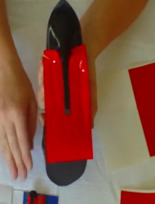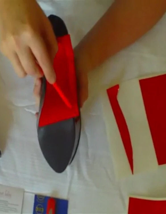 Red bottoms designer sticker alternative for stiletto heels make your soles have that sough after sexy red!!! this kit includes two strips of red bottoms sole material for a pair of stiletto heels. Application: 1. Clean the bottom soles of the shoes 2. Peel designer sticker off of backing paper. 3. Apply to the sole of your shoe. Rub well with thumb working from the middle outwards. Trim excess off 4. Repeat application to other shoe. 5. Enjoy your revamped sexy heels! *shoes not included