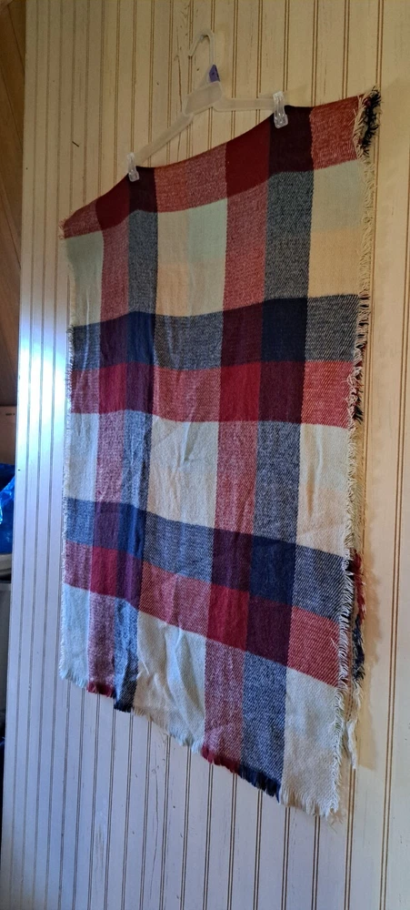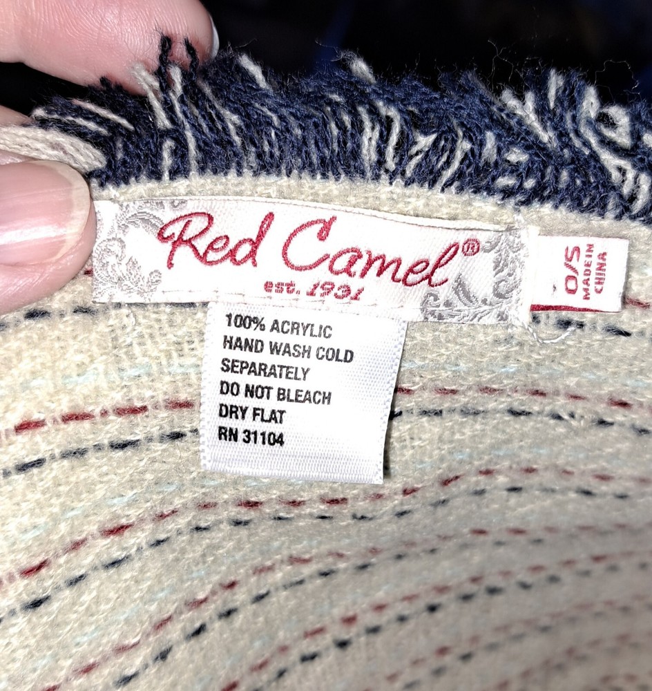 Wrap yourself in the warmth and elegance of the Red Camel Wrap Scarf, a versatile accessory that's as functional as it is stylish. The beige plaid pattern boasts a fringed trim, adding a touch of bohemian flair to this cozy piece. Measuring approximately 72 inches by 26 inches, it's a generous wrap that can be styled in various ways to complement any outfit. In great condition.