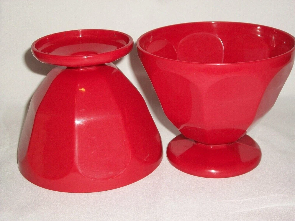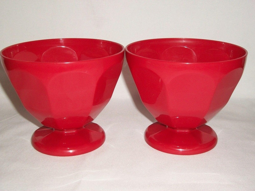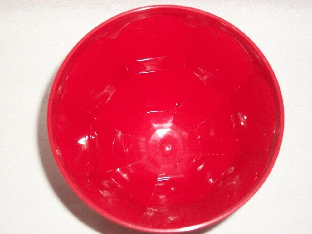 Up for bid is a great set of four plastic ice cream bowls in a fabulous cheerful red color. Measures approximately 4" tall and 4.75" in diameter. Will hold up to 17 ounces. Great for those outdoor pool parties or picnics. BPA Free. Top shelf dishwasher safe. Not microwave safe.