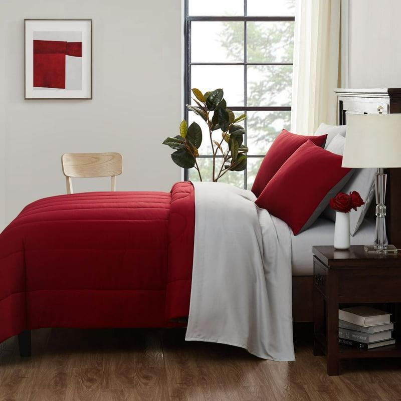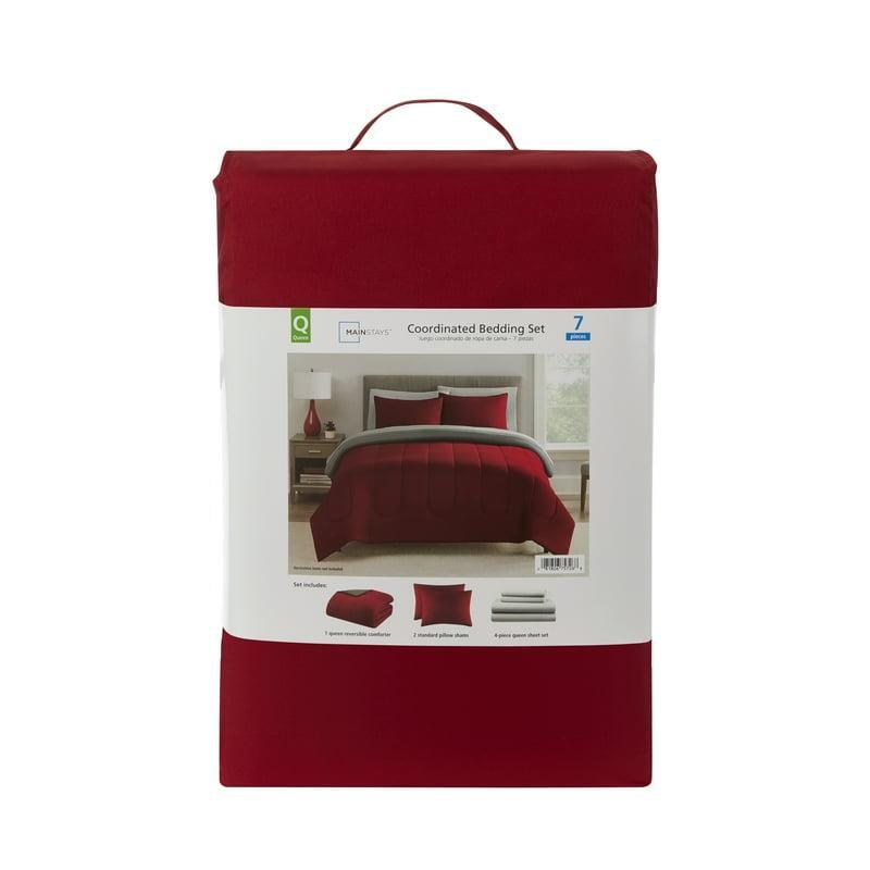 You may also like Adjustable Height Bar Stool W/ Wood Accented Back 360° Swivel Oil Rubbed Bronze 66.34 USD 69.83 USD Free shipping 5% off 21 Gallon Black Stackable Plastic Tote Heavy Duty Storage Bin Industrial Use New 17.08 USD 17.98 USD Free shipping 5% off Concentrated Degreaser Cleaner 5 Gallon Ultimate Eco-Friendly Multi-Use Solution 25.61 USD 26.96 USD Free shipping 5% off Heavy Duty Utility Rolling Cart Material Handling Moving Furniture Black/Gray 61.29 USD 64.52 USD Free shipping 5% off 144-Piece Mechanics Tool Set Metric SAE Drive Chrome Finish Magnetic Precision 45.56 USD 47.96 USD Free shipping 5% off Square Deck Box Planter 4.5 Gallon Resin UV-Resistant Herb Garden Patio Brown US 18.05 USD 19.0 USD Free shipping 5% off Pet Kennel Small/Medium 26" Dog Crate Plastic Travel Pet Carrier for Pet 15-25lb 45.56 USD 47.96 USD Free shipping 5% off Lawn & Garden Tire Soft Turf 13X6.50-6 4 PR Turf Tread Tubeless Load Range 4 Ply 34.86 USD Free shipping Outdoor Chair Cushion Black Stripe 44"L x 21"W Water-Repellent Patio Dining Pad 39.86 USD 41.96 USD Free shipping 5% off 1.5 Gallon Starter Plastic Tank W/ Filter & LED Light Ideal Bettas & Shrimp! New 25.86 USD 27.22 USD Free shipping 5% off Blue Ceramic Garden Stool 17" Round All-Weather Glaze Indoor/Outdoor Use Durable 69.05 USD 72.68 USD Free shipping 5% off Rechargeable Cordless Floor Carpet Sweeper Stick Vacuum Cleaner Lightweight NEW! 59.4 USD 62.53 USD Free shipping 5% off The Mainstays Red 7-Piece Bed in a Bag comes with everything you need to complete your bedroom space. The solid print Red comforter brings a bold complement to your bedroom's aesthetic, and the light grey sheets add the perfect pop of contrast. The soft-to-the-touch fabric adds to your overall comfort, helping you sleep soundly through the night. Queen size includes: Comforter (76" x 90"), Flat Sheet (81" x 96"), Fitted Sheet (54" x 75" x 12"), 2 Shams (20" x 26"), 2 Pillowcases (20" x 30"). Available in Twin, Full, Queen, and King sizes. This 100% polyester bedding set is machine washable for easy care. Available in Twin/Twin-XL, Full, Queen and King sizes Queen size includes: Comforter (76" x 90"), Flat Sheet (81" x 96"), Fitted Sheet (54" x 75" x 12"), 2 Shams (20" x 26"), 2 Pillowcases (20" x 30") Reversible Comforter Machine Washable 100% Polyester You may also like Sparkling Water Maker Reusable Carbonating Bottle 60L Matte Finish Kitchen Black 85.38 USD 89.87 USD Free shipping 5% off 10 Gallon Seat Top Water Jug Cup Dispenser Removable Cup Dispenser Easy Clean 74.41 USD 78.33 USD Free shipping 5% off Z-shaped Wood Student Desk Sturdy Metal Frame Dorm Rooms Small Space Brown/White 55.99 USD 58.94 USD Free shipping 5% off Steel Mesh Garden Cart 400 lb 10" Tire Maneuverability Gardening Farming Outdoor 120.49 USD 126.83 USD Free shipping 5% off Square 12 PCS Fine Ceramic Dinnerware Set Microwave Dishwasher Safe White Hot 66.05 USD 69.53 USD Free shipping 5% off Professional Makeup Case 3 In 1 Portable Trolley Has A Handle Easy Lifting Pink 121.83 USD 128.24 USD Free shipping 5% off 30 PCS Dinnerware Set Made Durable Porcelain Soft Square Silhouette White Hot 60.68 USD 63.87 USD Free shipping 5% off Natural Fiber Milica Braided Jute Area Rug Red 5 X 8 Ft Backing Contains Latex 191.38 USD 201.45 USD Free shipping 5% off Parsons Office Living Room Small Study Desk Workspace W/ Center Storage Drawer 88.0 USD 92.63 USD Free shipping 5% off Mini Microwave Cart Kitchen Storage Apartments Dorm Rooms Home Office White New 68.88 USD 72.5 USD Free shipping 5% off Steamer Pot Aluminum 32 Qt W/Basket Glass Lid Fast Uniform Cooking Seafood Home 60.88 USD 64.08 USD Free shipping 5% off Two Handle Chrome Kitchen Faucet W/ Side Sprayer Fast One-Person Installation 146.39 USD 154.1 USD Free shipping 5% off